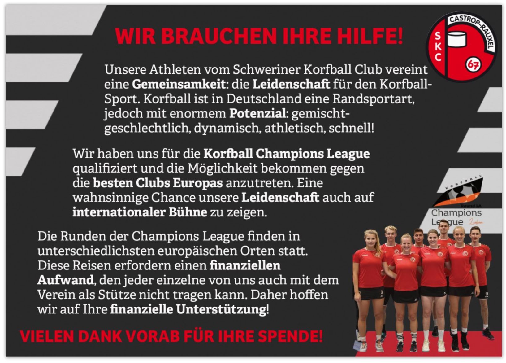 Spendenaufruf für die Champions League-Teilnahme