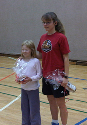 traten zunächst in einer Gruppenphase und danach im K.O.-System jeweils 2 Minuten gegeneinander an. Gewonnen hat das Team, das in der Addition der beiden Teammitglieder mehr Körbe geworfen hat. Dieses Jahr traten 30 Teams an, 16 qualifizierten sich für das Achtelfinale. Darunter auch die Titelverteidiger Lea Heinzel und Pascal Stamm, denen aber ein erneuter Sieg nicht gelingen sollte. Den Titel und damit eine Verewigung auf dem Sockel des Wanderpokals holten sich die F-Jugendliche Luisa Finger und Anissa Wild aus der B-Jugend. Sie hatten im Finale Lea Benischowski und Thomas Lipperheide besiegt. Dritter wurden Jonah Rauhut und Herbert Smollong. Nach der Siegerehrung wurde im SKC-Clubraum gefeiert. Wieder einmal möglich gemacht wurde das Korbshooting von den vielen Helfern, die sich um Aufbau, Organisation und Bewirtung kümmerten. | ![]() Foto: Die Sieger / Demuth |