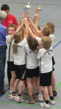 Dank einer großartigen Teamleistung gegen körperlich überlegene Gastgeber gewinnt die E-Jugend des Schweriner KC ihren dritten Westpokal in Folge und darf den Wanderpokal in die Vereinsvitrine überführen.