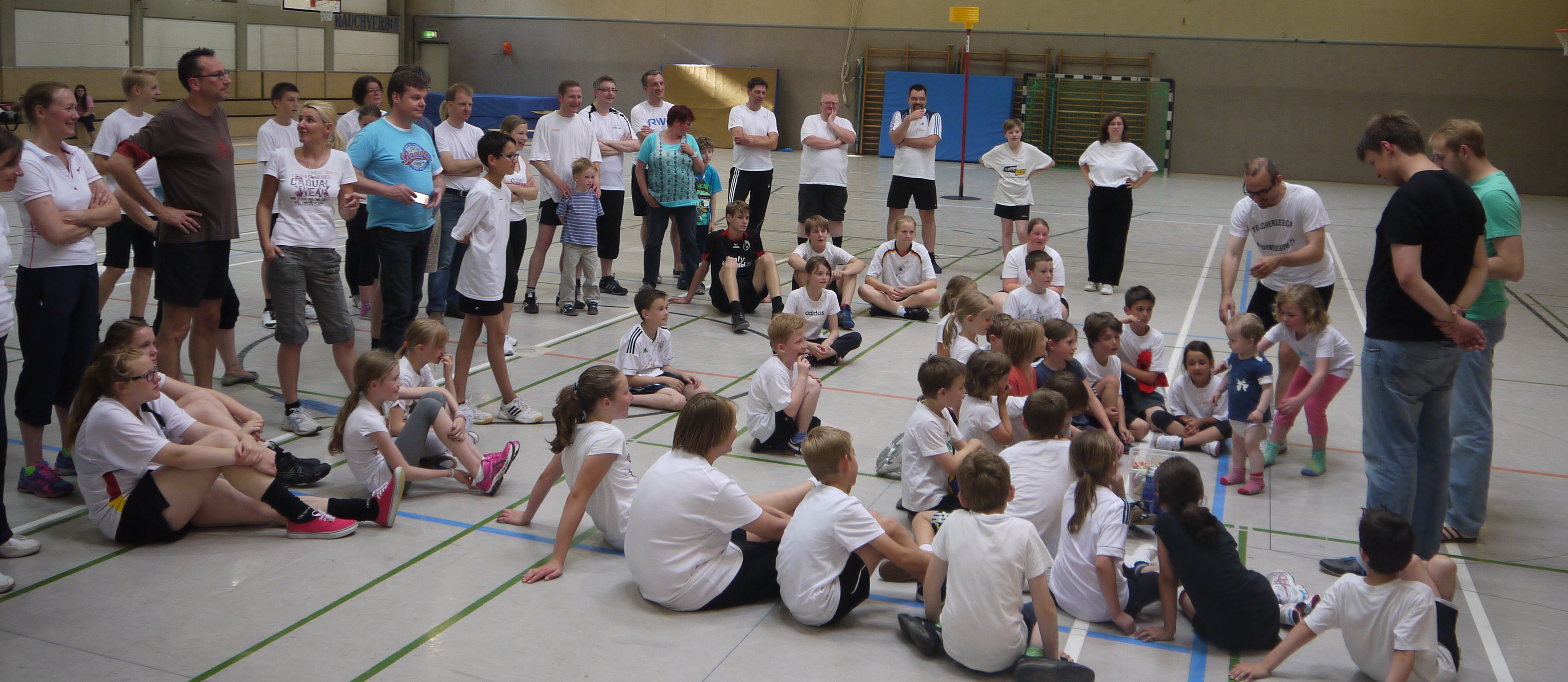 Insgesamt traten acht bunt gemischte Mannschaften gegeneinander an. Bunt gemischt heißt, dass sich die Mannschaften aus Seniorenspielern, Juniorenspielern aller Altersklassen, Geschwisterkindern und Eltern zusammensetzten. Jeder hatte an diesem Tag die Möglichkeit, einmal ein wenig in den Korfball hinein zu schnuppern. Und so entwickelten sich spannende, leicht chaotische und mit viel Spaß und Ehrgeiz geführte Spiele, in denen vor allem die Korfballlaien die schönen aber auch – gerade beim Korbwurf – frustrierenden Facetten des Korfballs erfahren konnten.