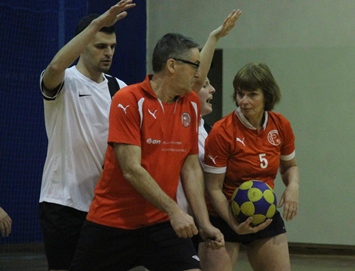 Und ich möchte nicht wissen, was unsere polnischen Gegner dachten, als sich unser Team warmmachte. Natürlich hatten wir mit Edwin van der Weijde und Jose Geerts zwei Spieler aus der niederländischen Übergangsklasse von  KV Tempo Alphen in unsren Reihen (Jose spielte zwei Jahre deutsche Korfball-Nationalmannschaft, Spielberechtigung wegen deutscher Mutter),vergessen wir nicht unsere Spieler des Regionalliga-Meisters 2014, aber unser 2. Feld  warf doch vielleicht Fragen auf. Die Senioren aus Alphen spielen als 11. Seniorenteam ( in Worten: elf) in der tiefsten NL-Liga. Dort aber immer noch mit 8 Mannschaften auf dem Feld und in der Halle. Verstärkt wurde dieses Feld mit SKClern bei denen „Erfahrung“ höher angsiedelt war als „Spielpraxis“. Michael Reinold sagte mir hinterher im Bus, dass er 1988 bei den World Games in Karlsruhe zum letzten Mal aktiv Korfball spielte, weil berufliche Wege aus Castrop-Rauxel wegführten. Lene Bentrup, heute in der Nähe von Dresden zuhause, war mit 65 Jahren die dienstälteste Spielerin.