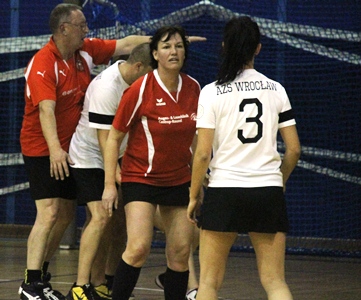 AZS Wroclaw ist ein Korfballverein, der seine Ursprünge im Studentenkorfball hat. AZS steht für Akademischer Studenten Sport. Sein Coach Tomasz Herman, wir kannten uns vom Shield in Castrop, trug ein Trikot mit der Aufschrift „Korfaholic“. Muss man auch sein, wenn man Korfball voranbringen will. Wroclaw spielte ohne seine beiden besten Spieler und war ein Team, dass sich aus der ersten und zweiten Mannschaft zusammensetzte. Natürlich eher junge Spieler. Denn an unseren Altersdurschnitt kommt sowieso keiner ran. Aktuell ist AZS Wroclaw nach der Hälfte der Spielzeit Tabellenzweiter hinter Megasports Warschau. In der  ersten polnische Korfballliga spielen nur 5 Teams.