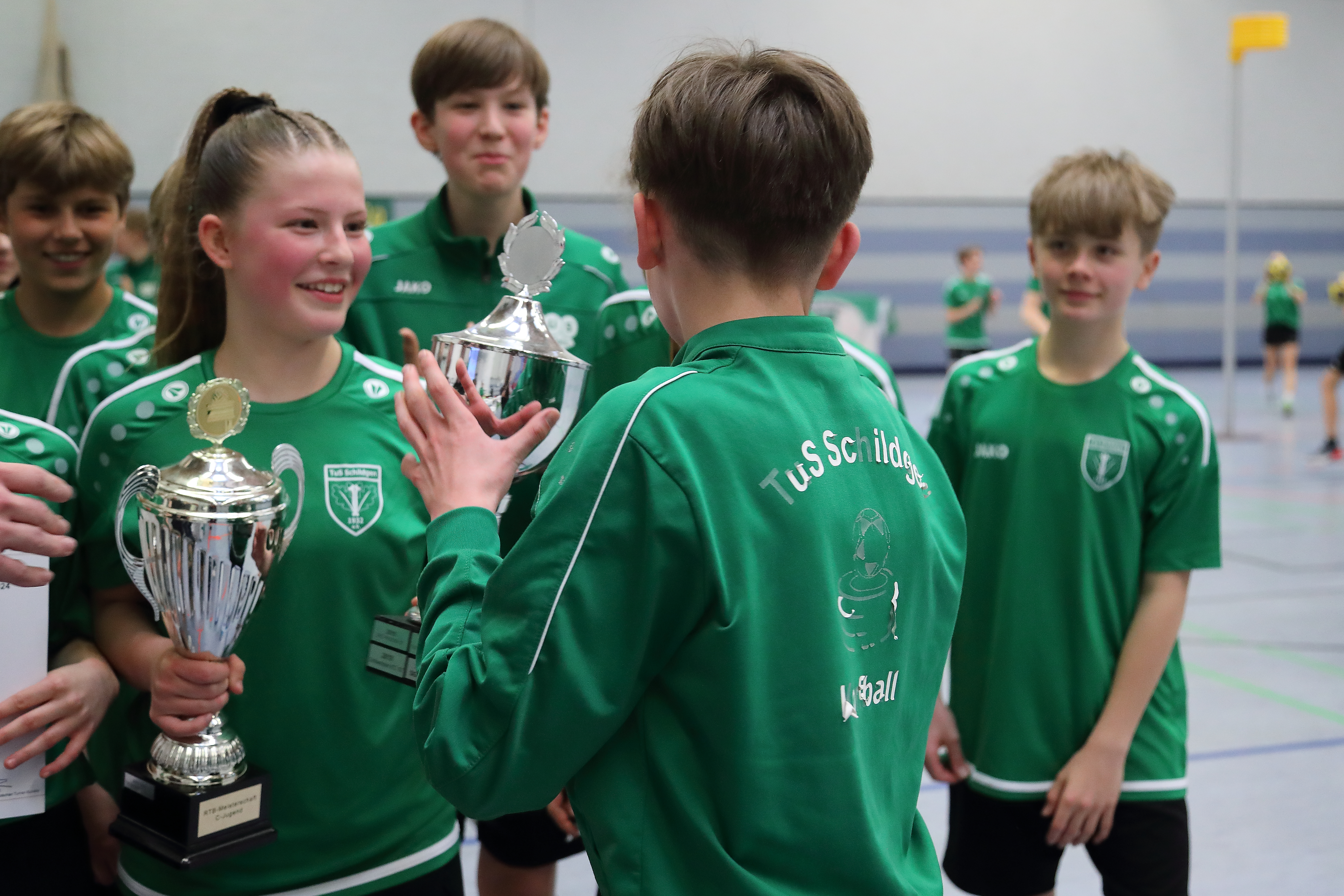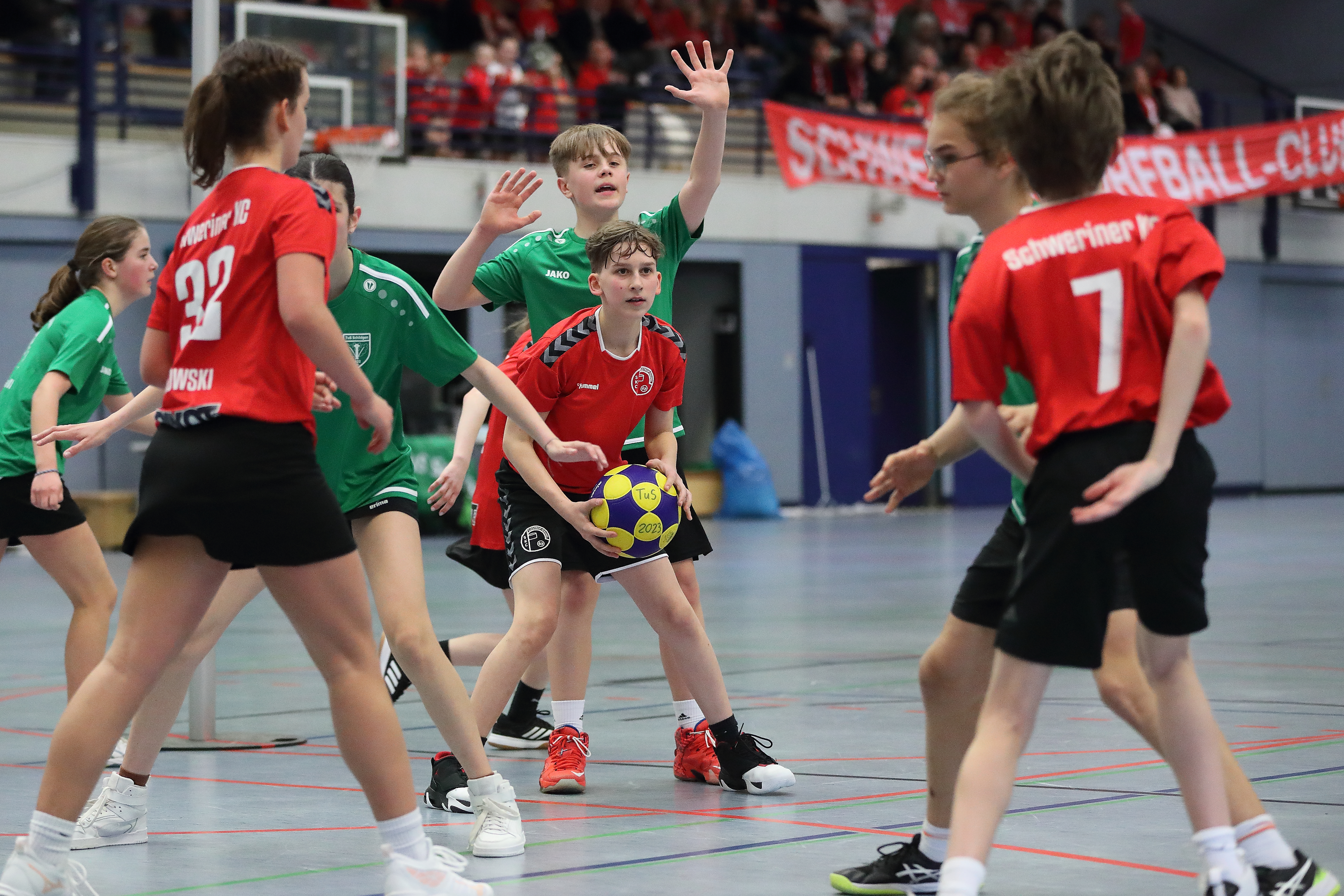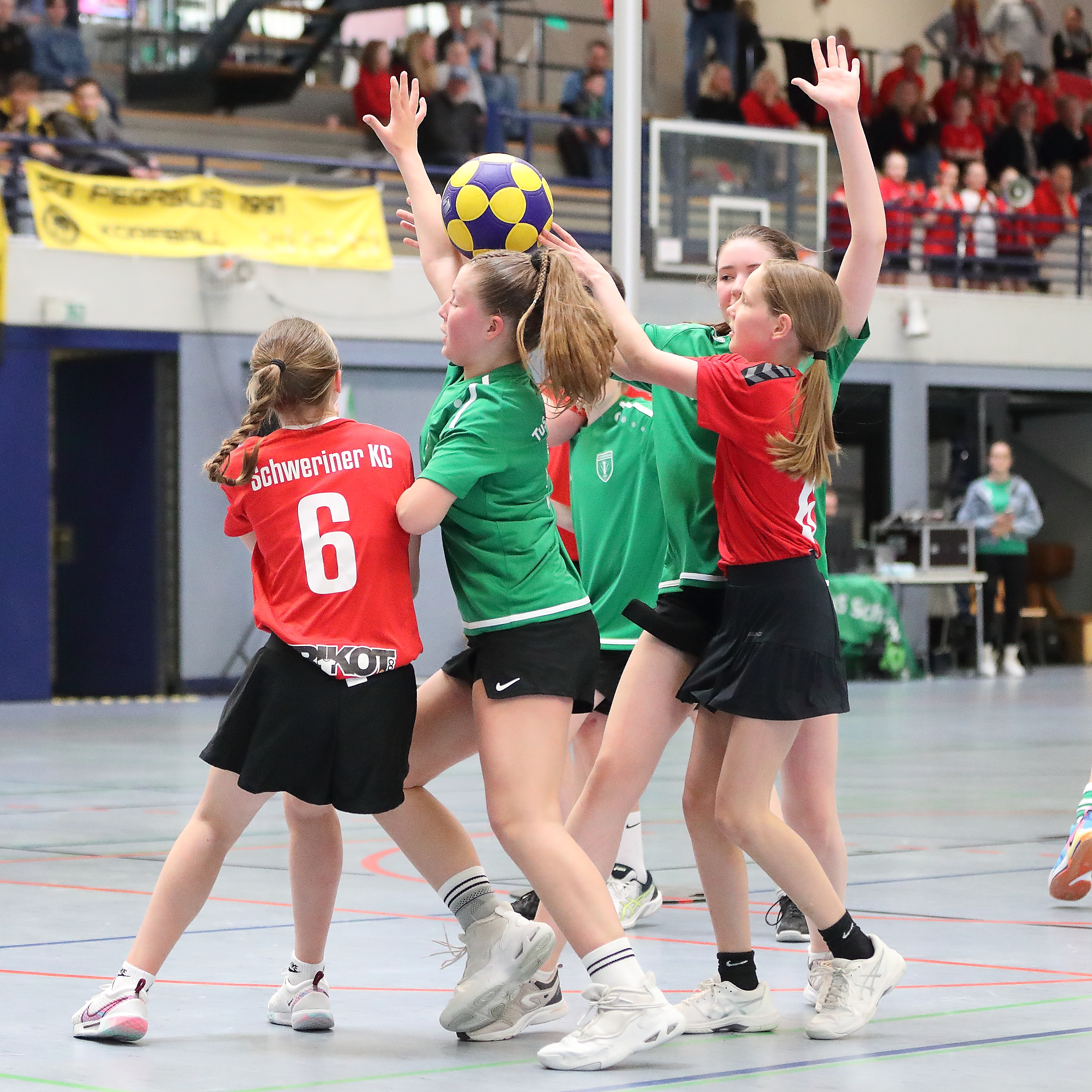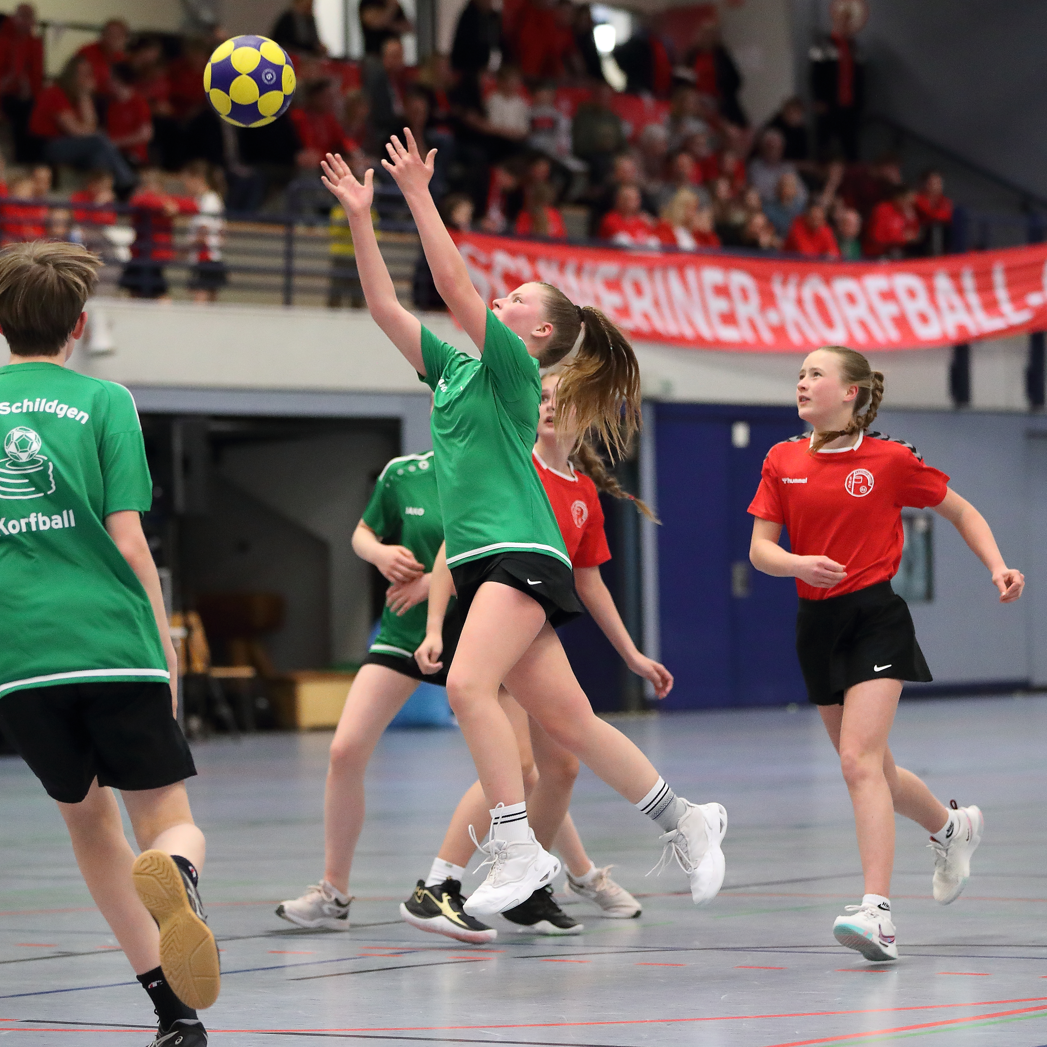 Am 21.04.2024 fand der Deutsche Jugend Cup 2024 statt. Vom Schweriner KC waren die A-, B-, C-, D- und F-Jugend vertreten und kämpften als WTB-Meister um die deutsche Meisterschaft. In dieser Galerie sind die Bilder des C-Jugend Finales zu finden. Gegner war die C-Jugend des TuS Schildgen. Der Schweriner KC unterlag leider am Ende mit 15:7. (Fotos Gertrude de Vries, korfballfoto.de)