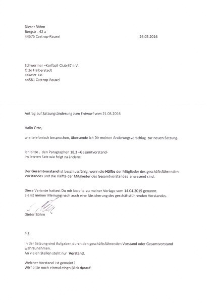In diesem Jahr steht erneut die Satzungsänderung auf der Tagesordnung, daher senden wir euch mit dieser Einladung die neue Satzung zu. Die Satzung wurde in vielen Punkten überarbeitet und an die heutige Zeit angepasst. Anträge auf Änderungen müssen bis zum 31.05. schriftlich beim Vorstand eingegangen sein. Außerdem muss in diesem Jahr der Vorstand neu gewählt werden.