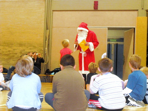 Bereits am letzten Mittwoch bekamen die Kinder der Kindergruppe und der F-Jugend Besuch vom Nikolaus. Zu jedem Kind hatte der Nikolaus Informationen über Trainingseifer und Fortschritte in seinem goldenen Buch gesammelt und zur Belohnung für jedes Kind eine vollgepackte Tüte mit Obst und Süßigkeiten dabei. Die Kinder lauschten den Ausführungen des Nikolaus fast ehrfürchtig, einige hatten sogar ein Lied oder ein Gedicht vorbereitet. Anschließend spielten alle Kinder zusammen noch ein paar Wett- und Fangspiele.