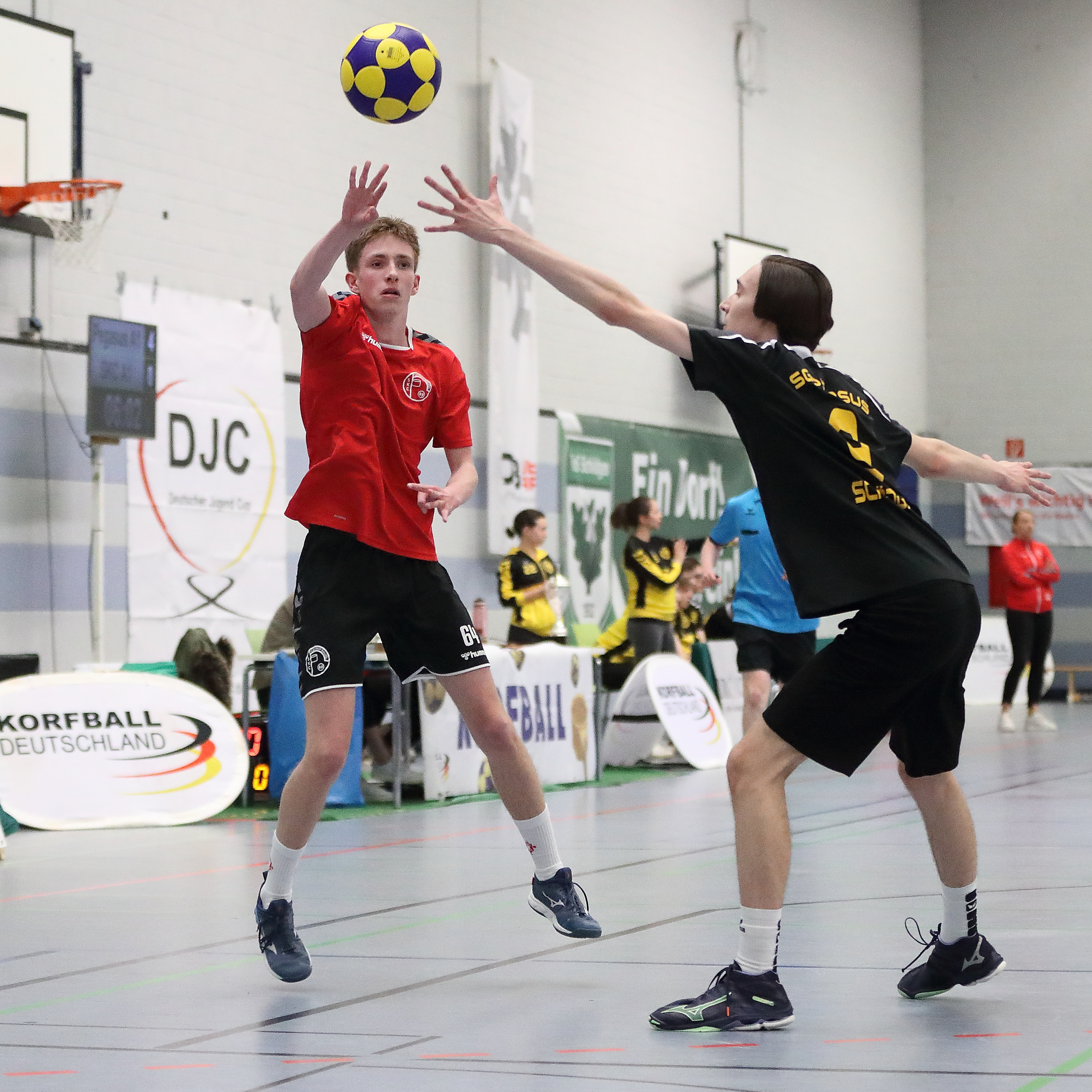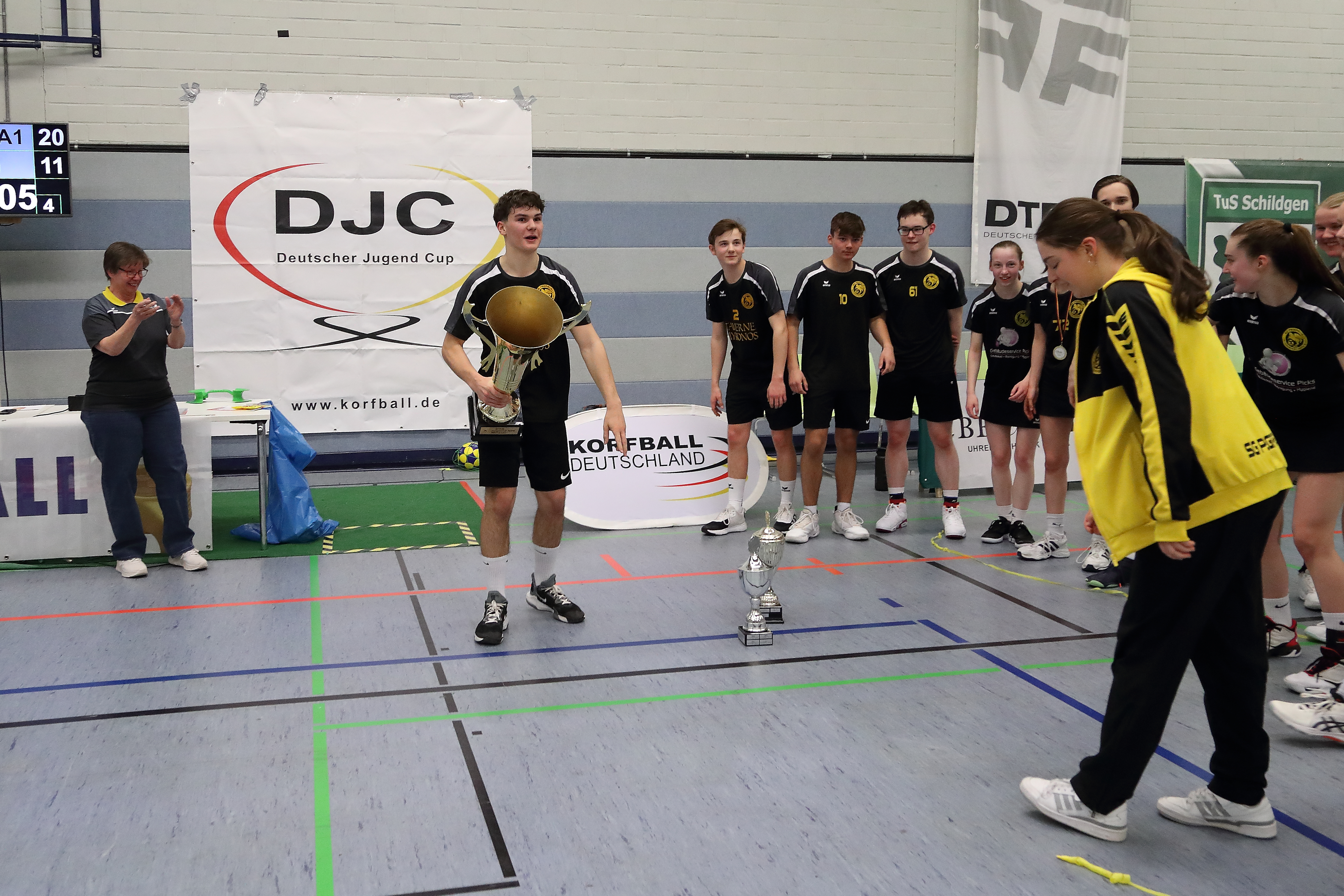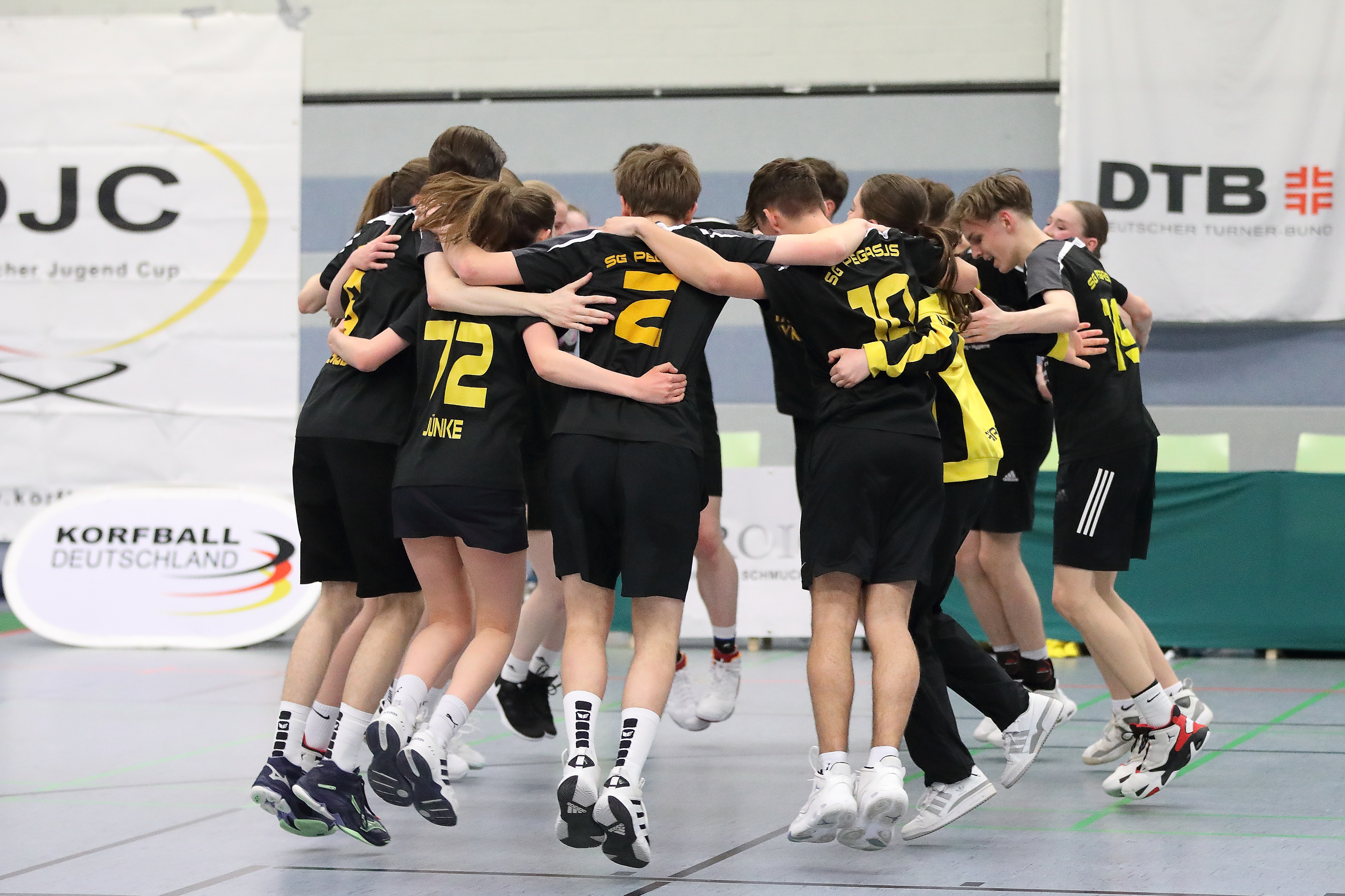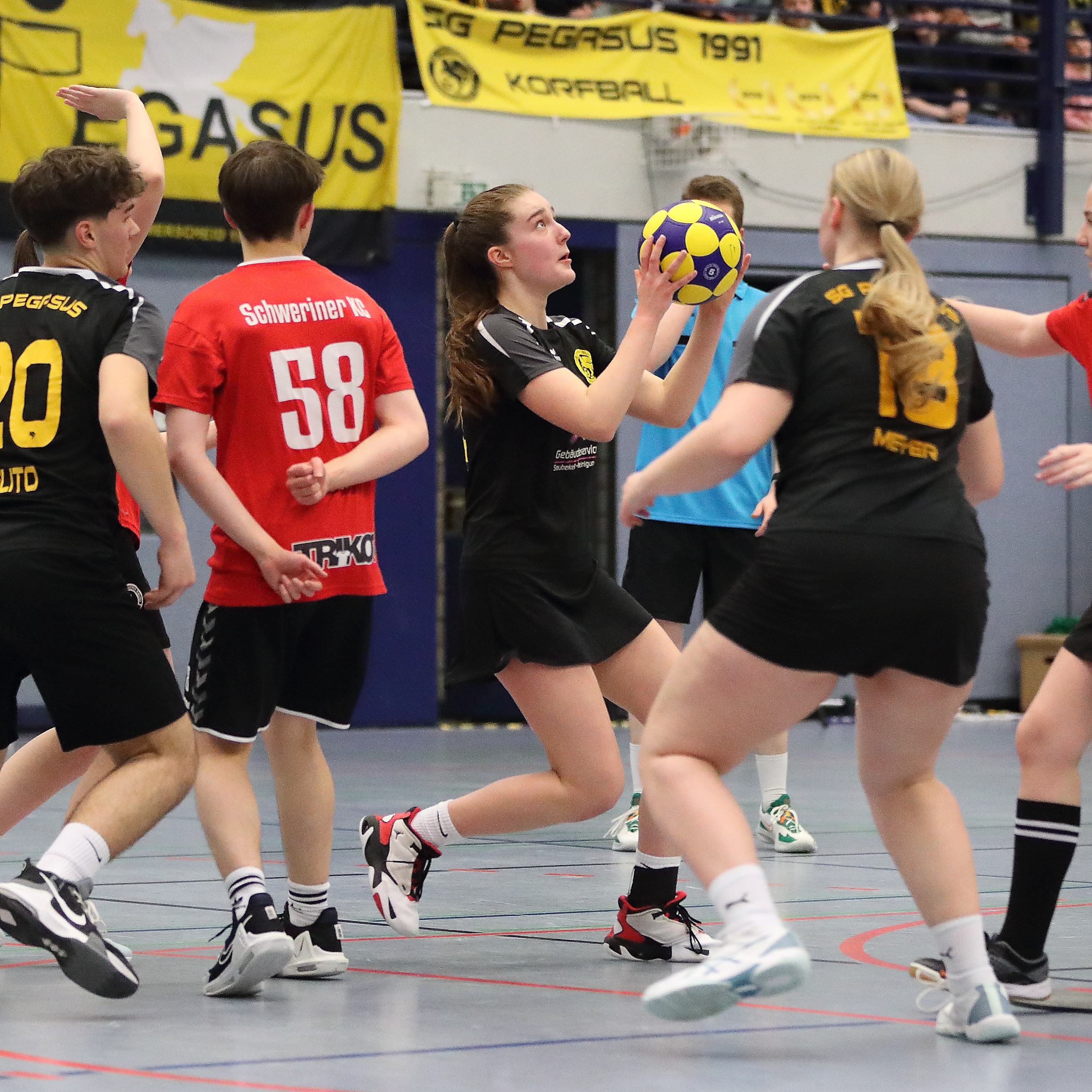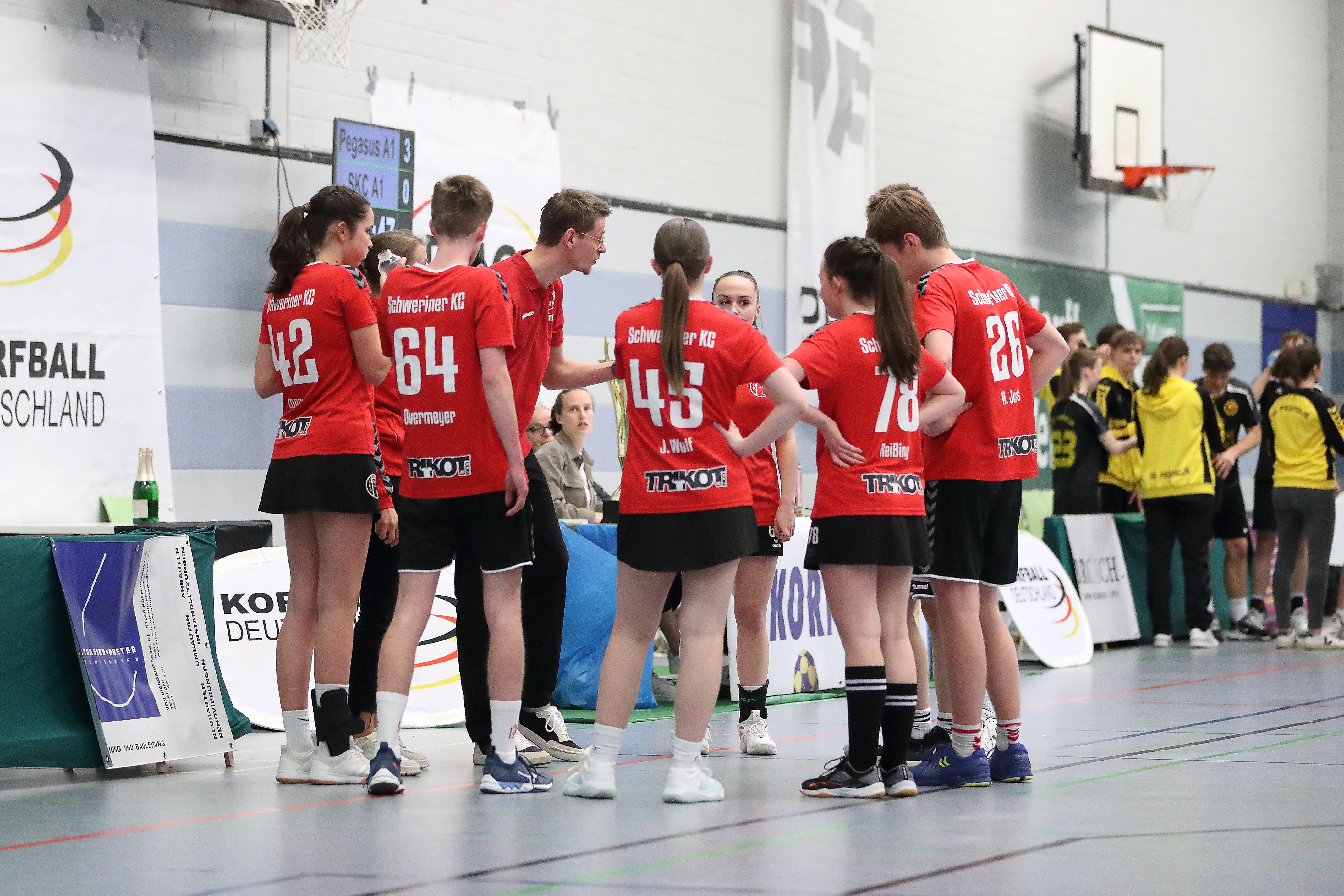 Am 21.04.2024 fand der Deutsche Jugend Cup 2024 statt. Vom Schweriner KC waren die A-, B-, C-, D- und F-Jugend vertreten und kämpften als WTB-Meister um die deutsche Meisterschaft. In dieser Galerie sind die Bilder des A-Jugend Finales zu finden. Gegner war die A-Jugend des SG Pegasus. Der Schweriner KC unterlag leider am Ende mit 20:11. (Fotos Gertrude de Vries, korfballfoto.de)