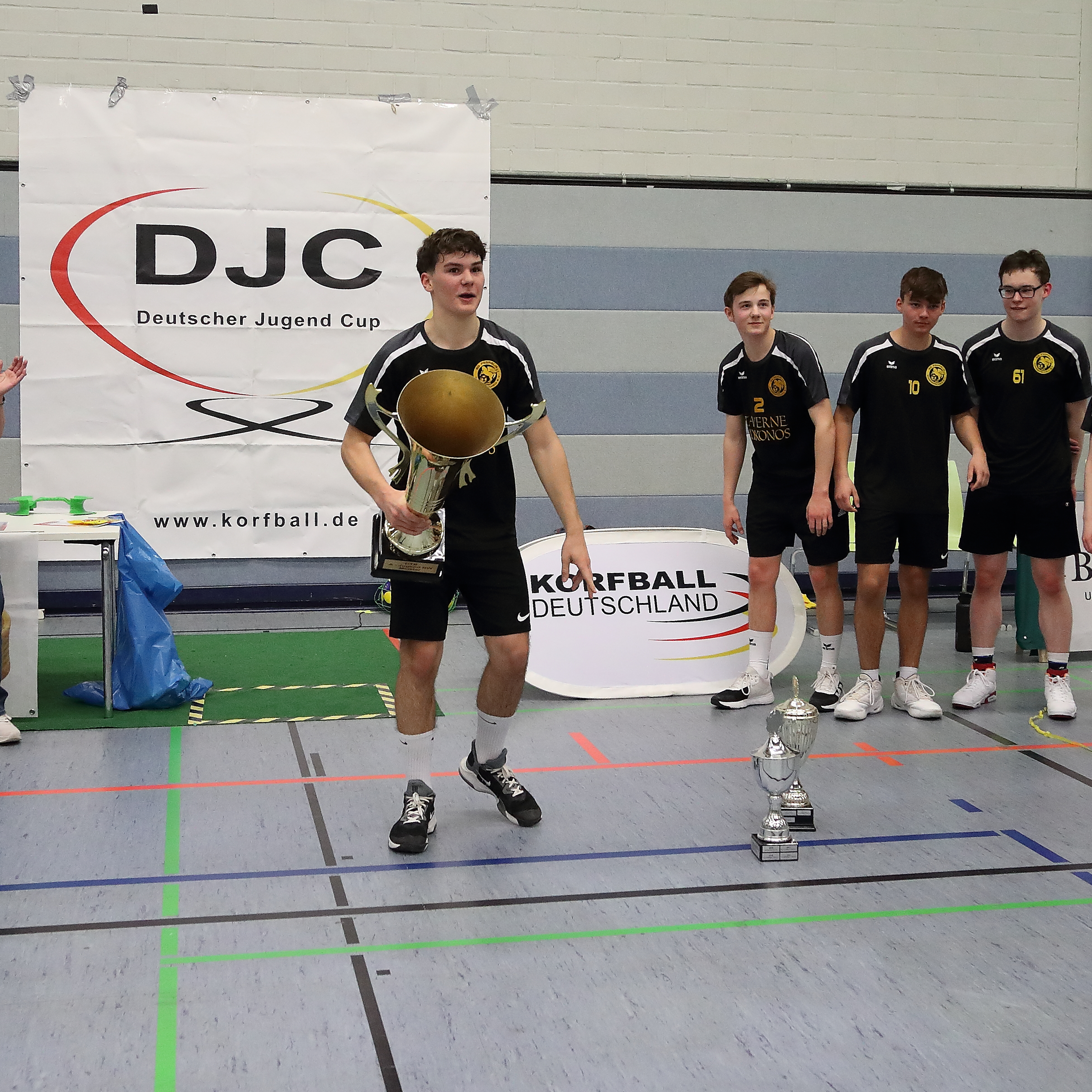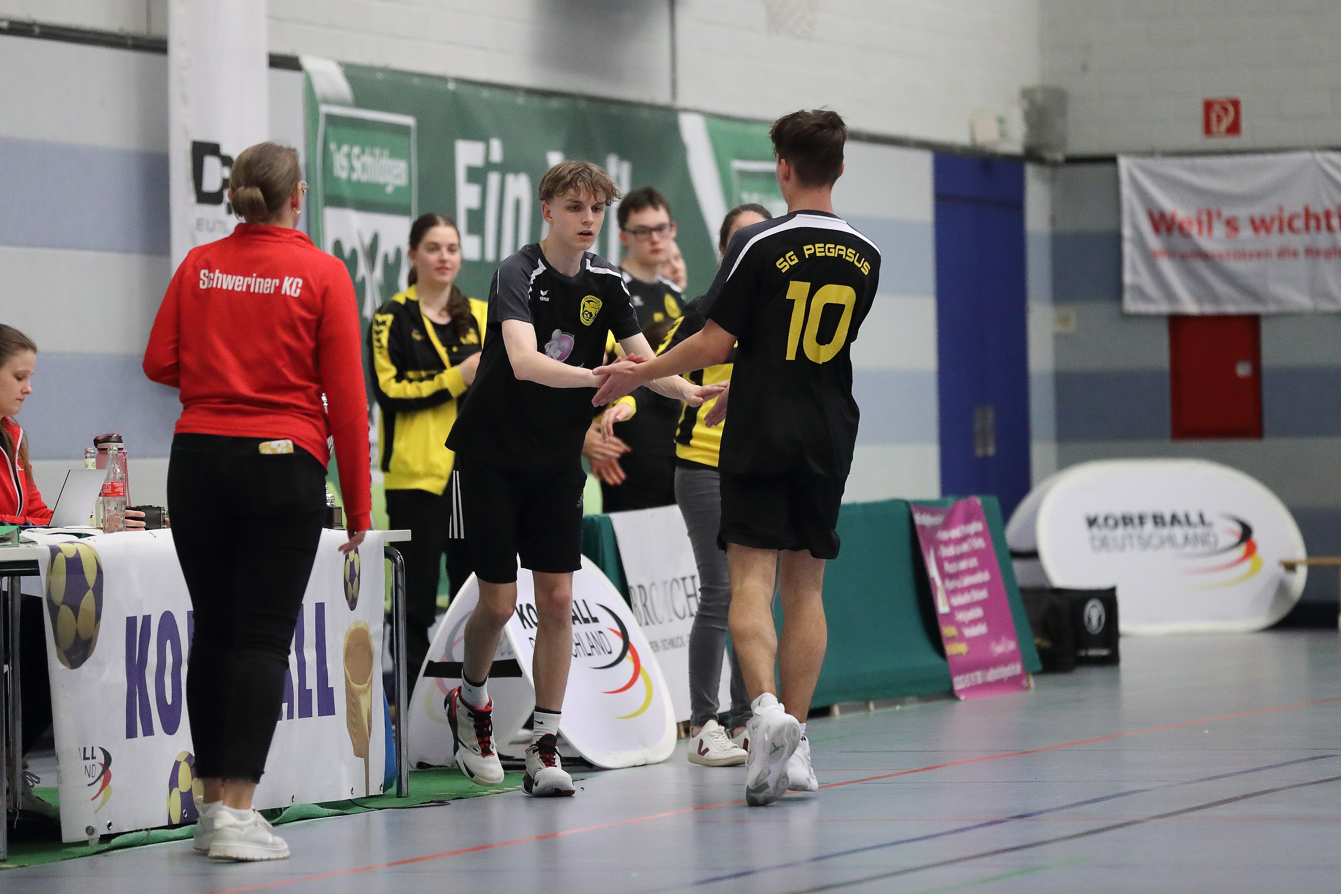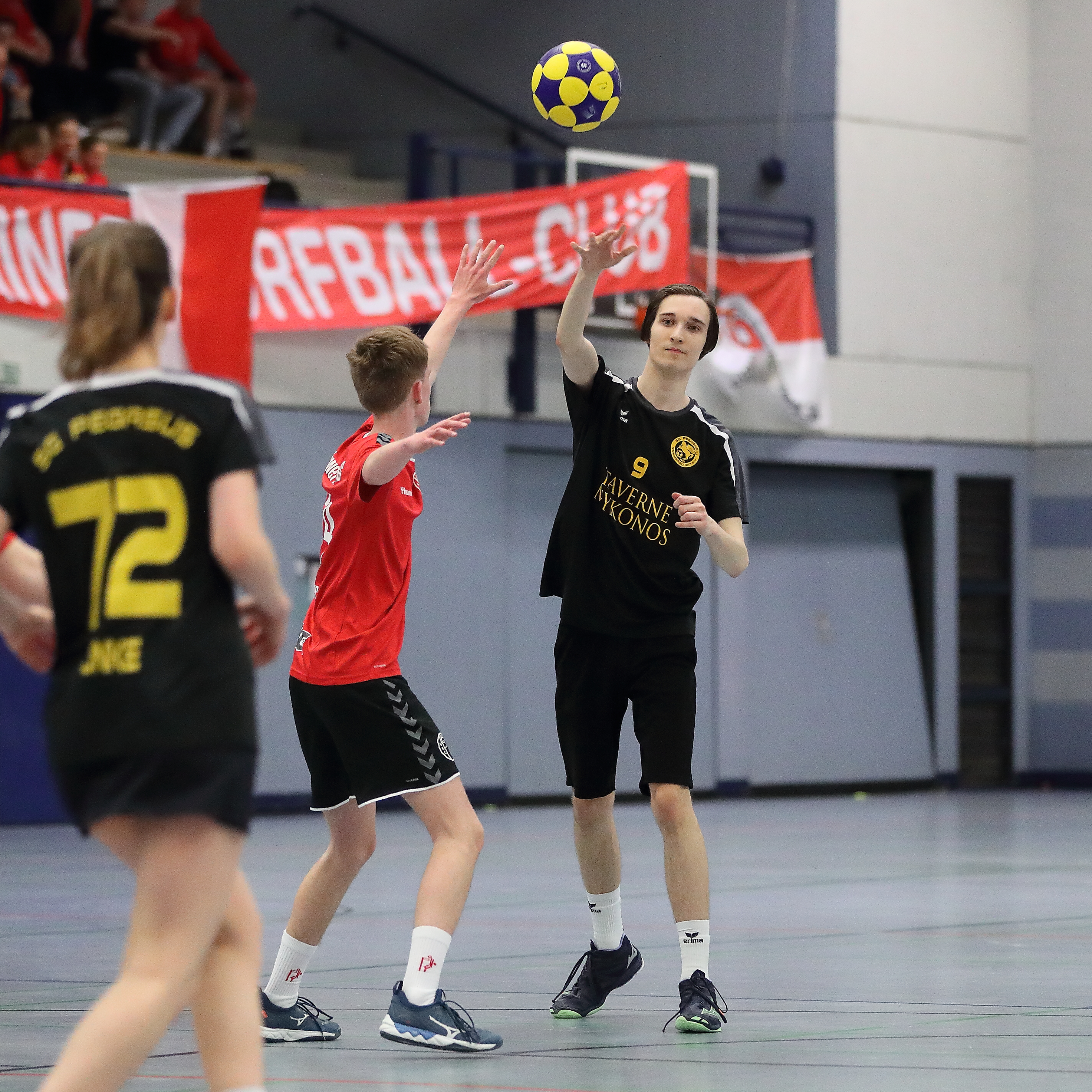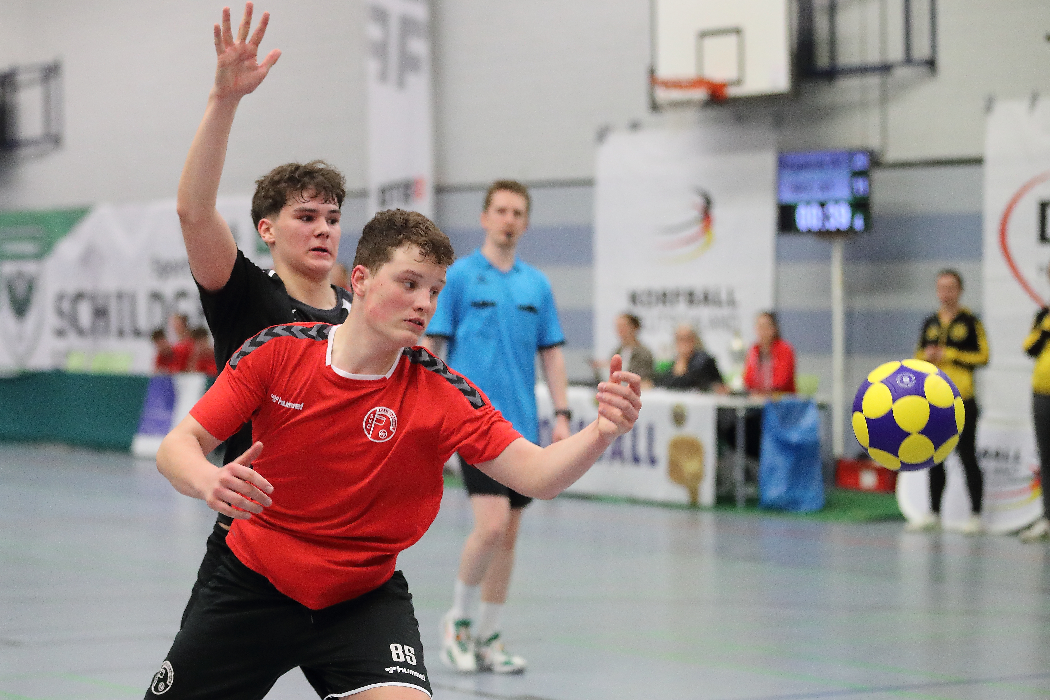 Am 21.04.2024 fand der Deutsche Jugend Cup 2024 statt. Vom Schweriner KC waren die A-, B-, C-, D- und F-Jugend vertreten und kämpften als WTB-Meister um die deutsche Meisterschaft. In dieser Galerie sind die Bilder des A-Jugend Finales zu finden. Gegner war die A-Jugend des SG Pegasus. Der Schweriner KC unterlag leider am Ende mit 20:11. (Fotos Gertrude de Vries, korfballfoto.de)