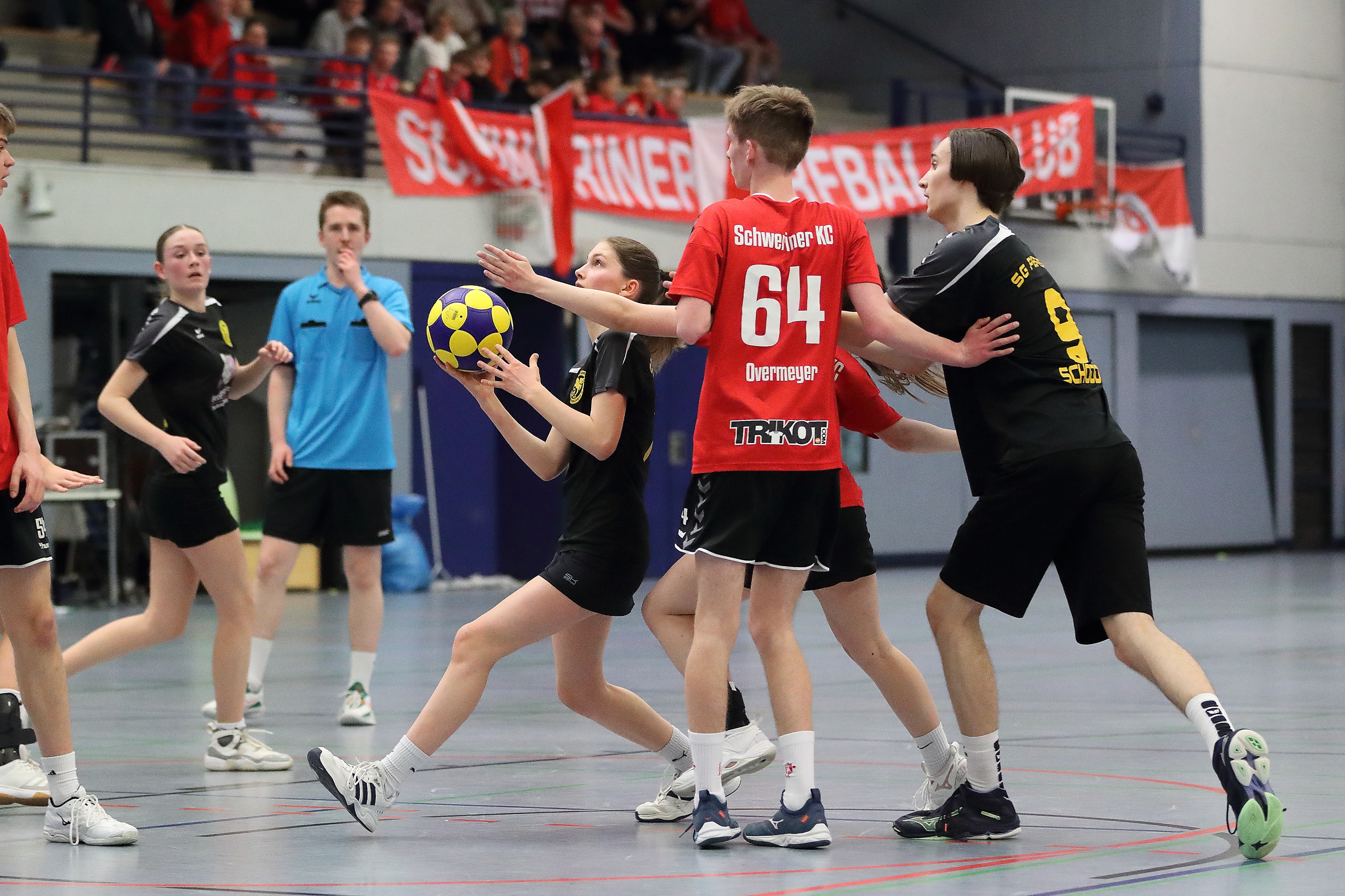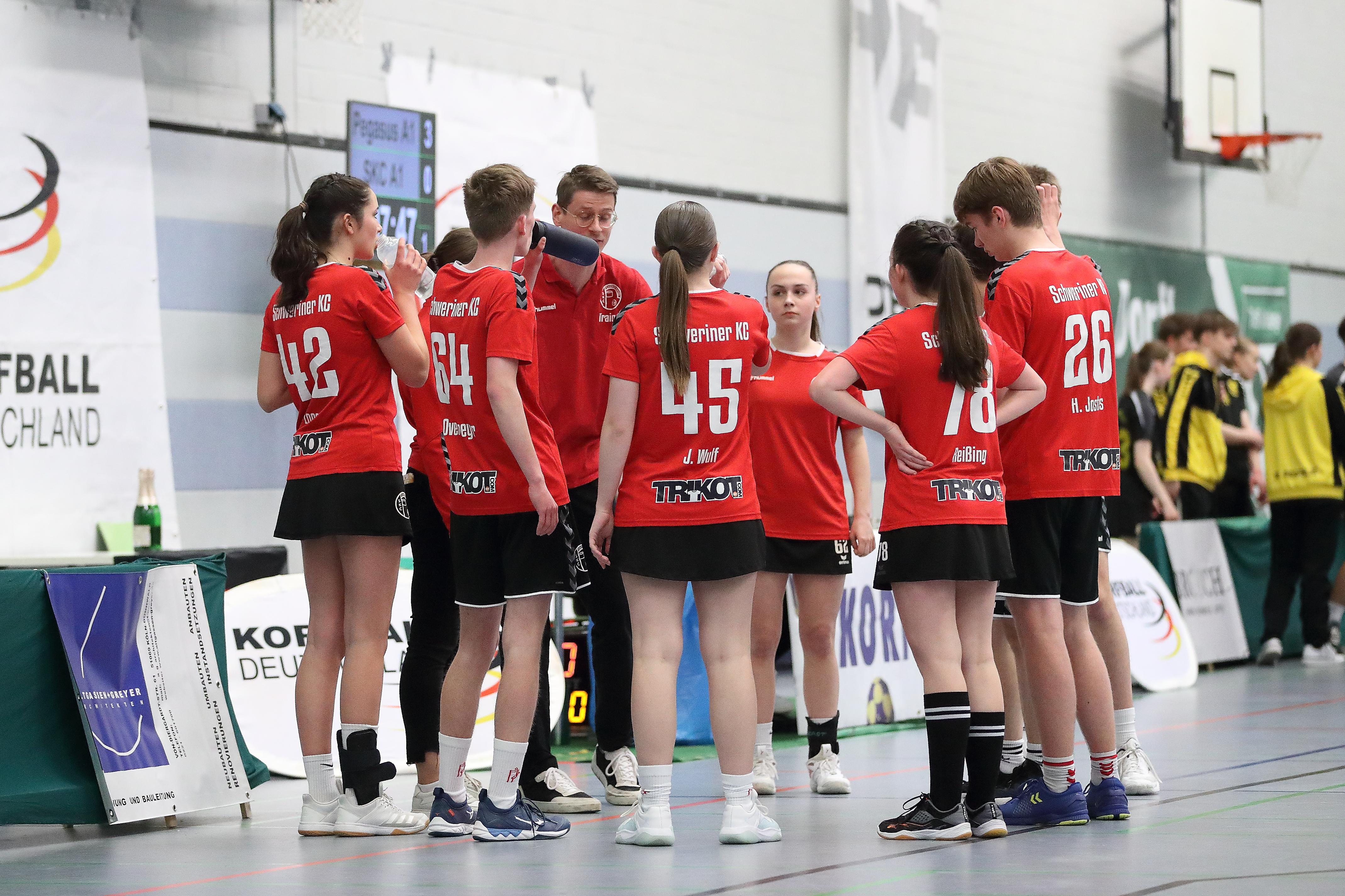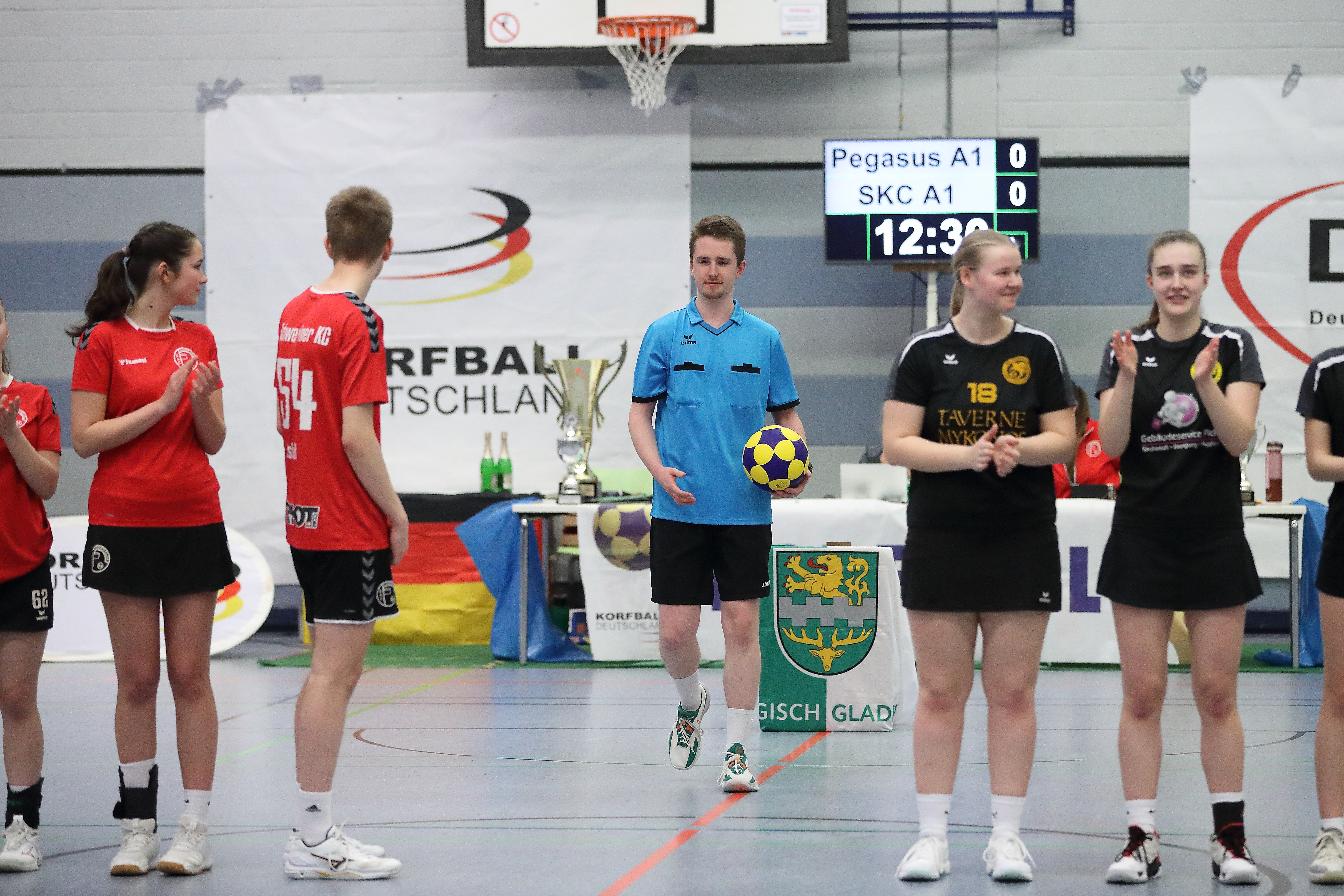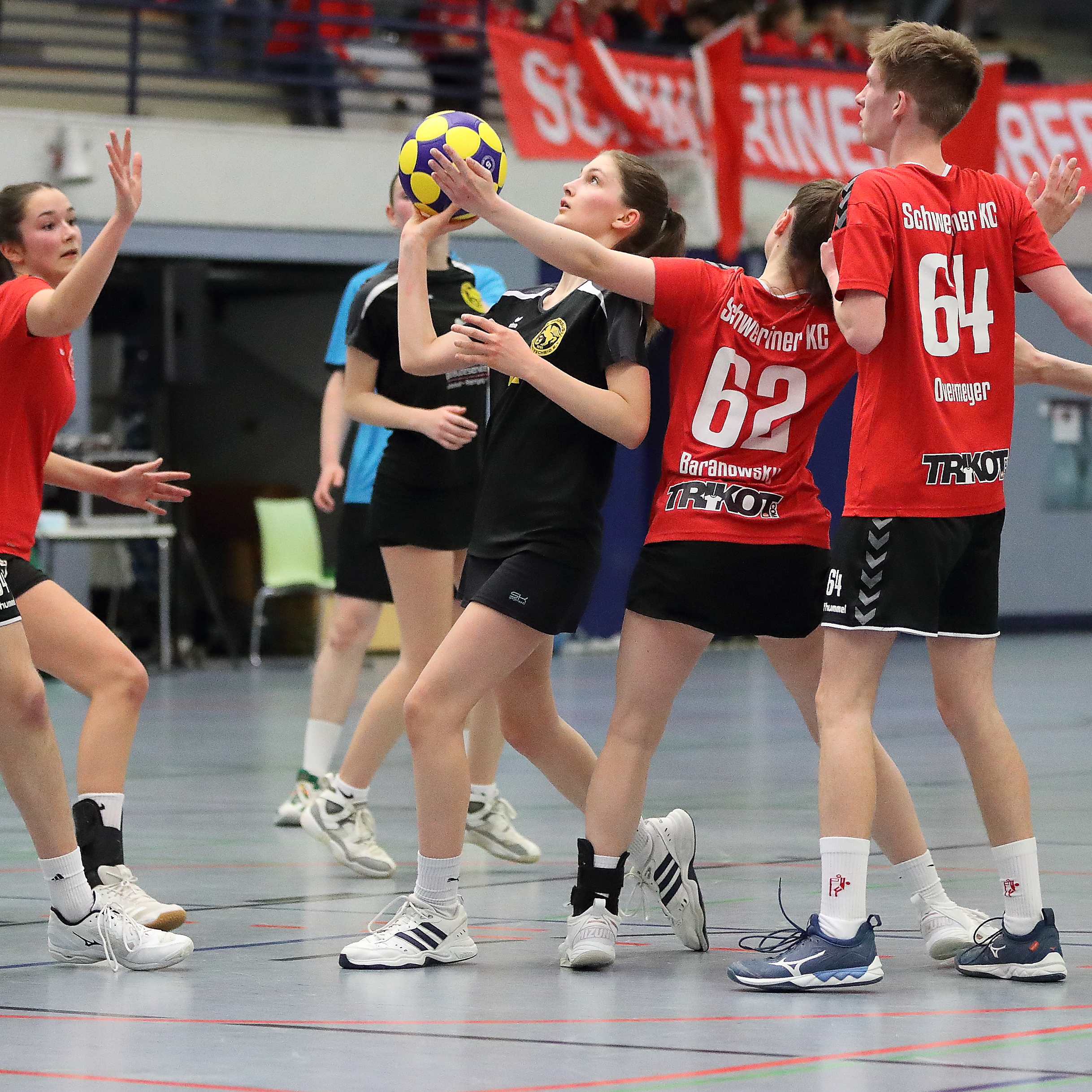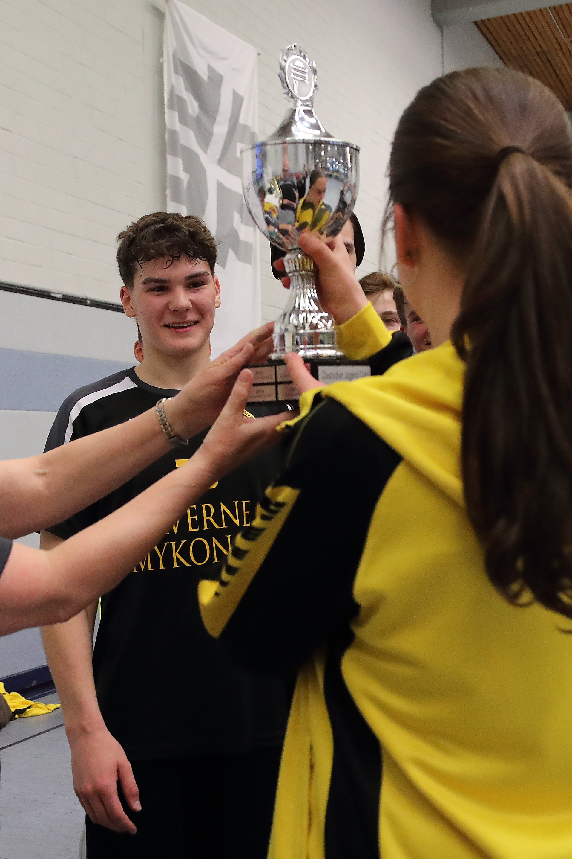 Am 21.04.2024 fand der Deutsche Jugend Cup 2024 statt. Vom Schweriner KC waren die A-, B-, C-, D- und F-Jugend vertreten und kämpften als WTB-Meister um die deutsche Meisterschaft. In dieser Galerie sind die Bilder des A-Jugend Finales zu finden. Gegner war die A-Jugend des SG Pegasus. Der Schweriner KC unterlag leider am Ende mit 20:11. (Fotos Gertrude de Vries, korfballfoto.de)