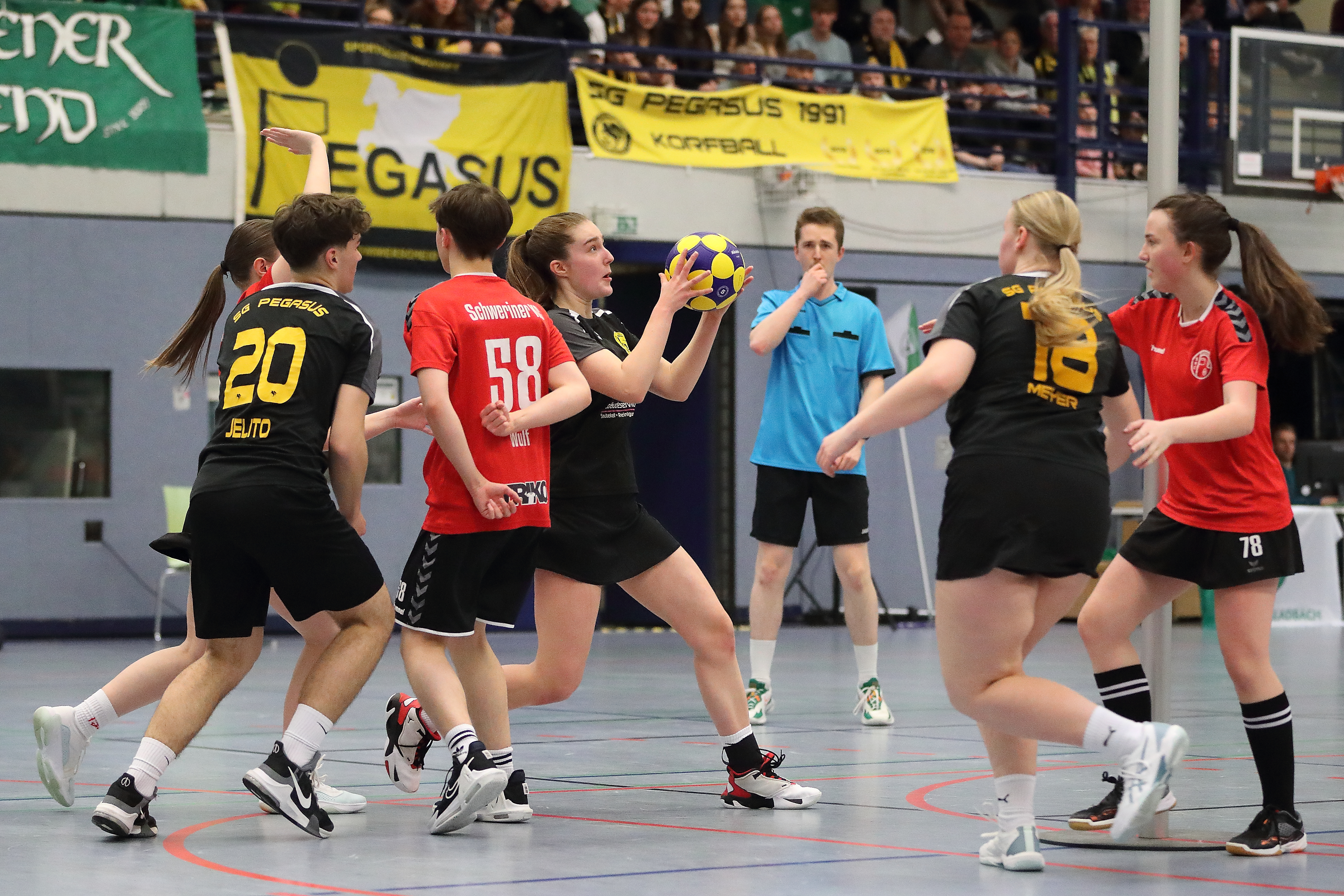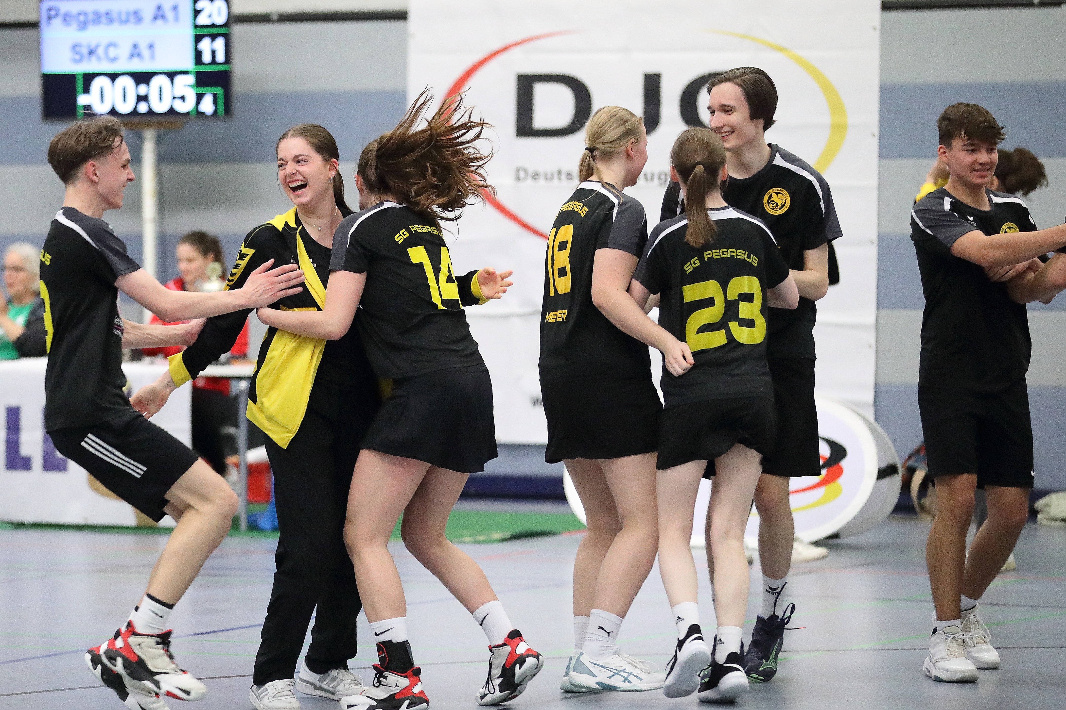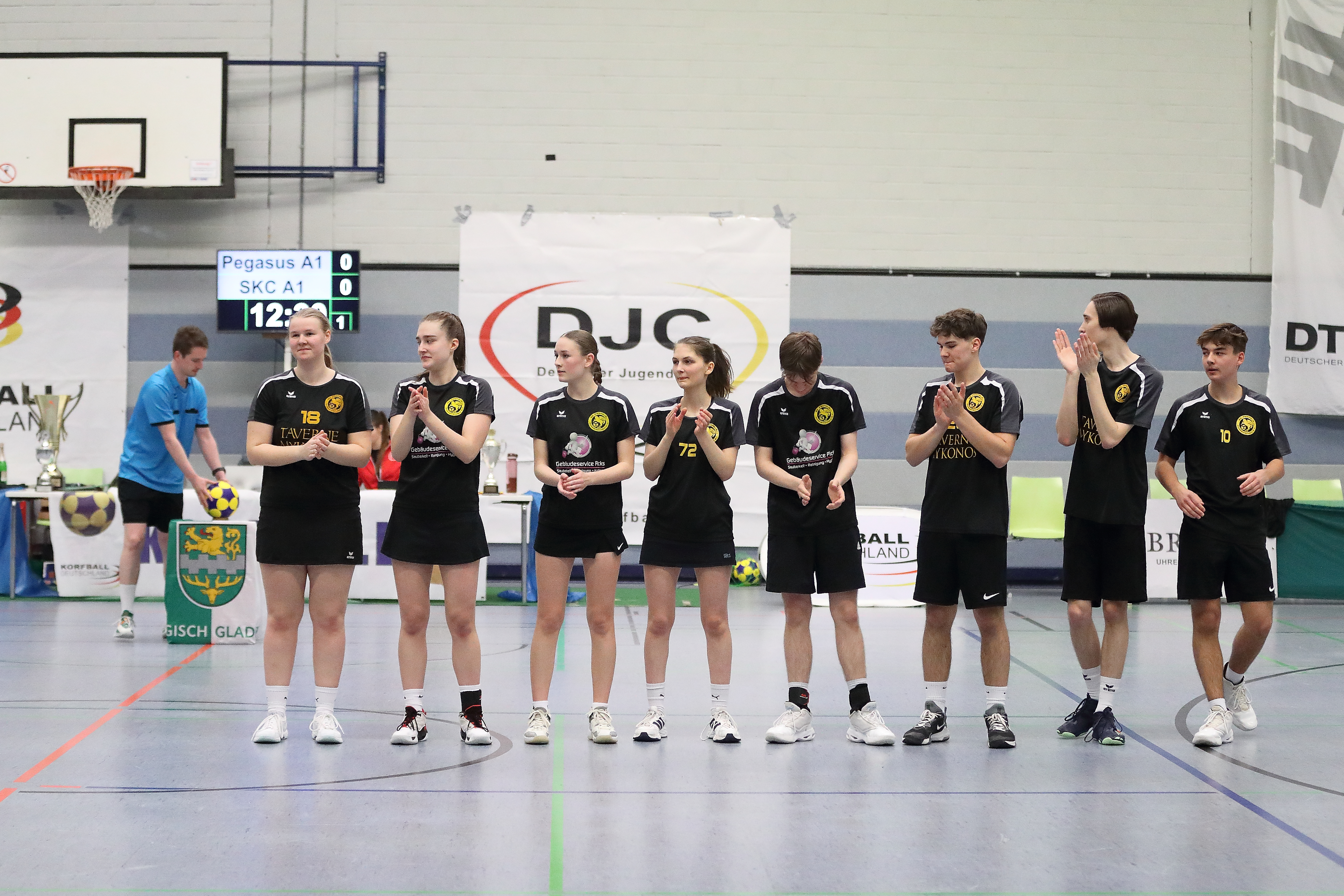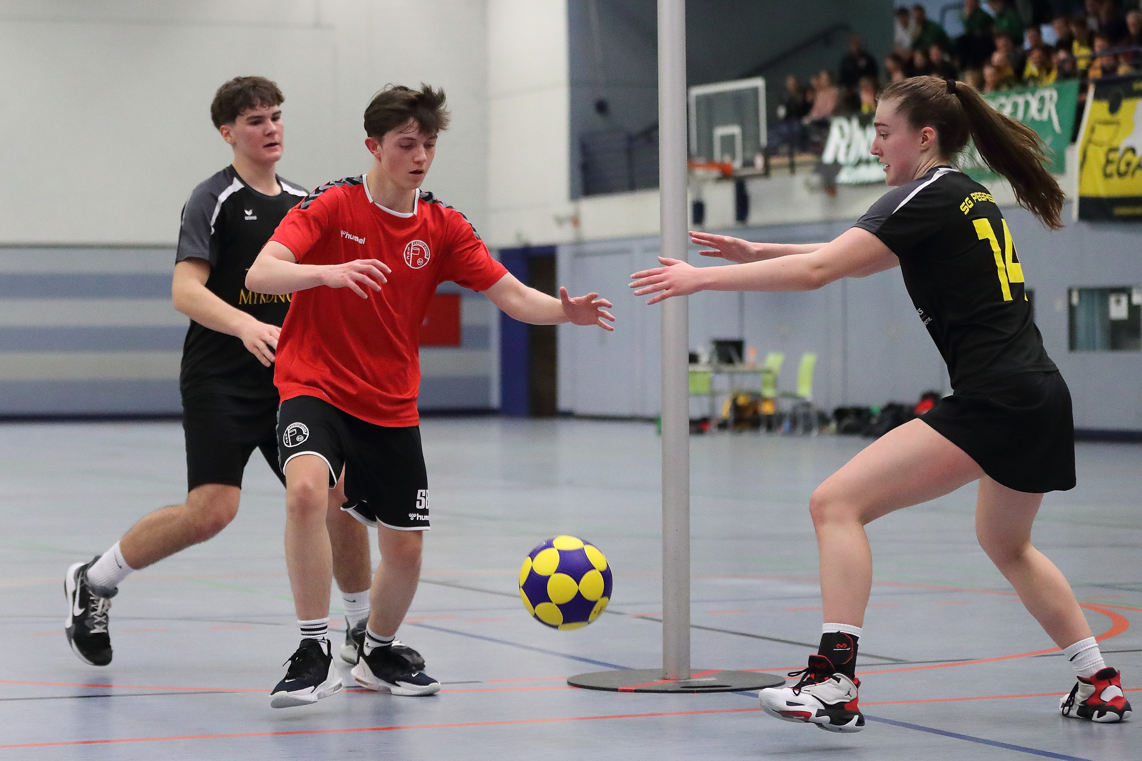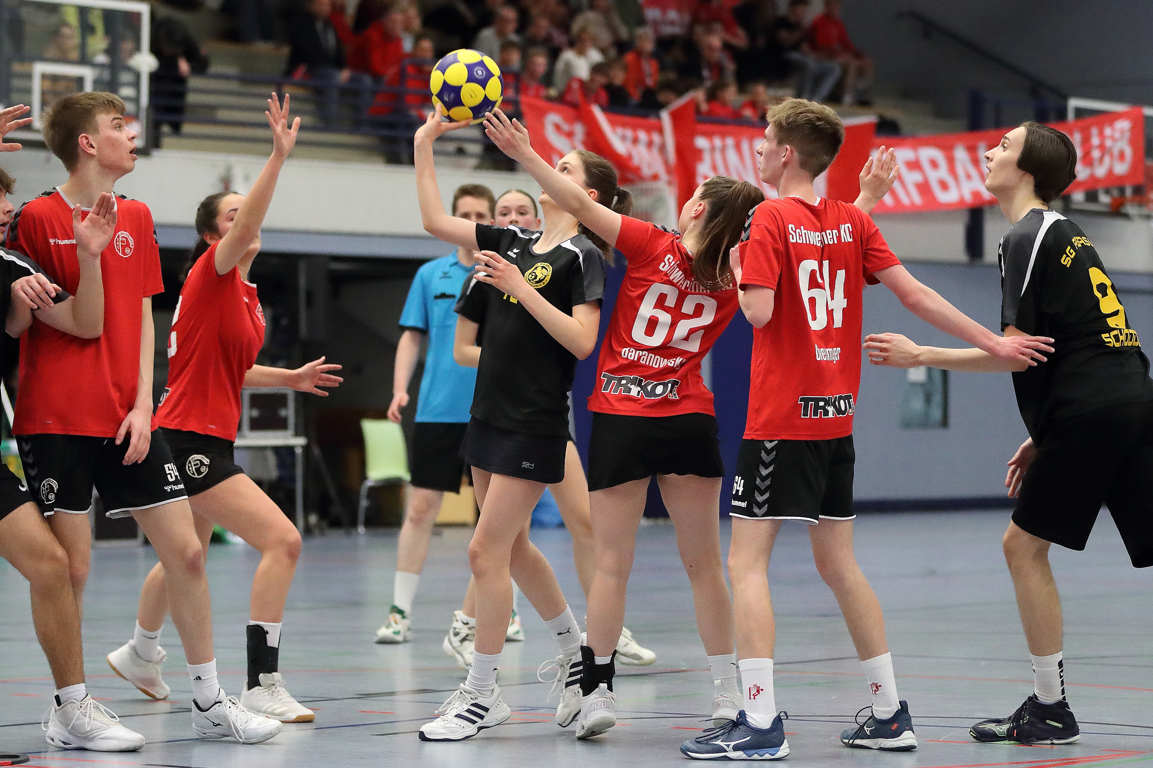 Am 21.04.2024 fand der Deutsche Jugend Cup 2024 statt. Vom Schweriner KC waren die A-, B-, C-, D- und F-Jugend vertreten und kämpften als WTB-Meister um die deutsche Meisterschaft. In dieser Galerie sind die Bilder des A-Jugend Finales zu finden. Gegner war die A-Jugend des SG Pegasus. Der Schweriner KC unterlag leider am Ende mit 20:11. (Fotos Gertrude de Vries, korfballfoto.de)