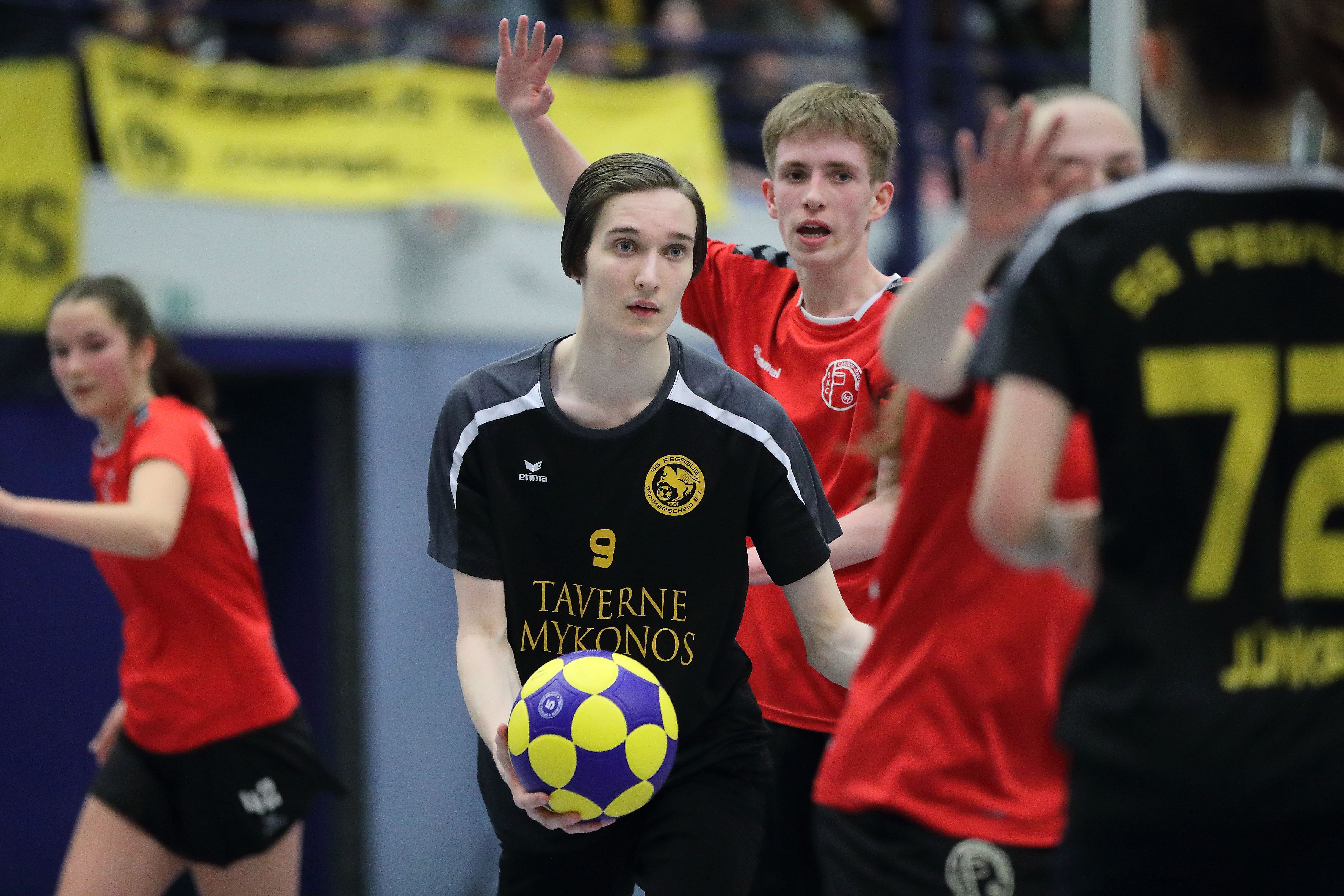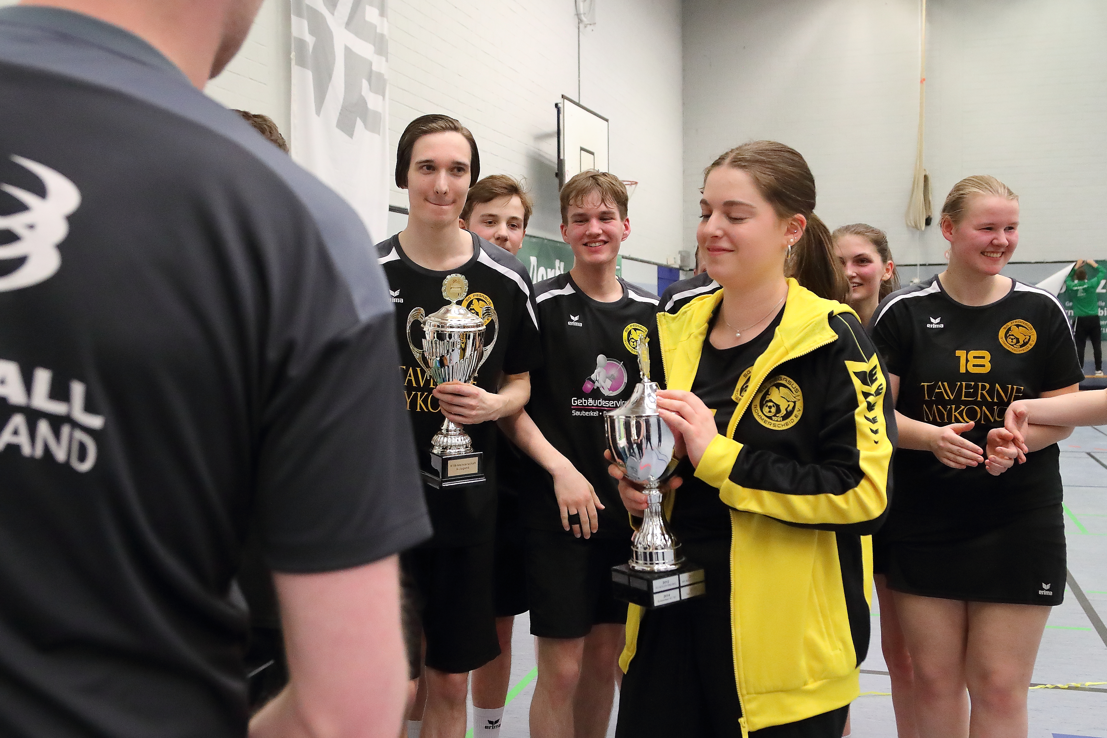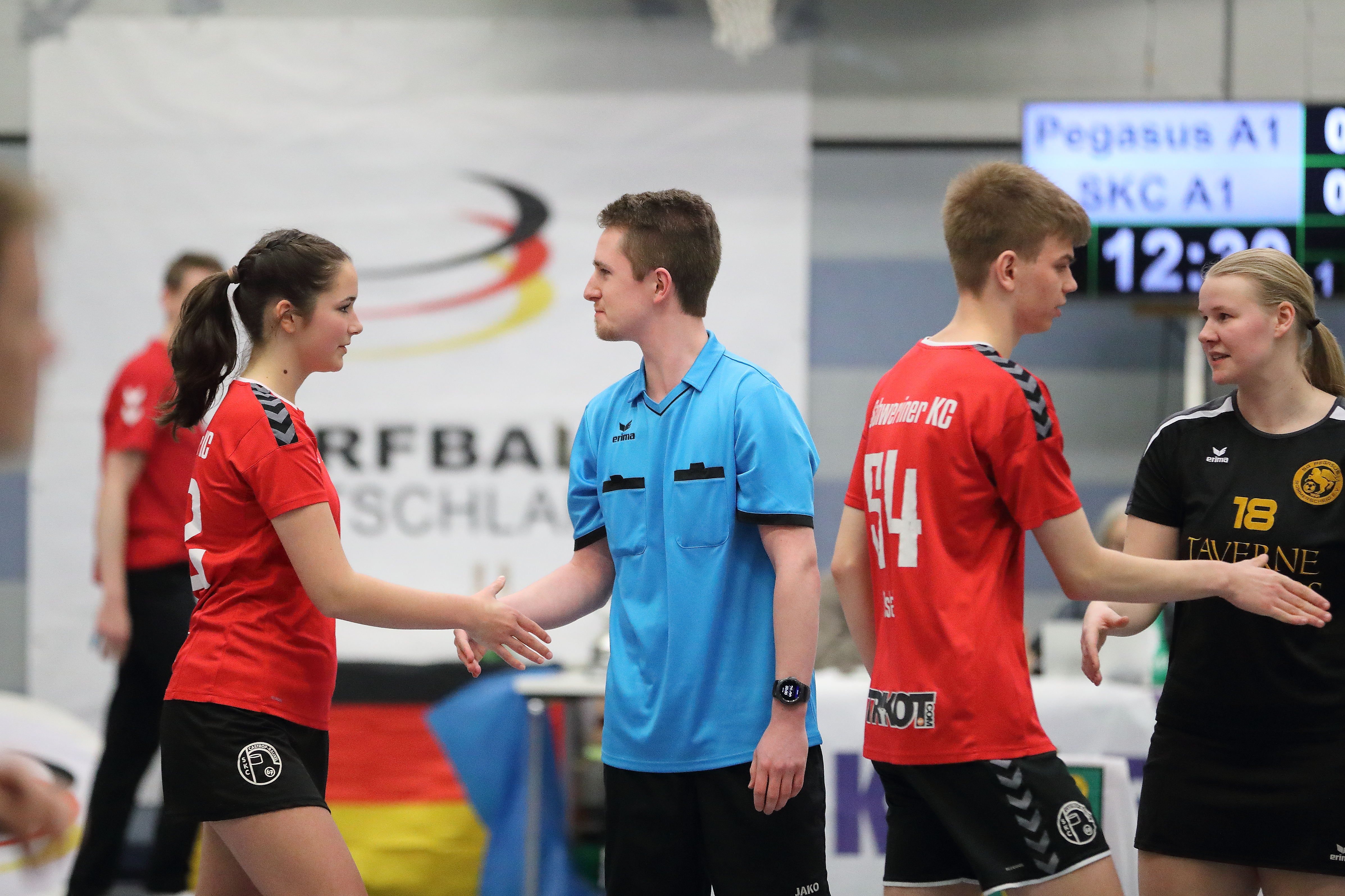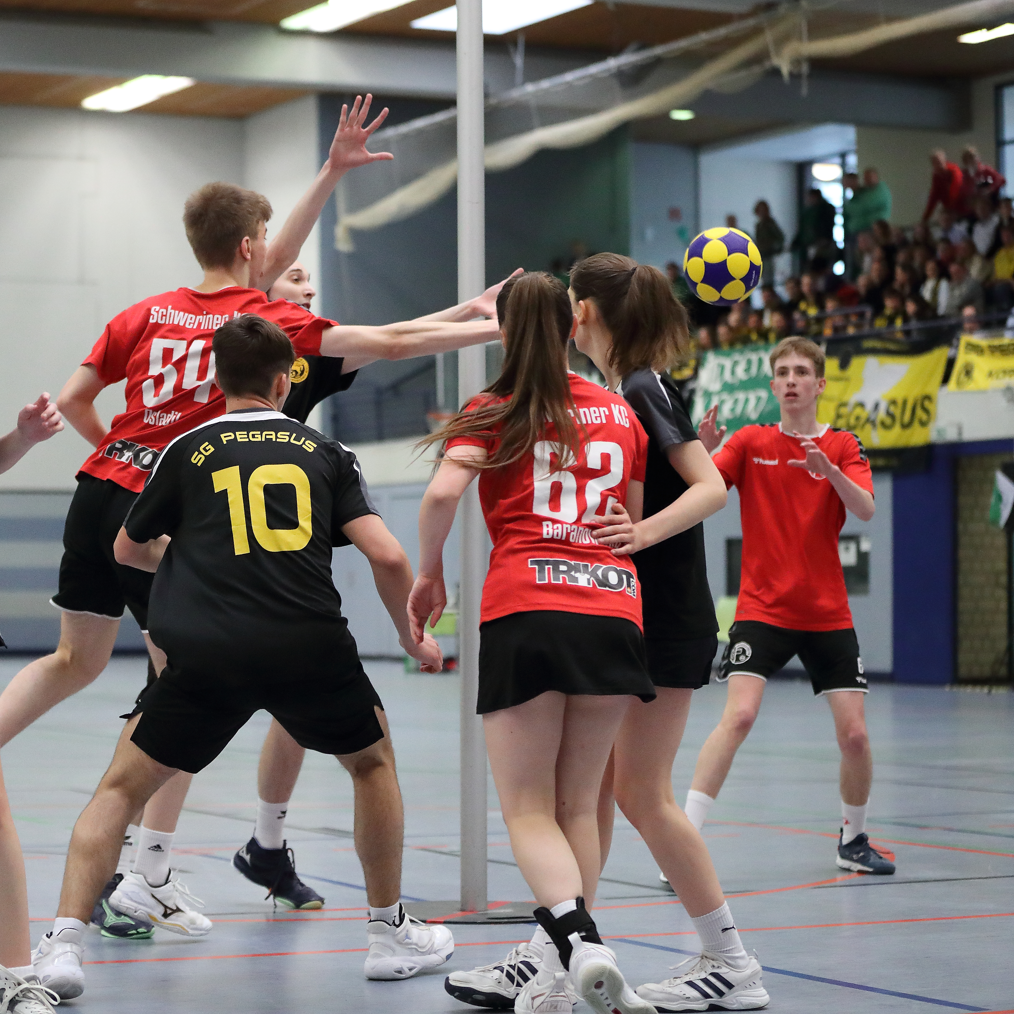 Am 21.04.2024 fand der Deutsche Jugend Cup 2024 statt. Vom Schweriner KC waren die A-, B-, C-, D- und F-Jugend vertreten und kämpften als WTB-Meister um die deutsche Meisterschaft. In dieser Galerie sind die Bilder des A-Jugend Finales zu finden. Gegner war die A-Jugend des SG Pegasus. Der Schweriner KC unterlag leider am Ende mit 20:11. (Fotos Gertrude de Vries, korfballfoto.de)