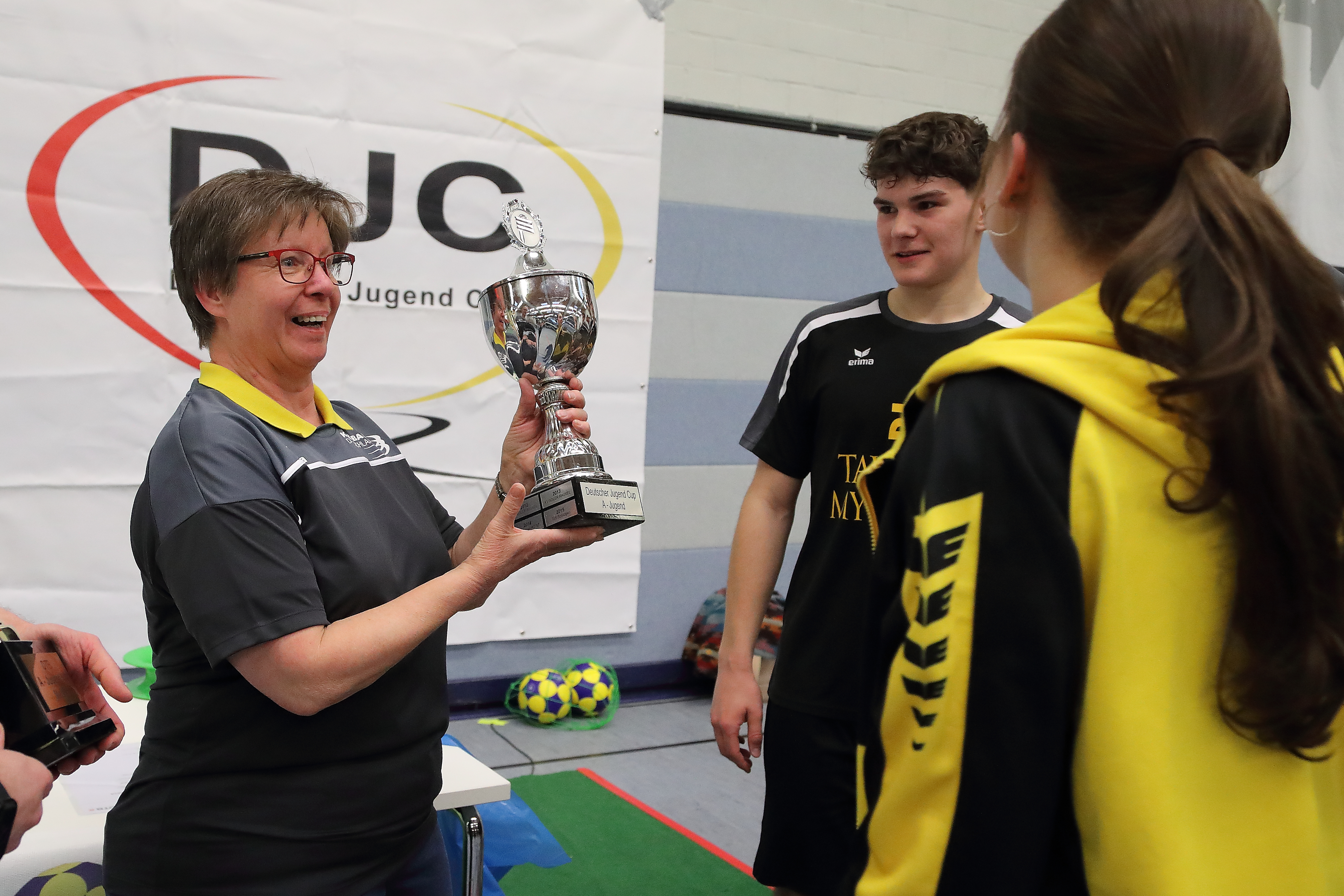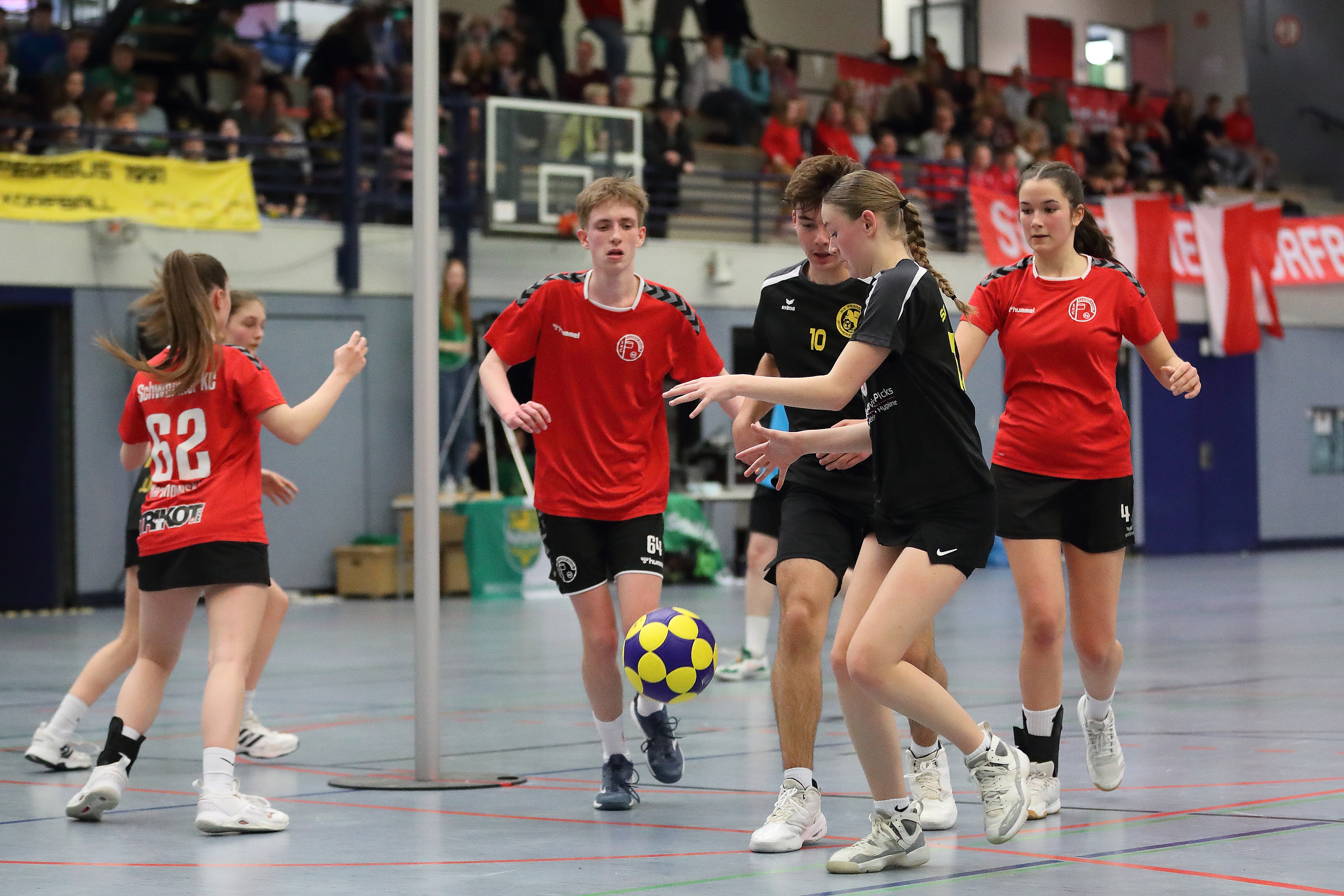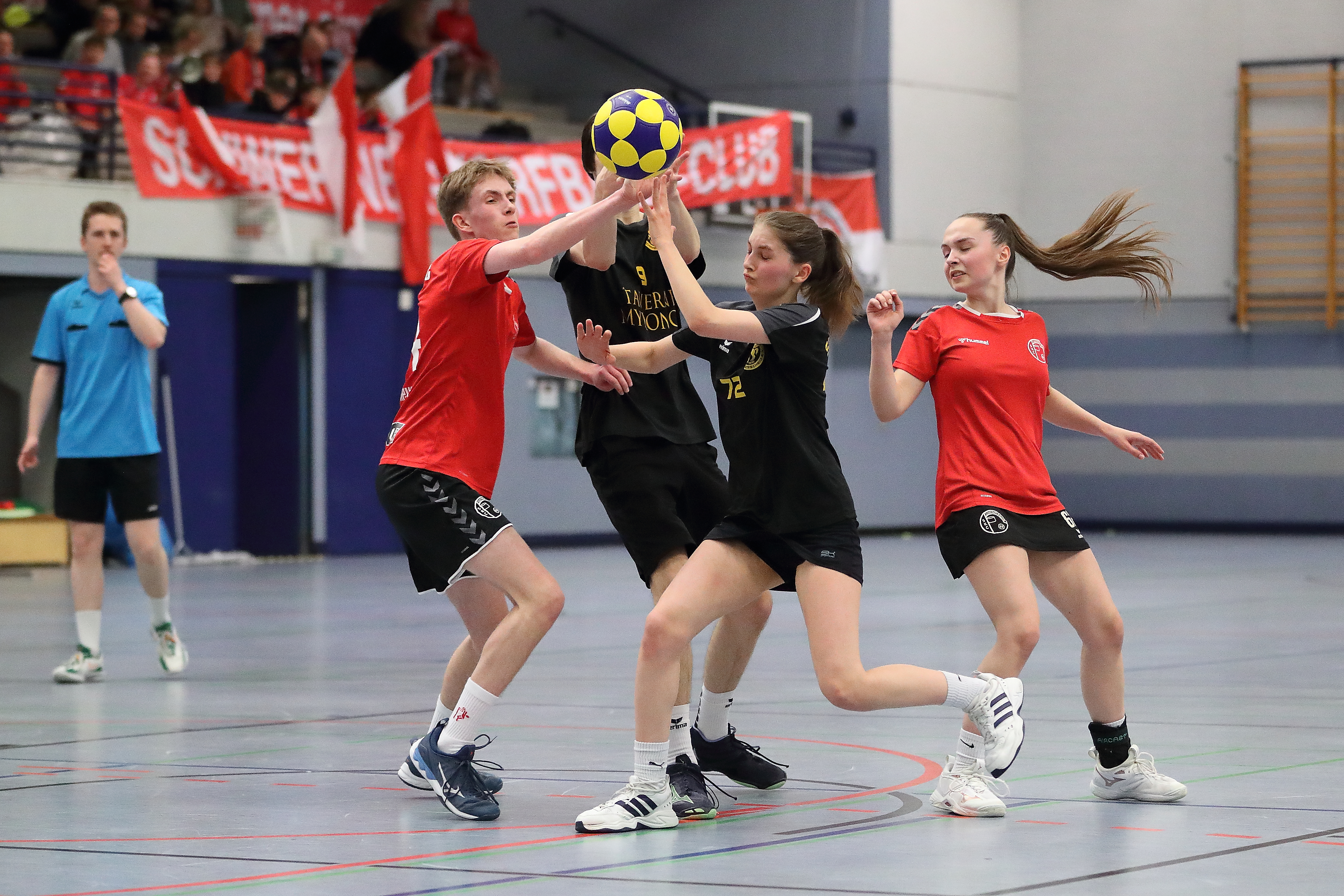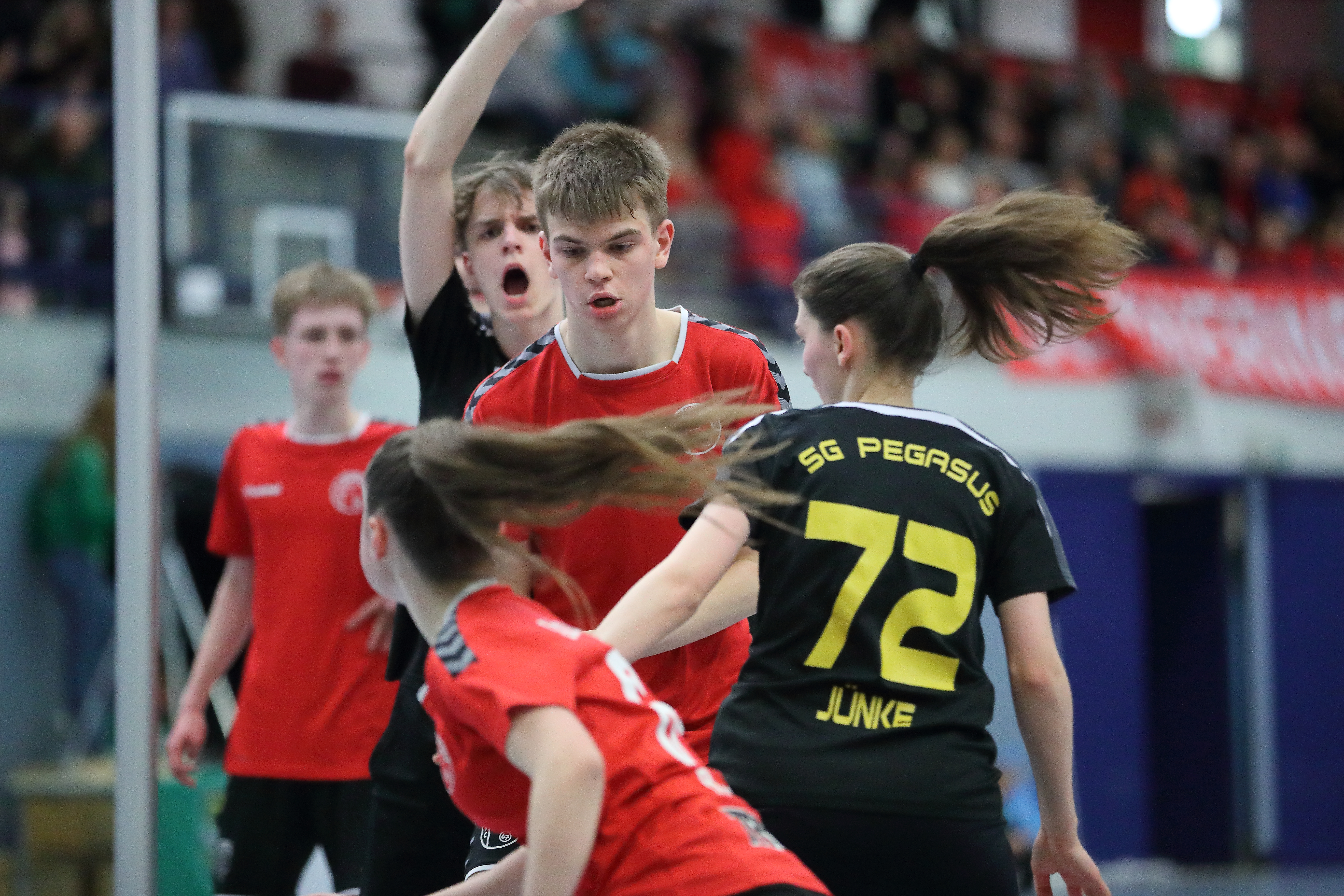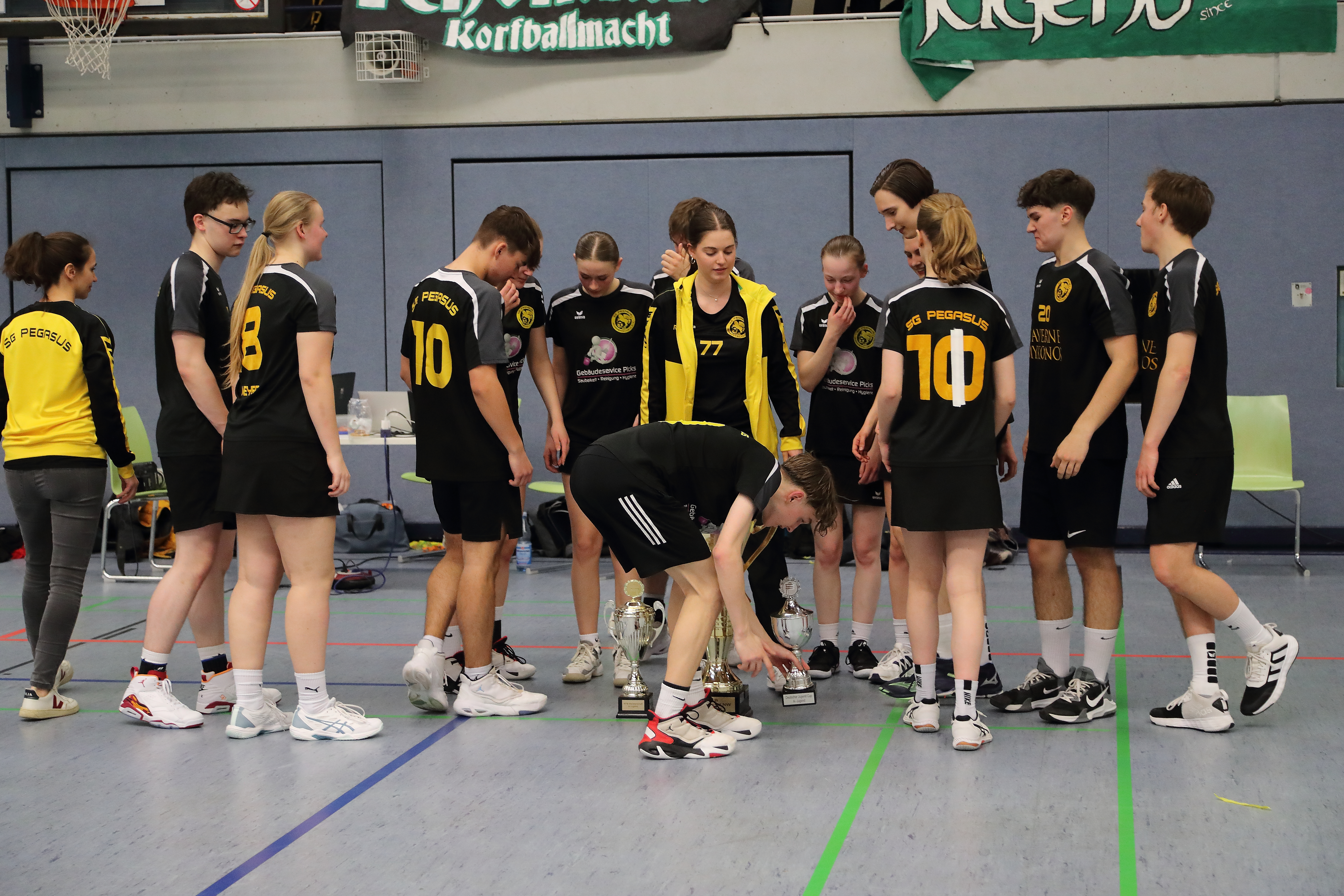 Am 21.04.2024 fand der Deutsche Jugend Cup 2024 statt. Vom Schweriner KC waren die A-, B-, C-, D- und F-Jugend vertreten und kämpften als WTB-Meister um die deutsche Meisterschaft. In dieser Galerie sind die Bilder des A-Jugend Finales zu finden. Gegner war die A-Jugend des SG Pegasus. Der Schweriner KC unterlag leider am Ende mit 20:11. (Fotos Gertrude de Vries, korfballfoto.de)