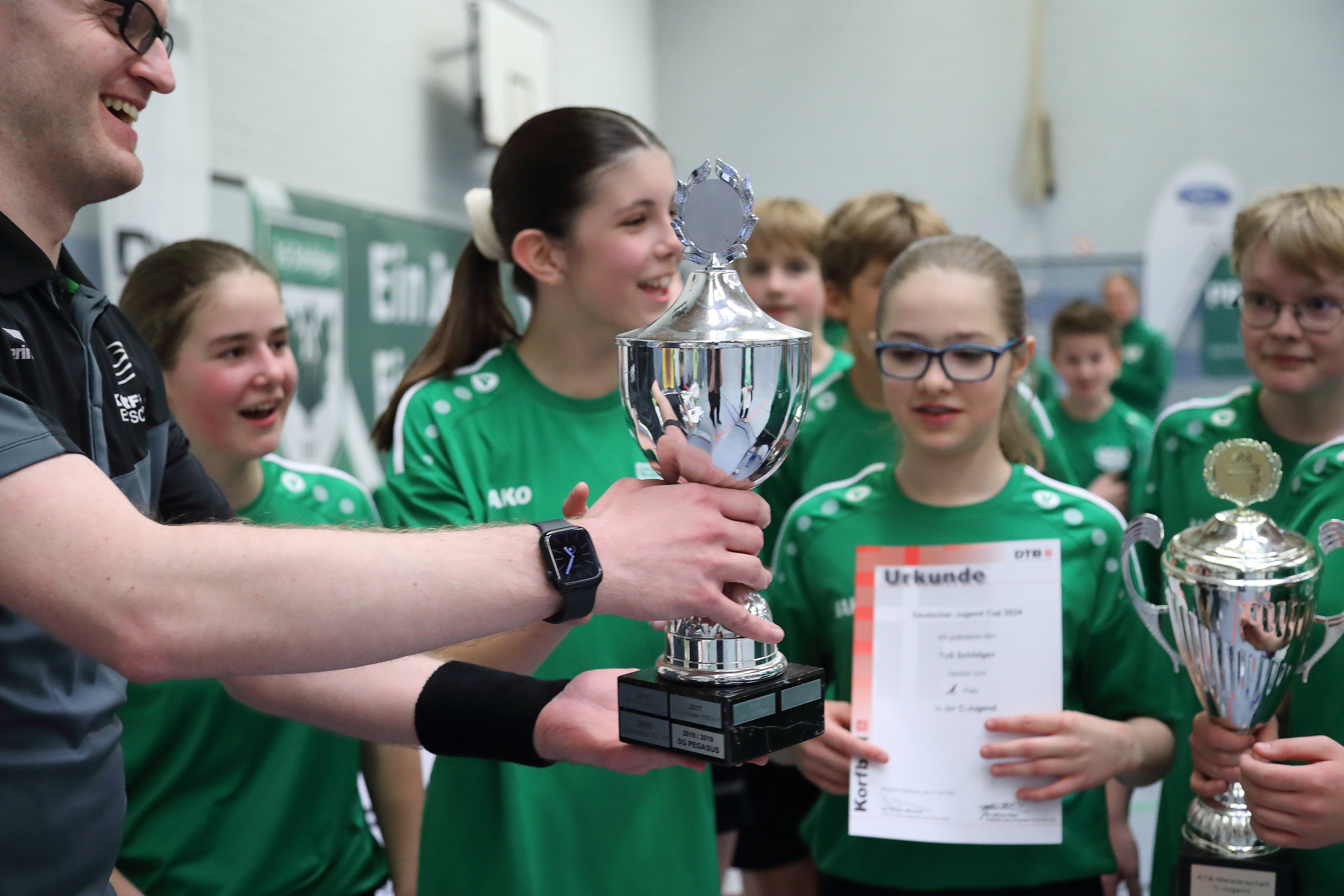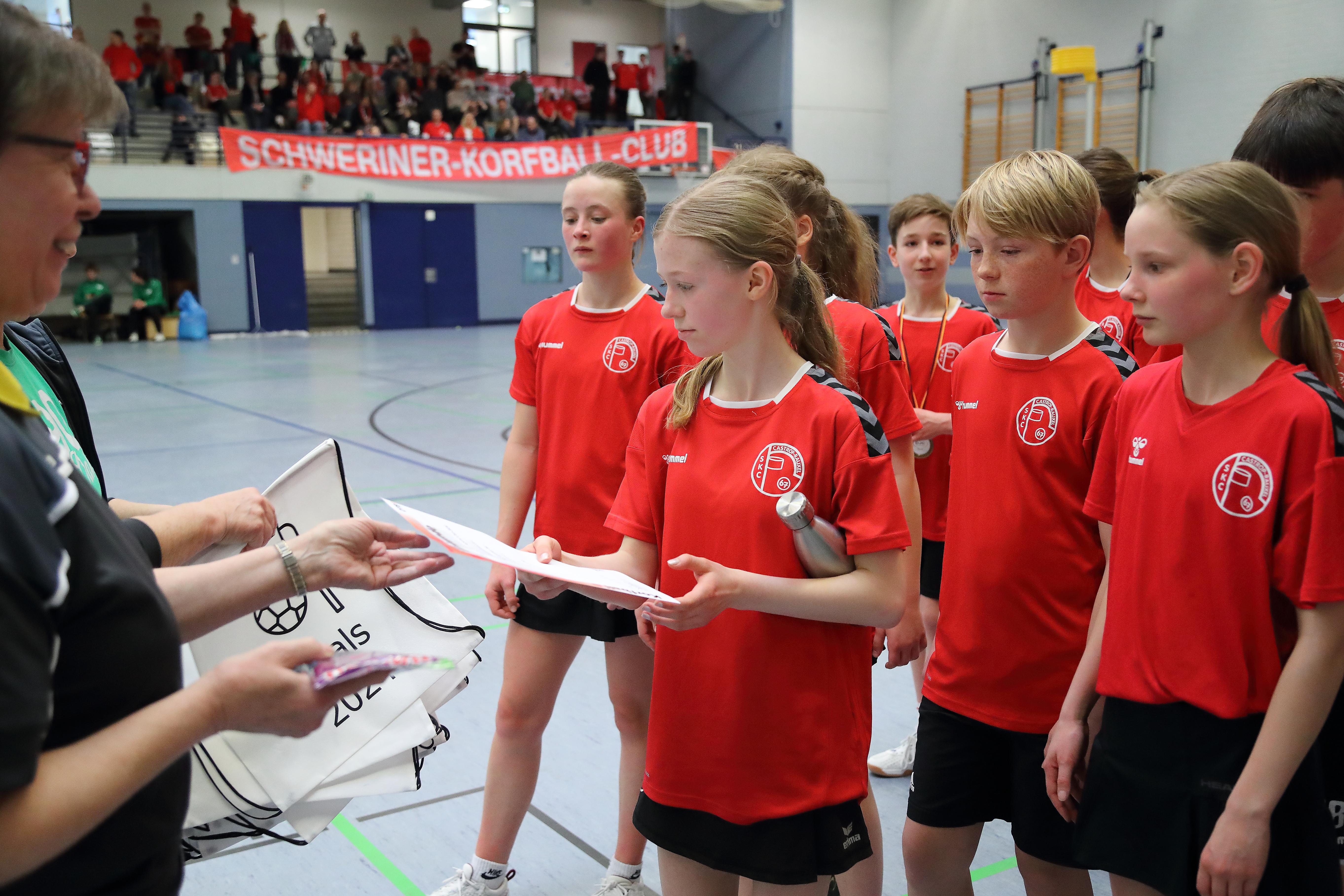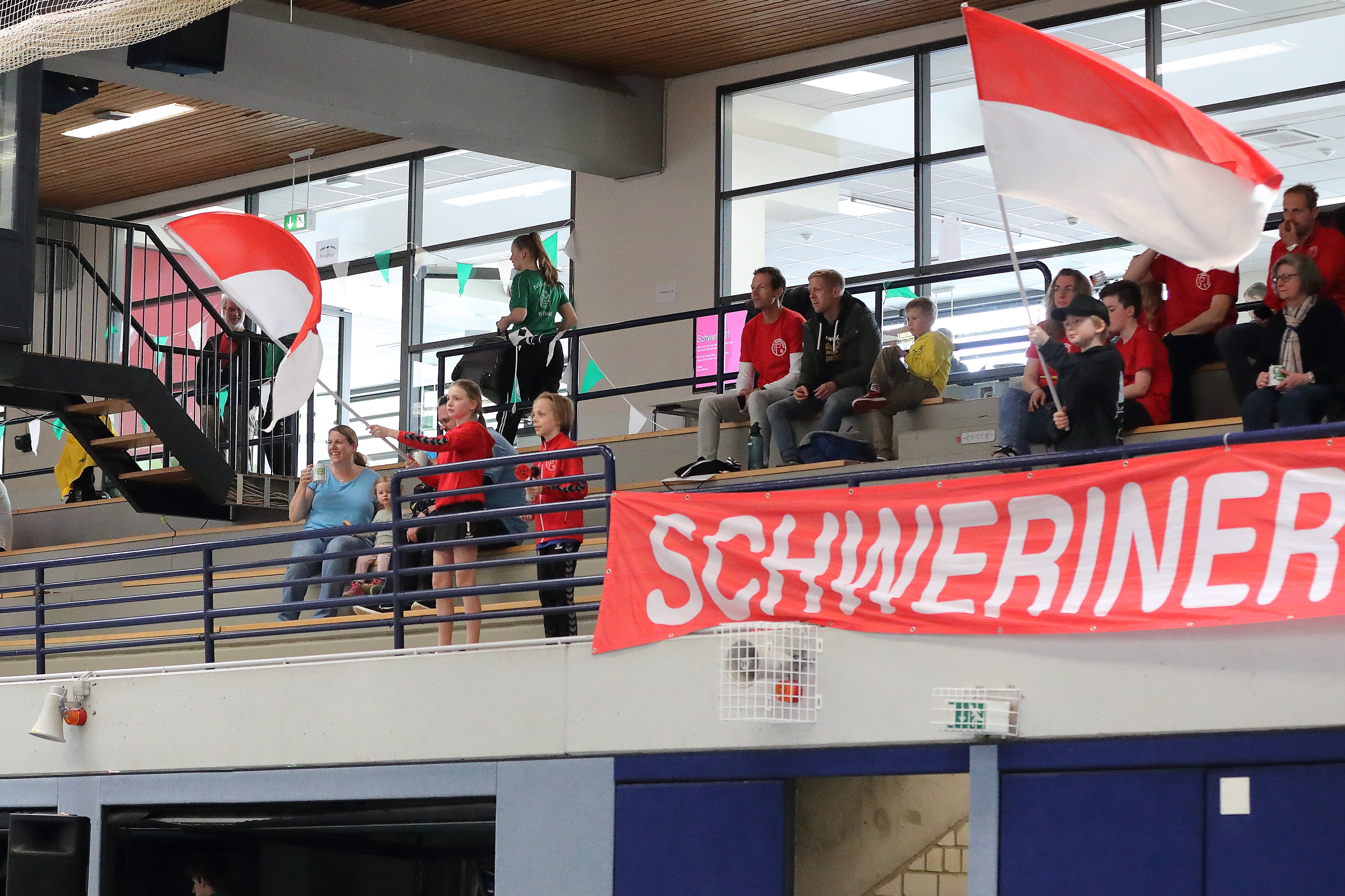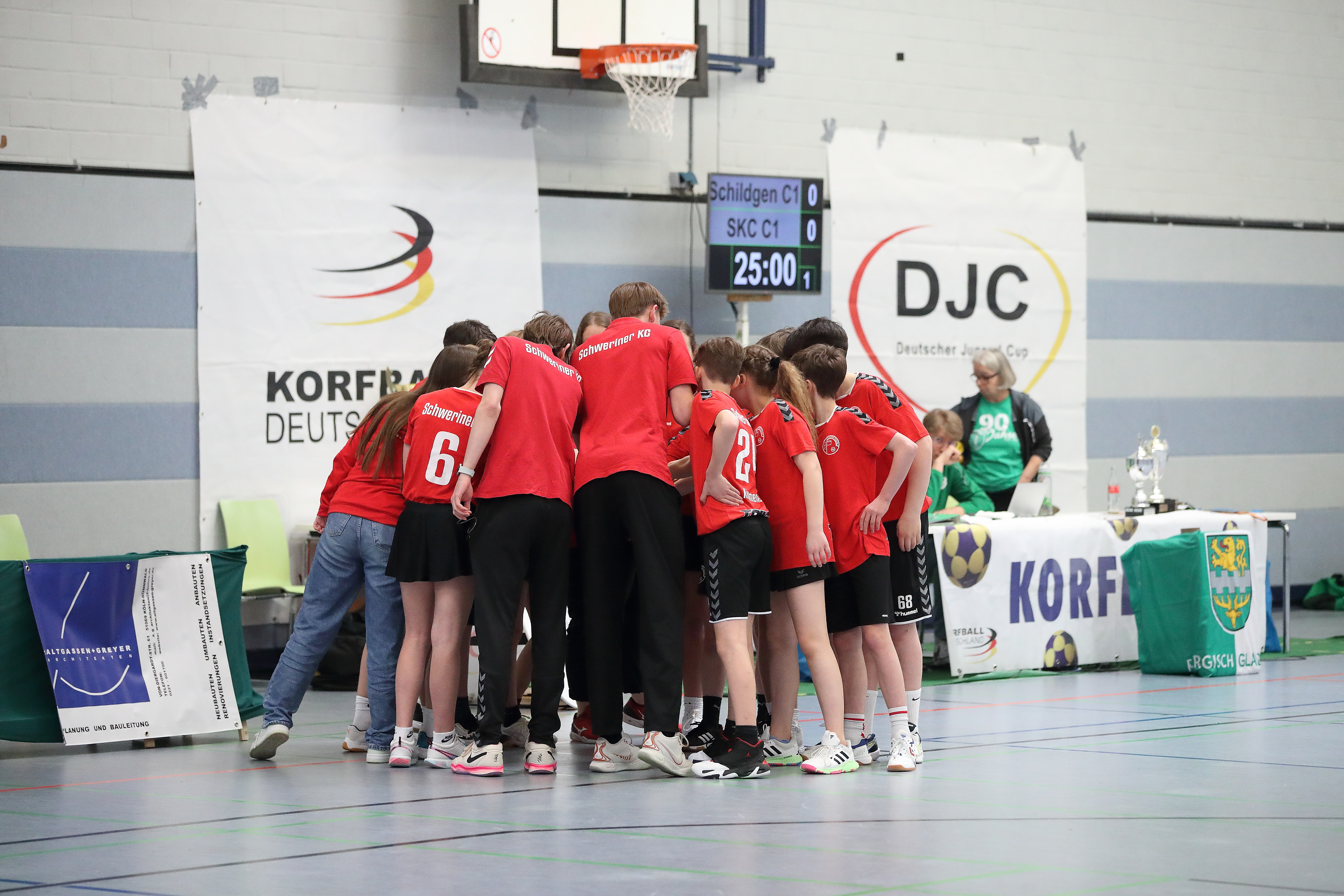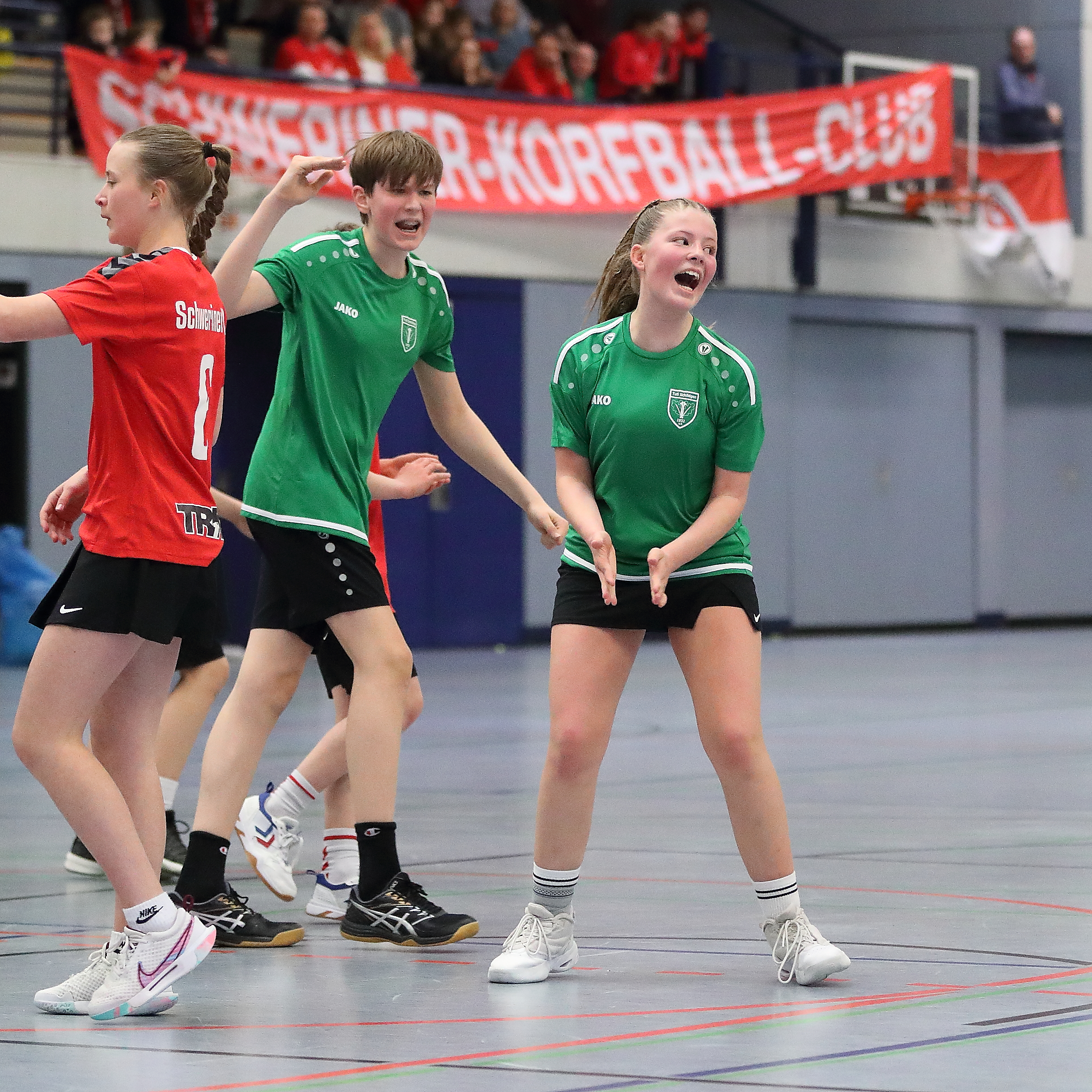 Am 21.04.2024 fand der Deutsche Jugend Cup 2024 statt. Vom Schweriner KC waren die A-, B-, C-, D- und F-Jugend vertreten und kämpften als WTB-Meister um die deutsche Meisterschaft. In dieser Galerie sind die Bilder des C-Jugend Finales zu finden. Gegner war die C-Jugend des TuS Schildgen. Der Schweriner KC unterlag leider am Ende mit 15:7. (Fotos Gertrude de Vries, korfballfoto.de)