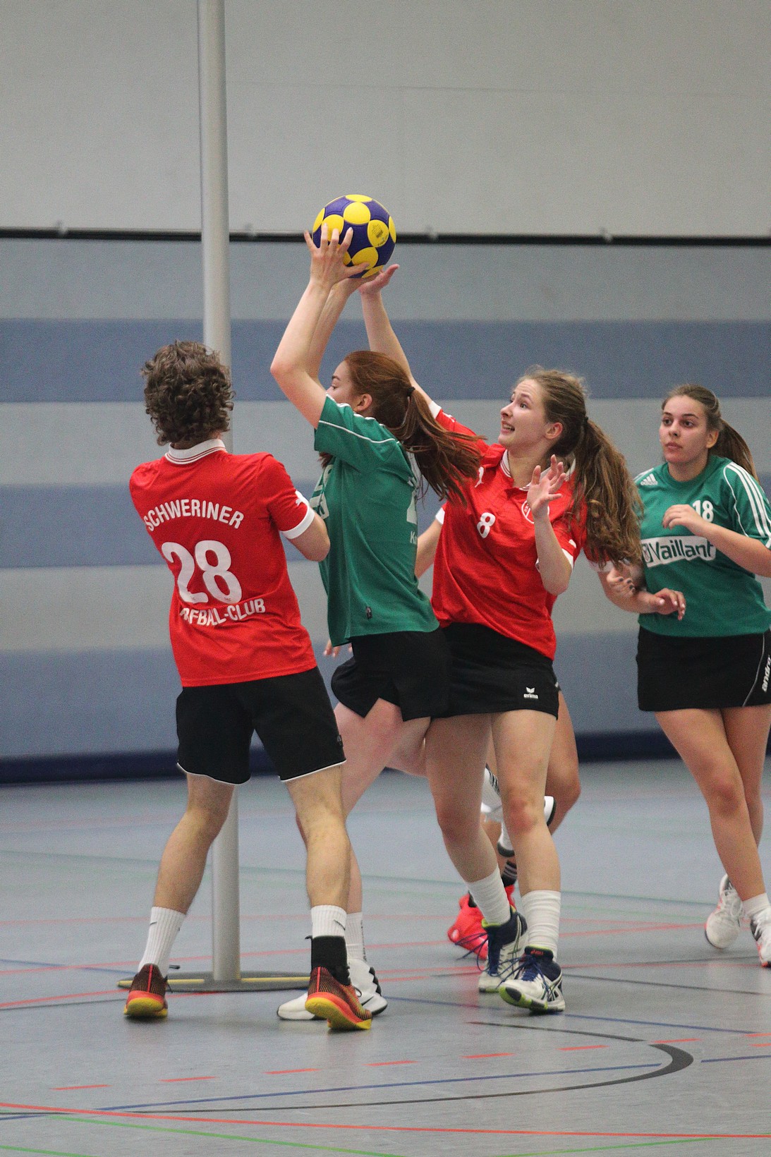 Der Schweriner Korfball CLub nahm mit der E- und der A-Jugend teil. Die gegnerischen Teams kamen beide vom TuS Schildgen.