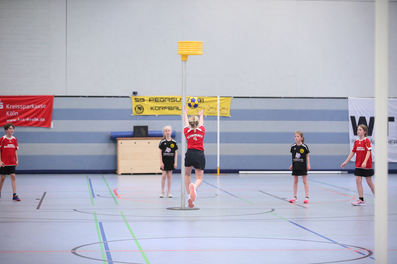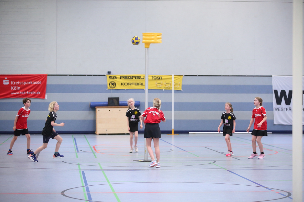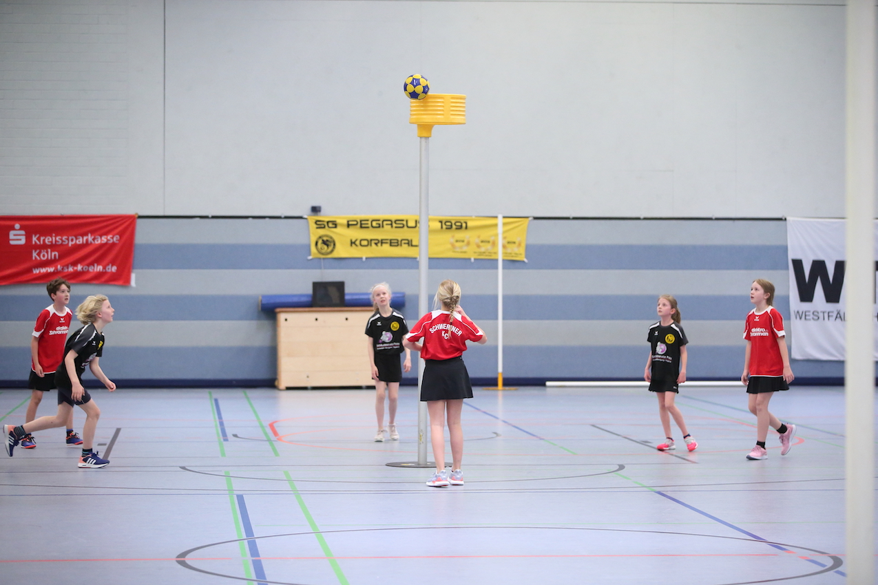 Am 18.05.2019 fand der Deutsche Jugend Cup 2019 statt. Vom Schweriner KC war unter anderem die E-Jugend dabei und kämpfte als WTB-Meister um die deutsche Meisterschaft. In der E-Jugend wird zunächst ein Halbfinale zwischen dem WTB-Meister und dem RTB-Vizemeister und umgekehrt ausgetragen bevor es zum Finale um die deutsche Meisterschaft geht. Der erste Gegner unserer E-Jugend war der RTB-Vizemeister von der SG Pegasus. Man musste sich im ersten Spiel leider 7:5 geschlagen geben. Auch im Spiel um Platz 3 gegen den RTB-Meister vom TUS Schildgen, der sein ersten Spiel gegen die E-Jugend des EKC Phoenix verlor, zog unsere E-Jugend den Kürzeren. Das Spiel endete 8:4 für den TUS Schildgen. (Fotos Gertrude de Vries/Marco Spelten, korfballfoto.de)