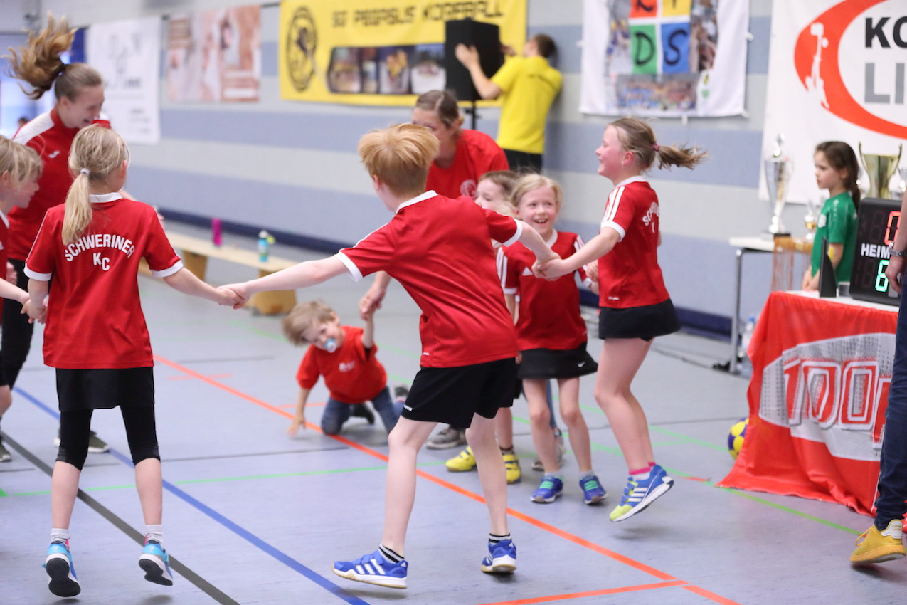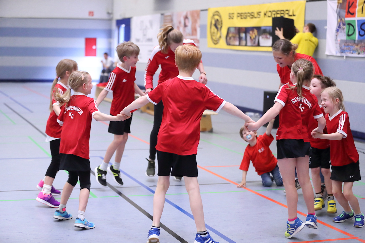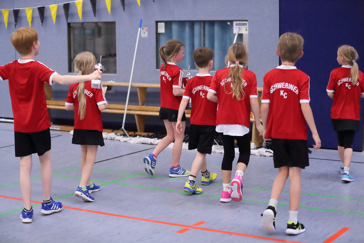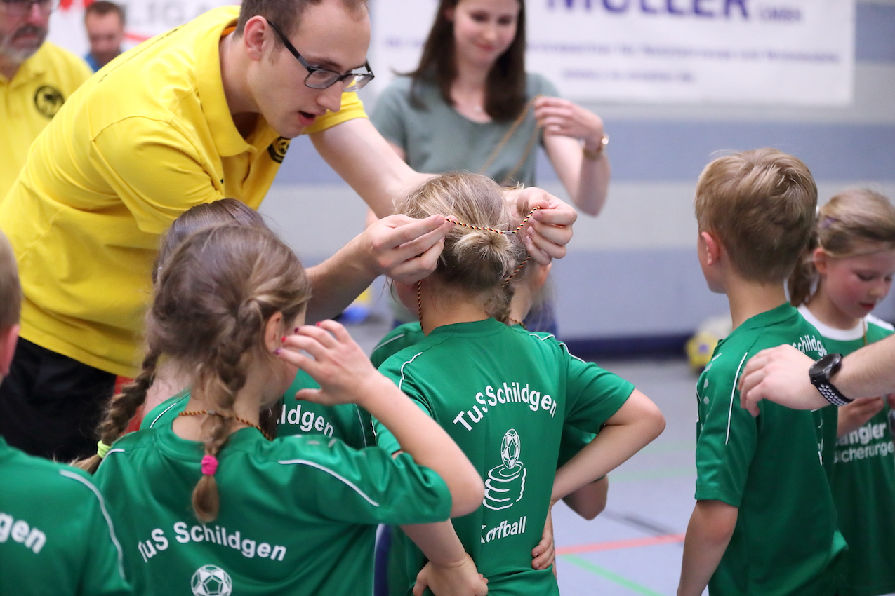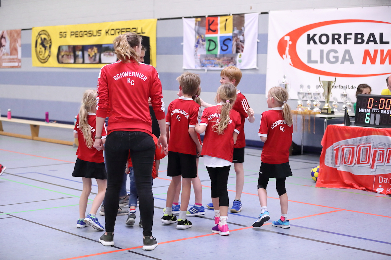Am 18.05.2019 fand der Deutsche Jugend Cup 2019 statt. Vom Schweriner KC war unter anderem die F-Jugend dabei und kämpfte als WTB-Meister um die deutsche Meisterschaft. In der F-Jugend wird zunächst ein Halbfinale zwischen dem WTB-Meister und dem RTB-Vizemeister und umgekehrt ausgetragen bevor es zum Finale um die deutsche Meisterschaft geht. Der erste Gegner unserer F-Jugend war mit dem RTB-Vizemeister die zweite F-Jugend Mannschaft vom TUS Schildgen. Im ersten Spiel zeigte unsere F-Jugend eine deutliche Dominanz und sieht hoch mit 12:1 aus Schweriner Sicht. Im Finale um die deutsche Meisterschaft gegen die erste F-Jugend Mannschaft des TUS Schildgen entstand ein spannendes und ausgeglichenes Spiel, das durch eine hohe Nervosität auf beiden Seiten geprägt war. Zum Ende der regulären Spielzeit stand mit 5:5 ein Unentschieden auf der Anzeigetafel. Es folgte ein Strafwurfwerfen, das die Schweriner für sich entscheiden konnten. Der Endstand ist 5:6 nach Strafwurfwerfen. Damit ist unsere F-Jugend verdient Deutscher Meister 2019 geworden. (Fotos Gertrude de Vries/Marco Spelten, korfballfoto.de)