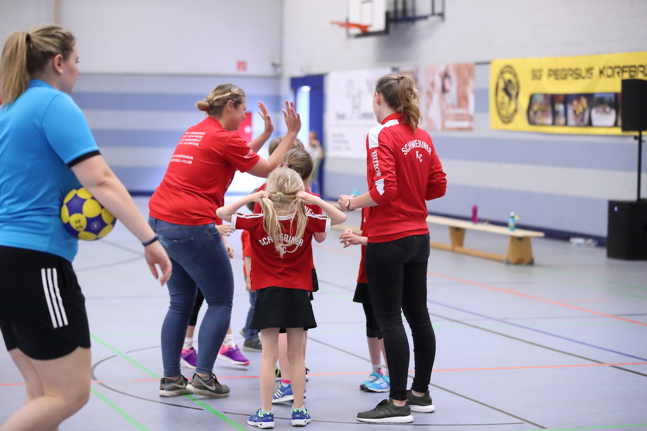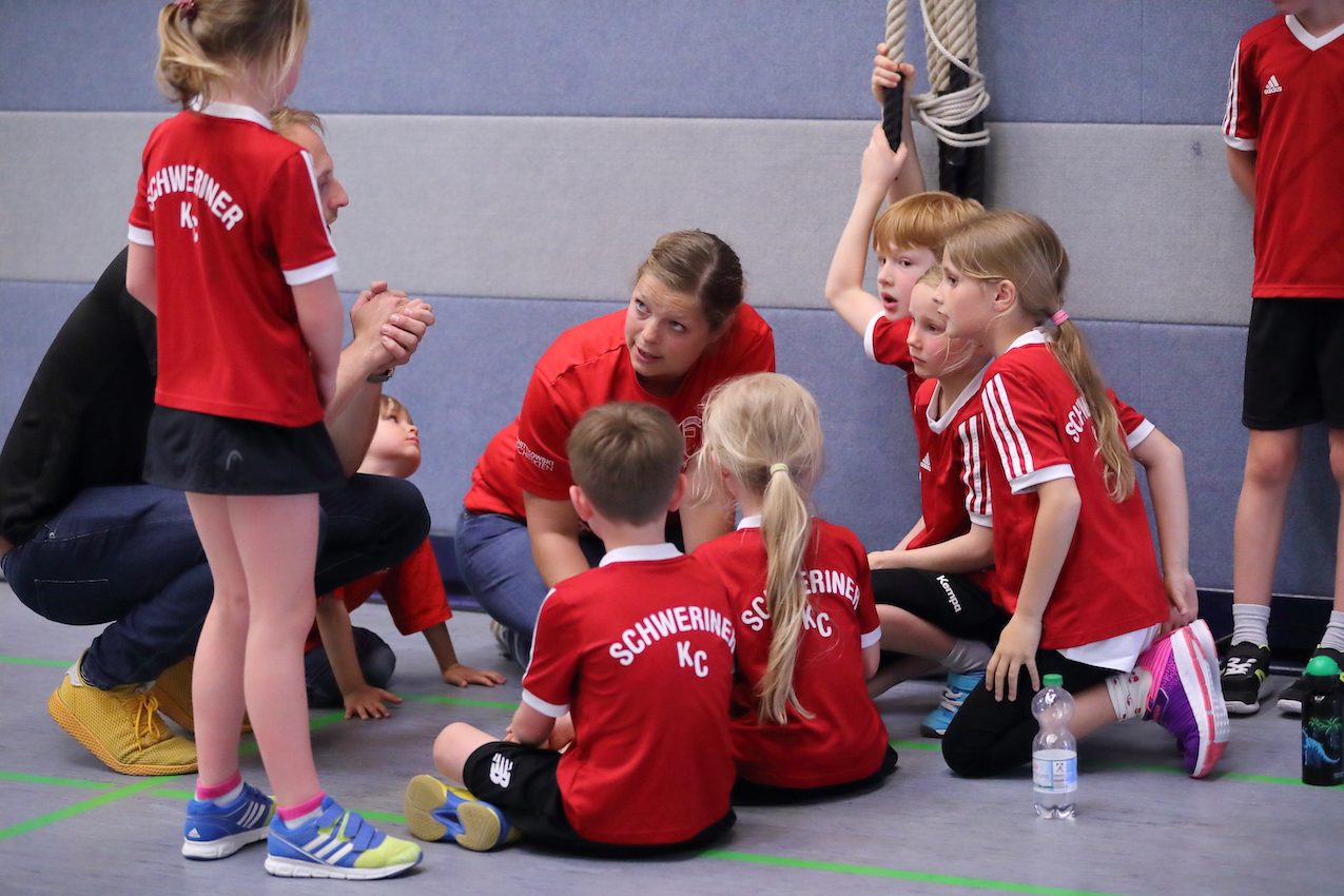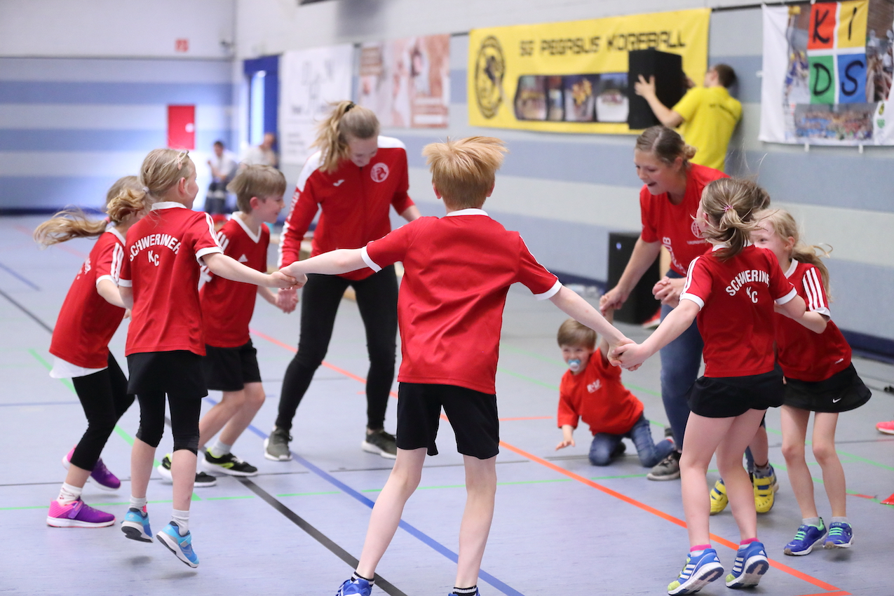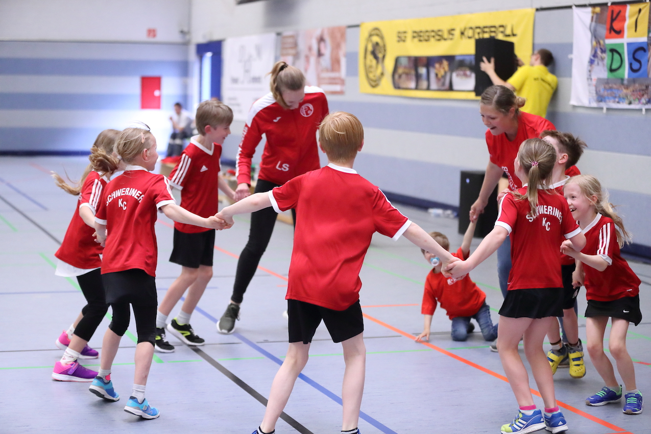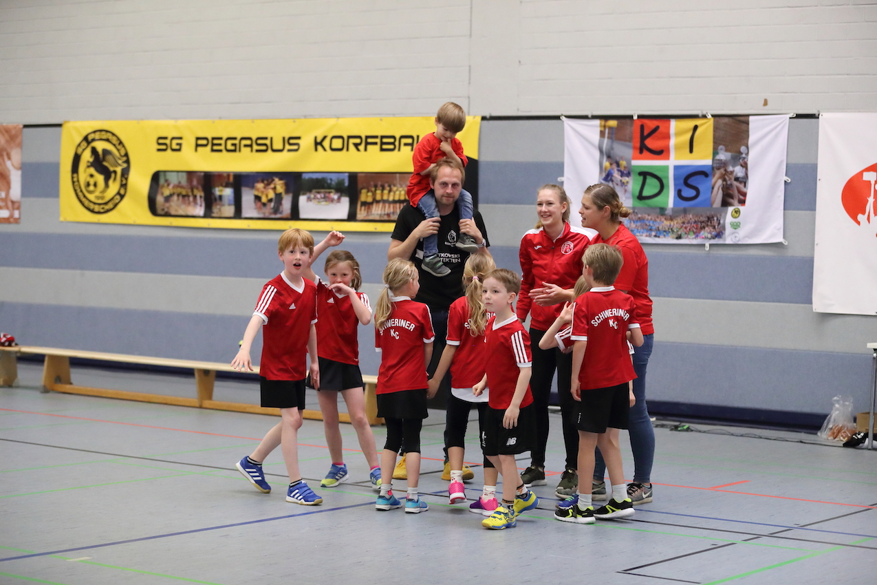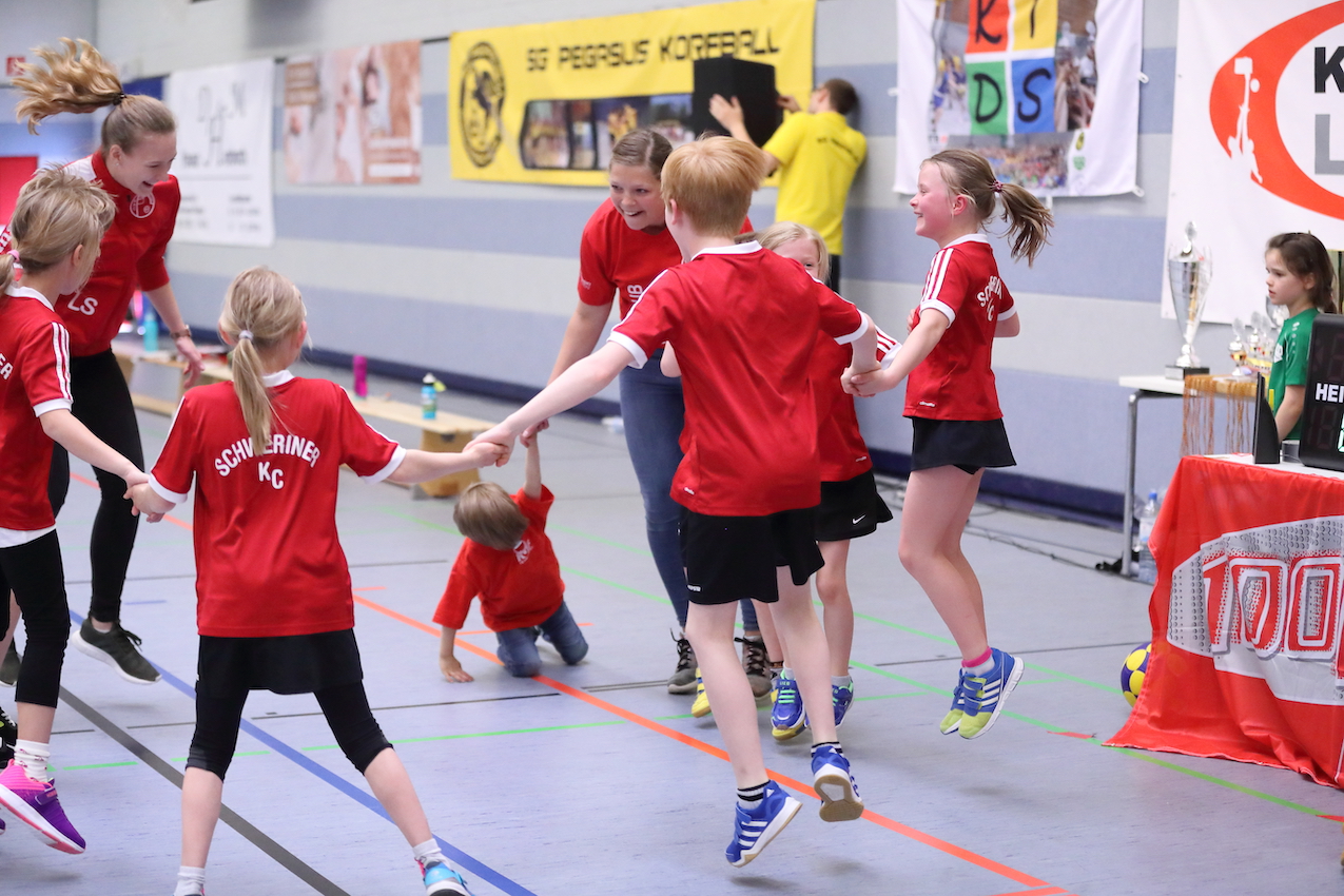Am 18.05.2019 fand der Deutsche Jugend Cup 2019 statt. Vom Schweriner KC war unter anderem die F-Jugend dabei und kämpfte als WTB-Meister um die deutsche Meisterschaft. In der F-Jugend wird zunächst ein Halbfinale zwischen dem WTB-Meister und dem RTB-Vizemeister und umgekehrt ausgetragen bevor es zum Finale um die deutsche Meisterschaft geht. Der erste Gegner unserer F-Jugend war mit dem RTB-Vizemeister die zweite F-Jugend Mannschaft vom TUS Schildgen. Im ersten Spiel zeigte unsere F-Jugend eine deutliche Dominanz und sieht hoch mit 12:1 aus Schweriner Sicht. Im Finale um die deutsche Meisterschaft gegen die erste F-Jugend Mannschaft des TUS Schildgen entstand ein spannendes und ausgeglichenes Spiel, das durch eine hohe Nervosität auf beiden Seiten geprägt war. Zum Ende der regulären Spielzeit stand mit 5:5 ein Unentschieden auf der Anzeigetafel. Es folgte ein Strafwurfwerfen, das die Schweriner für sich entscheiden konnten. Der Endstand ist 5:6 nach Strafwurfwerfen. Damit ist unsere F-Jugend verdient Deutscher Meister 2019 geworden. (Fotos Gertrude de Vries/Marco Spelten, korfballfoto.de)