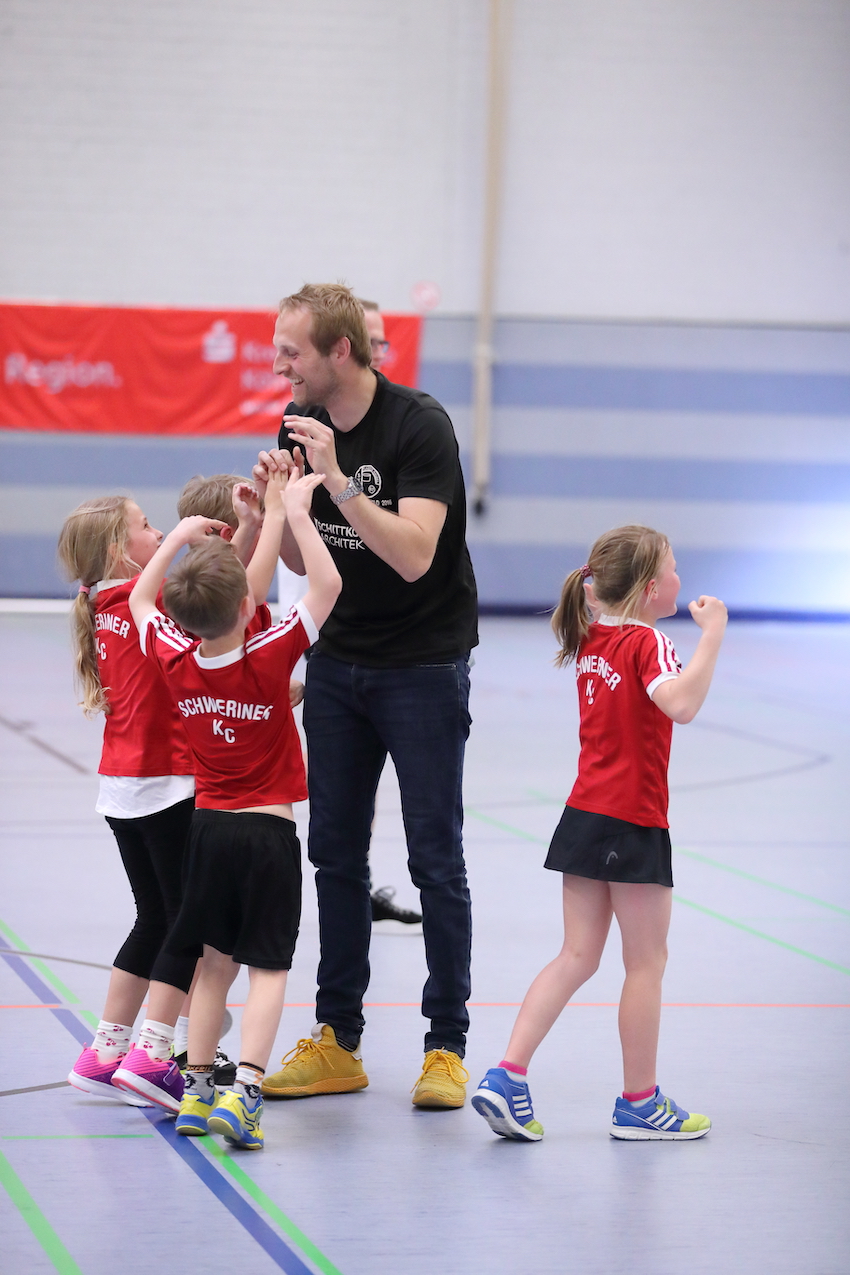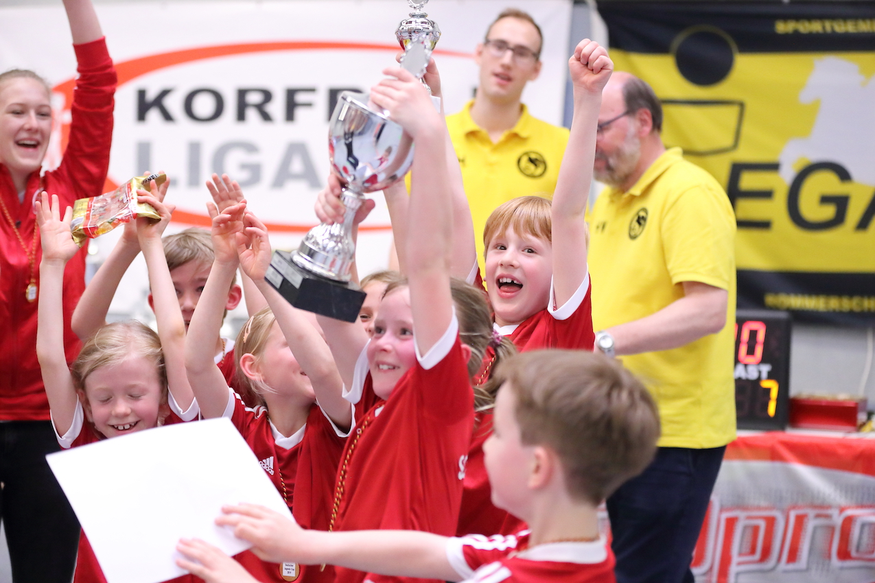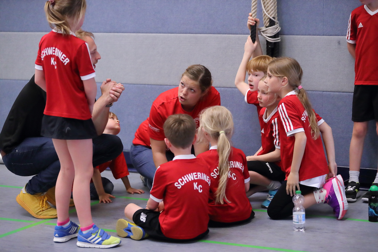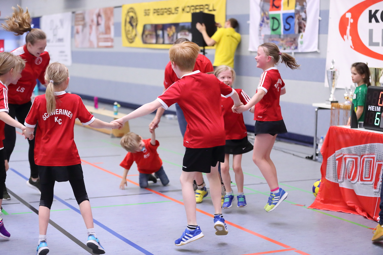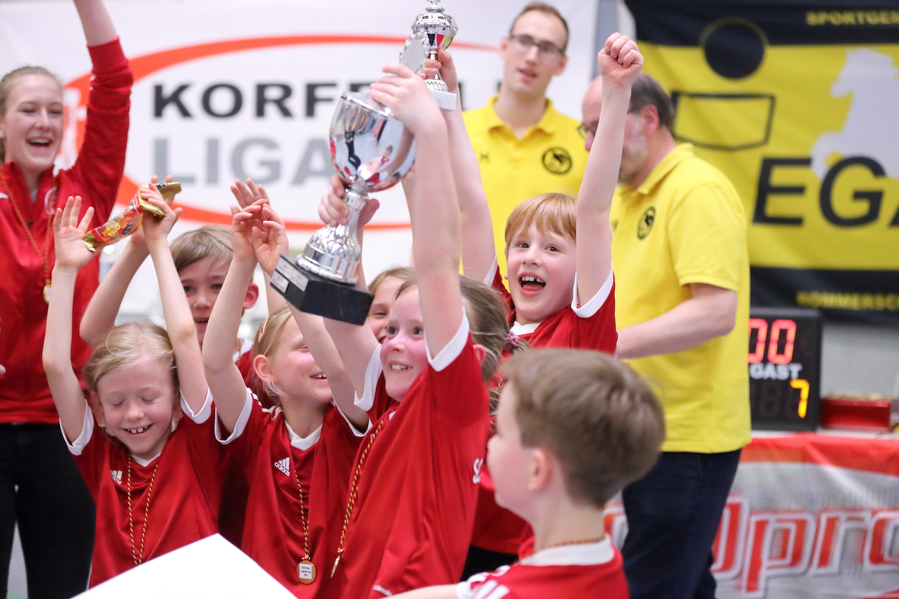 Am 18.05.2019 fand der Deutsche Jugend Cup 2019 statt. Vom Schweriner KC war unter anderem die F-Jugend dabei und kämpfte als WTB-Meister um die deutsche Meisterschaft. In der F-Jugend wird zunächst ein Halbfinale zwischen dem WTB-Meister und dem RTB-Vizemeister und umgekehrt ausgetragen bevor es zum Finale um die deutsche Meisterschaft geht. Der erste Gegner unserer F-Jugend war mit dem RTB-Vizemeister die zweite F-Jugend Mannschaft vom TUS Schildgen. Im ersten Spiel zeigte unsere F-Jugend eine deutliche Dominanz und sieht hoch mit 12:1 aus Schweriner Sicht. Im Finale um die deutsche Meisterschaft gegen die erste F-Jugend Mannschaft des TUS Schildgen entstand ein spannendes und ausgeglichenes Spiel, das durch eine hohe Nervosität auf beiden Seiten geprägt war. Zum Ende der regulären Spielzeit stand mit 5:5 ein Unentschieden auf der Anzeigetafel. Es folgte ein Strafwurfwerfen, das die Schweriner für sich entscheiden konnten. Der Endstand ist 5:6 nach Strafwurfwerfen. Damit ist unsere F-Jugend verdient Deutscher Meister 2019 geworden. (Fotos Gertrude de Vries/Marco Spelten, korfballfoto.de)
