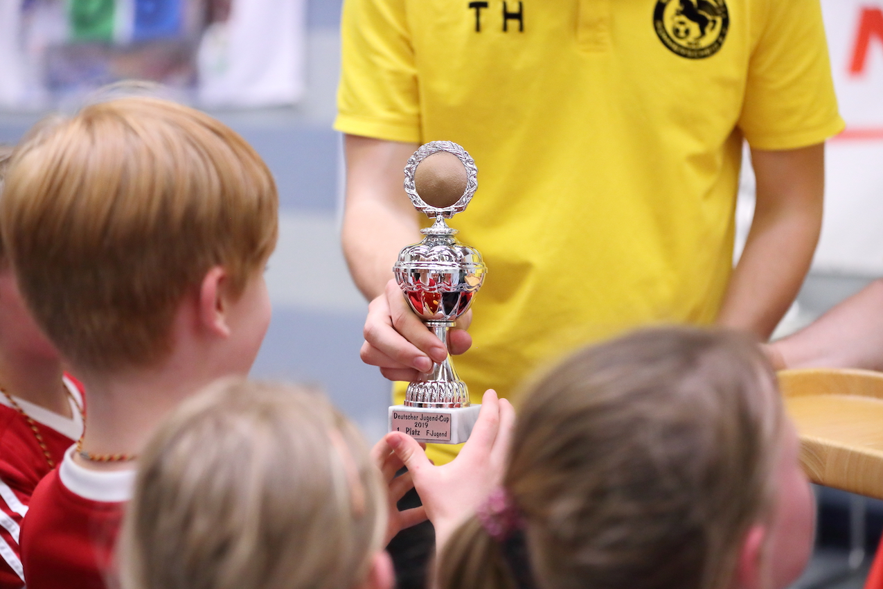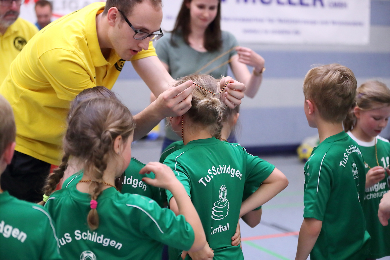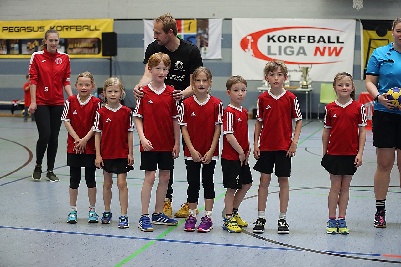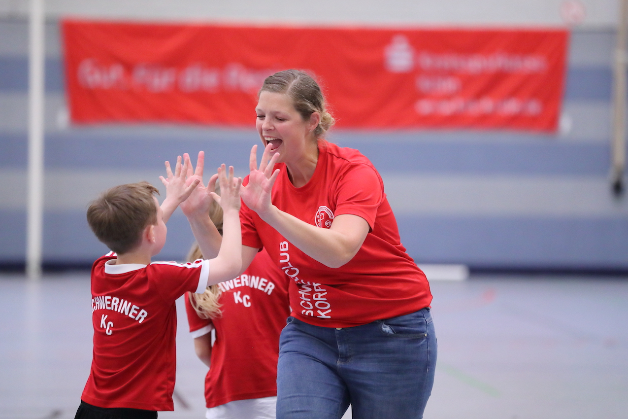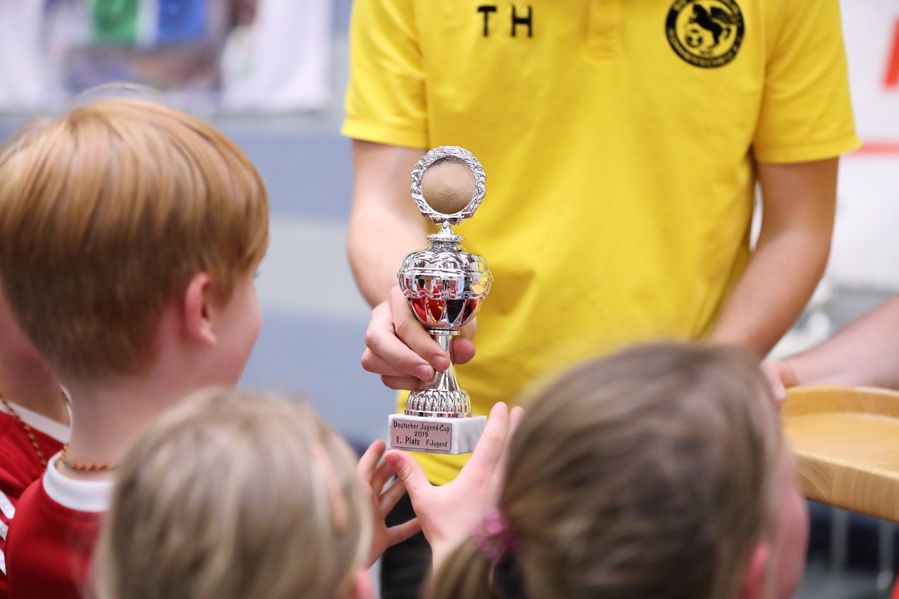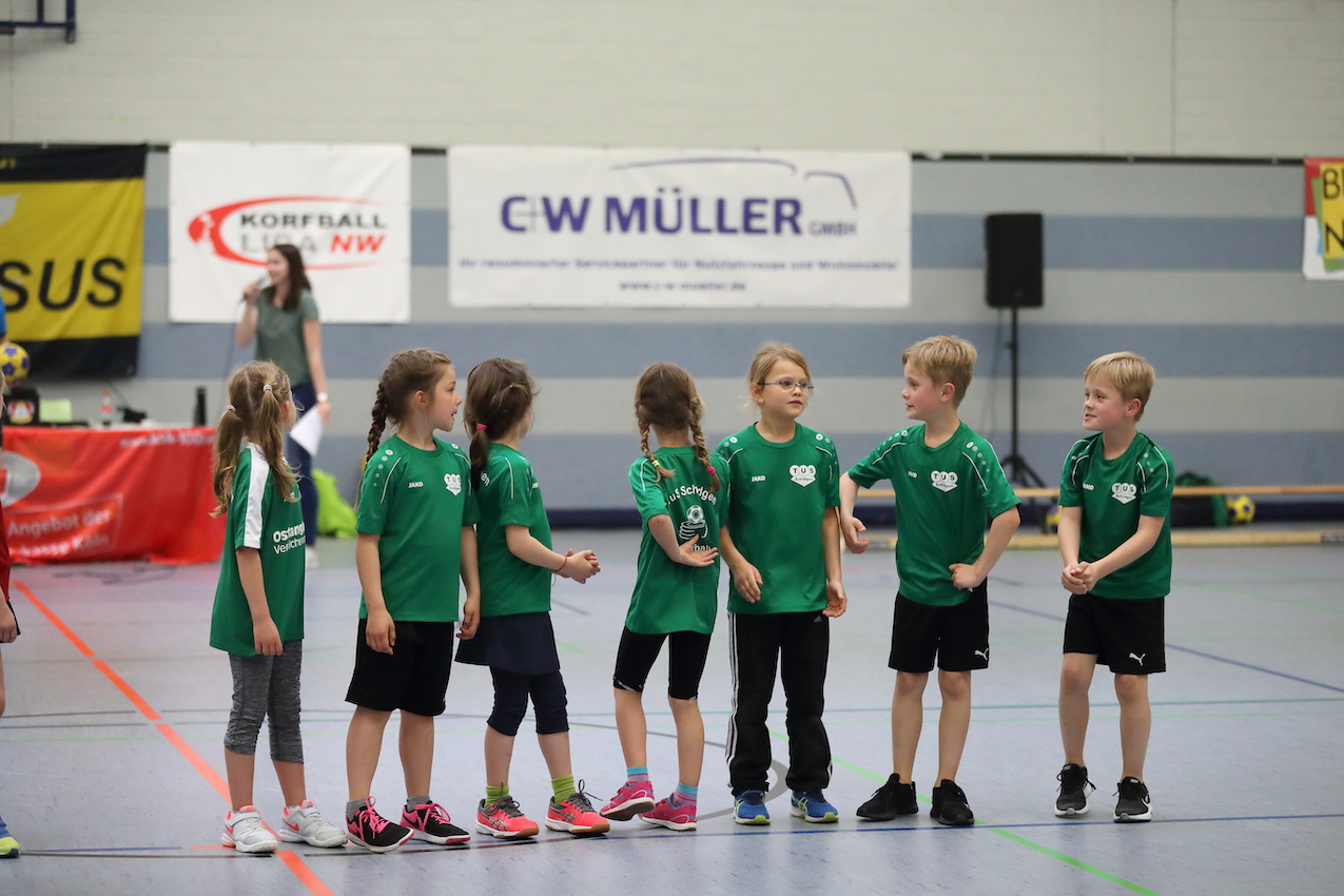 Am 18.05.2019 fand der Deutsche Jugend Cup 2019 statt. Vom Schweriner KC war unter anderem die F-Jugend dabei und kämpfte als WTB-Meister um die deutsche Meisterschaft. In der F-Jugend wird zunächst ein Halbfinale zwischen dem WTB-Meister und dem RTB-Vizemeister und umgekehrt ausgetragen bevor es zum Finale um die deutsche Meisterschaft geht. Der erste Gegner unserer F-Jugend war mit dem RTB-Vizemeister die zweite F-Jugend Mannschaft vom TUS Schildgen. Im ersten Spiel zeigte unsere F-Jugend eine deutliche Dominanz und sieht hoch mit 12:1 aus Schweriner Sicht. Im Finale um die deutsche Meisterschaft gegen die erste F-Jugend Mannschaft des TUS Schildgen entstand ein spannendes und ausgeglichenes Spiel, das durch eine hohe Nervosität auf beiden Seiten geprägt war. Zum Ende der regulären Spielzeit stand mit 5:5 ein Unentschieden auf der Anzeigetafel. Es folgte ein Strafwurfwerfen, das die Schweriner für sich entscheiden konnten. Der Endstand ist 5:6 nach Strafwurfwerfen. Damit ist unsere F-Jugend verdient Deutscher Meister 2019 geworden. (Fotos Gertrude de Vries/Marco Spelten, korfballfoto.de)