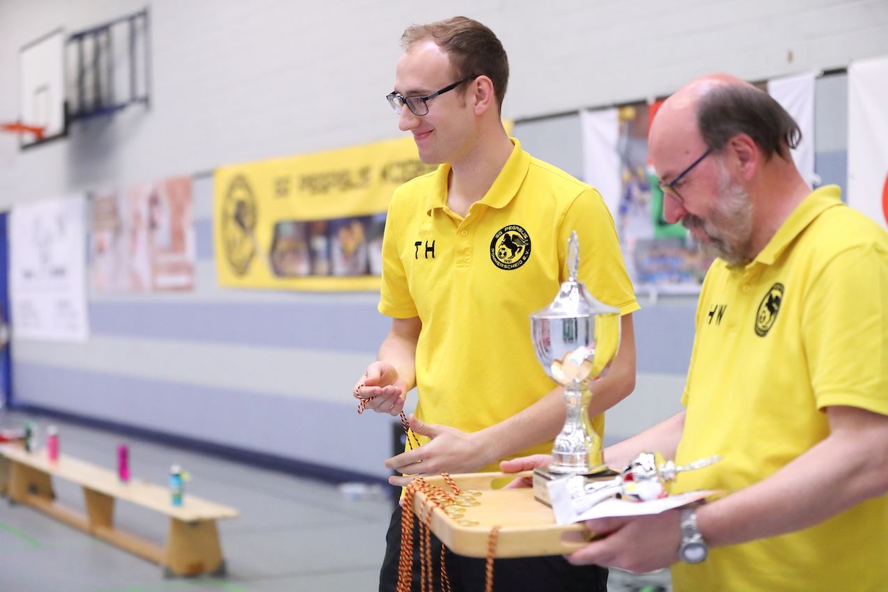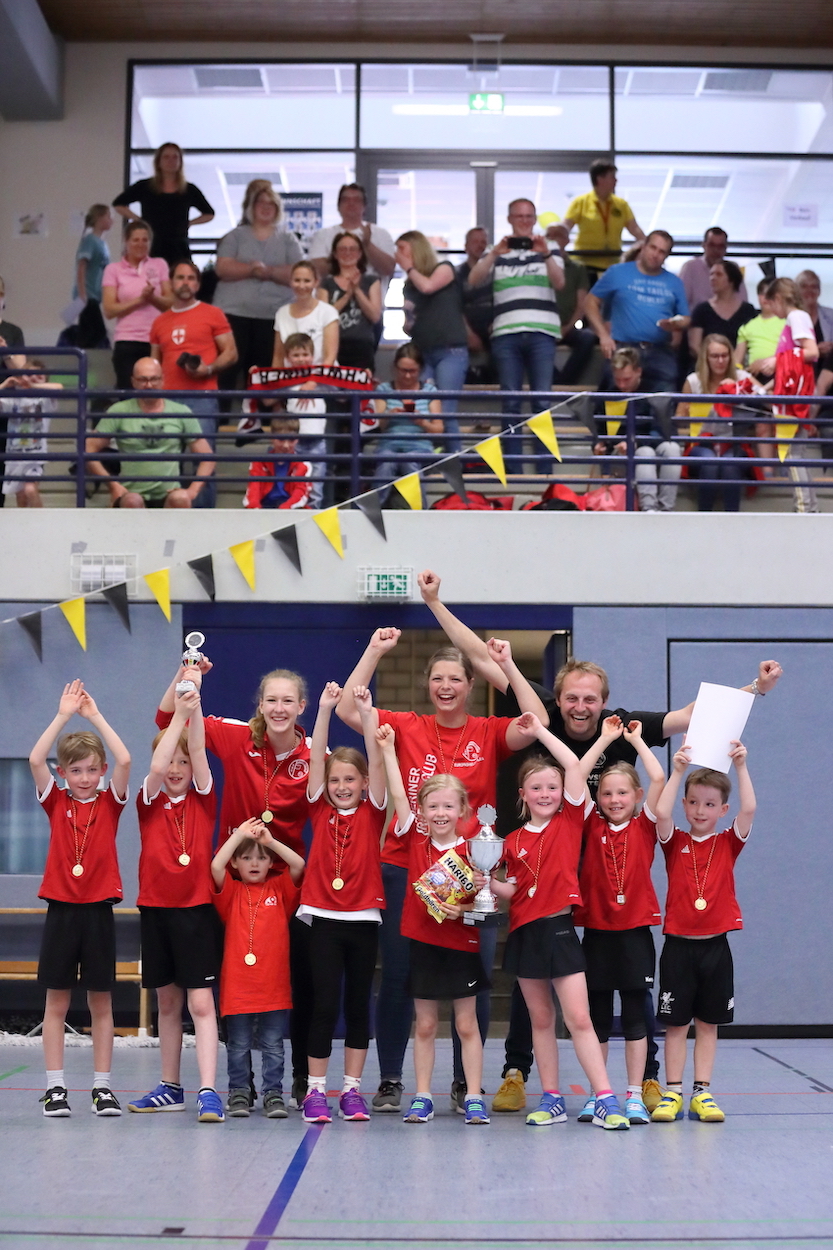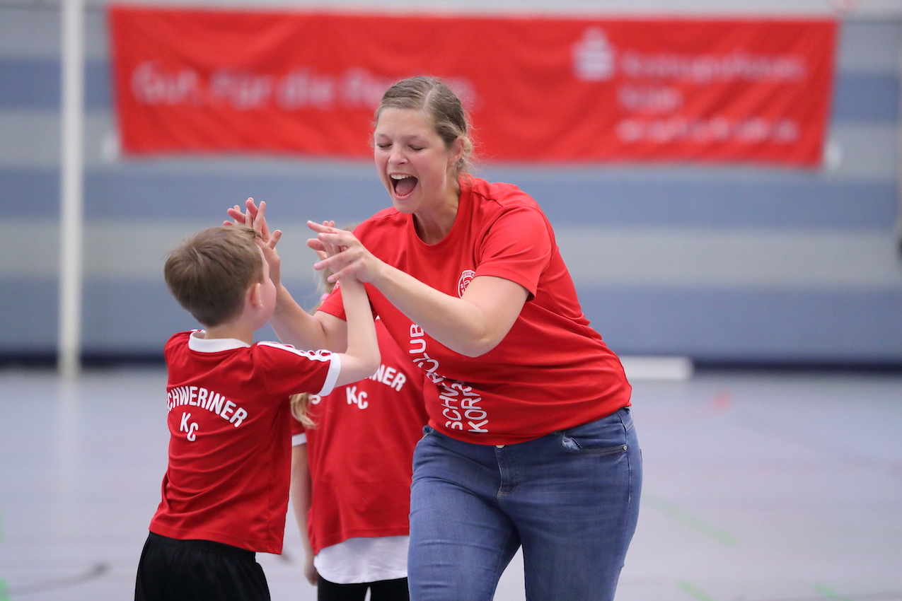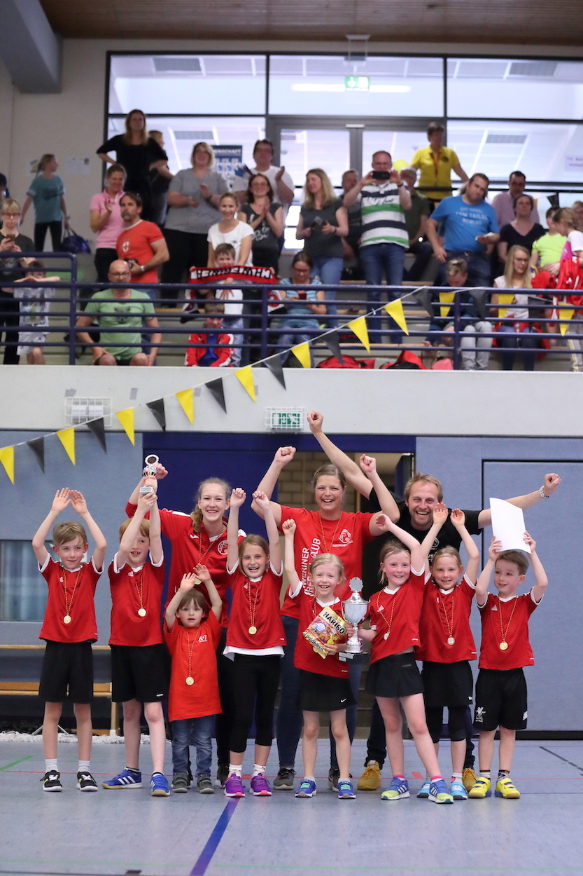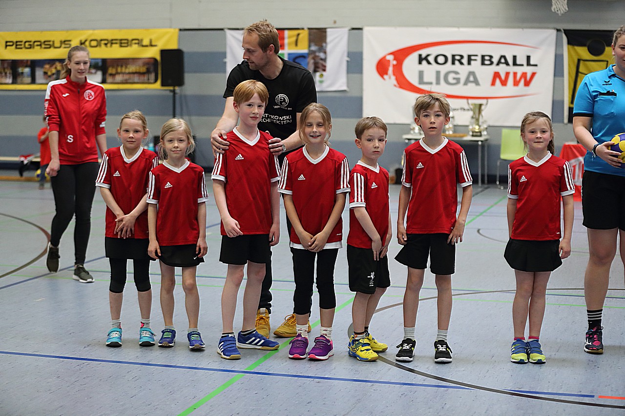 Am 18.05.2019 fand der Deutsche Jugend Cup 2019 statt. Vom Schweriner KC war unter anderem die F-Jugend dabei und kämpfte als WTB-Meister um die deutsche Meisterschaft. In der F-Jugend wird zunächst ein Halbfinale zwischen dem WTB-Meister und dem RTB-Vizemeister und umgekehrt ausgetragen bevor es zum Finale um die deutsche Meisterschaft geht. Der erste Gegner unserer F-Jugend war mit dem RTB-Vizemeister die zweite F-Jugend Mannschaft vom TUS Schildgen. Im ersten Spiel zeigte unsere F-Jugend eine deutliche Dominanz und sieht hoch mit 12:1 aus Schweriner Sicht. Im Finale um die deutsche Meisterschaft gegen die erste F-Jugend Mannschaft des TUS Schildgen entstand ein spannendes und ausgeglichenes Spiel, das durch eine hohe Nervosität auf beiden Seiten geprägt war. Zum Ende der regulären Spielzeit stand mit 5:5 ein Unentschieden auf der Anzeigetafel. Es folgte ein Strafwurfwerfen, das die Schweriner für sich entscheiden konnten. Der Endstand ist 5:6 nach Strafwurfwerfen. Damit ist unsere F-Jugend verdient Deutscher Meister 2019 geworden. (Fotos Gertrude de Vries/Marco Spelten, korfballfoto.de)