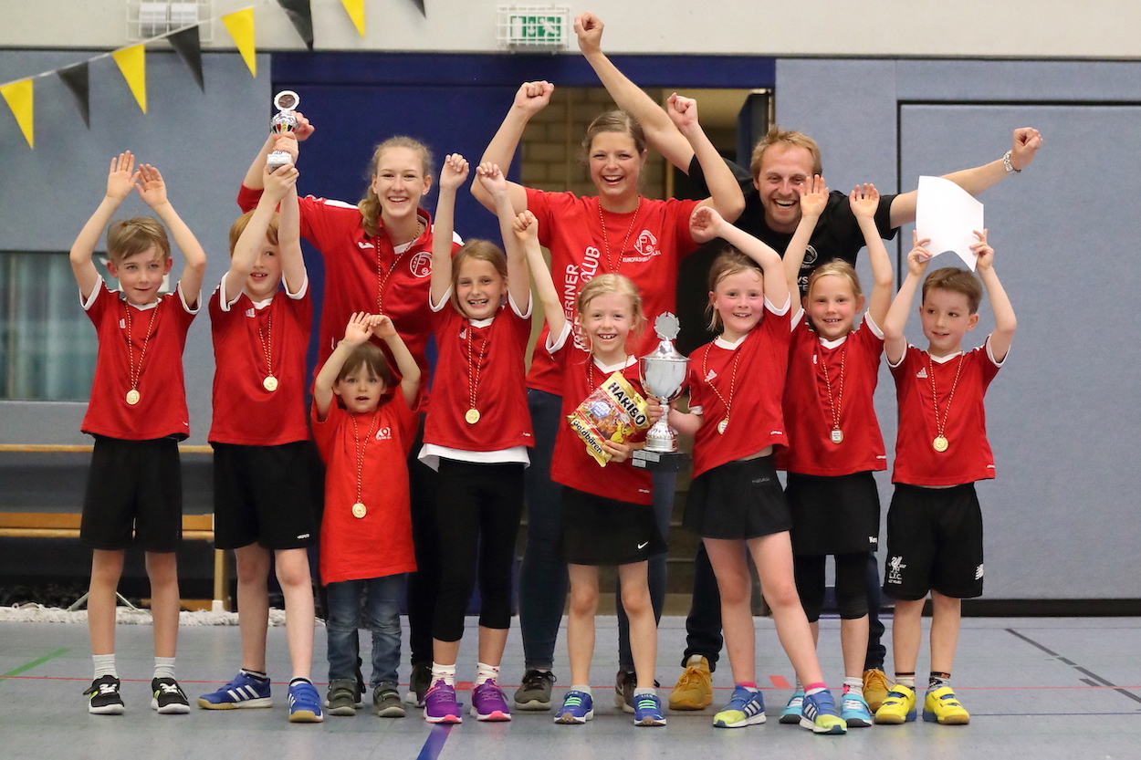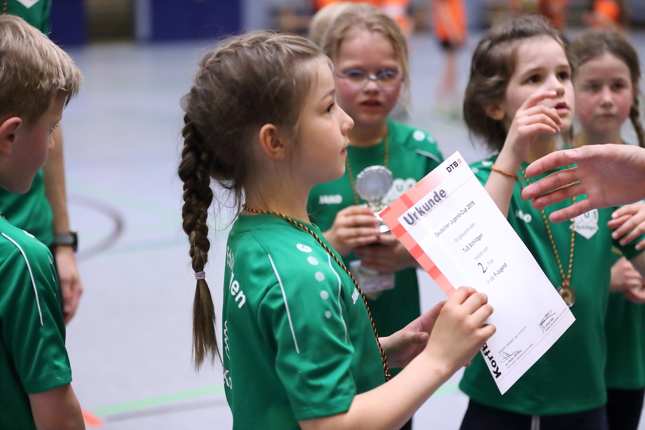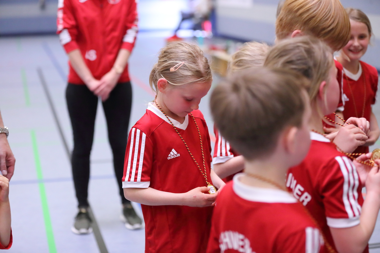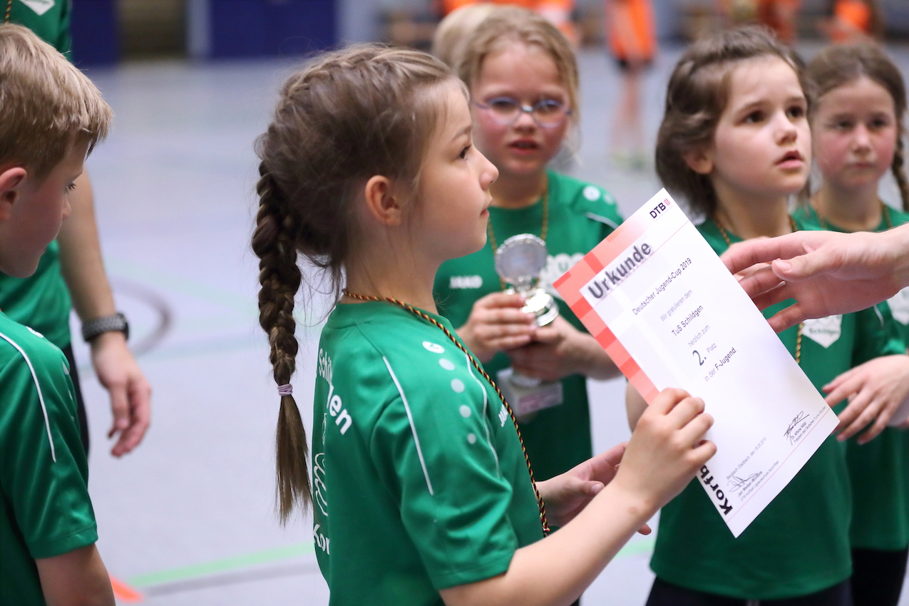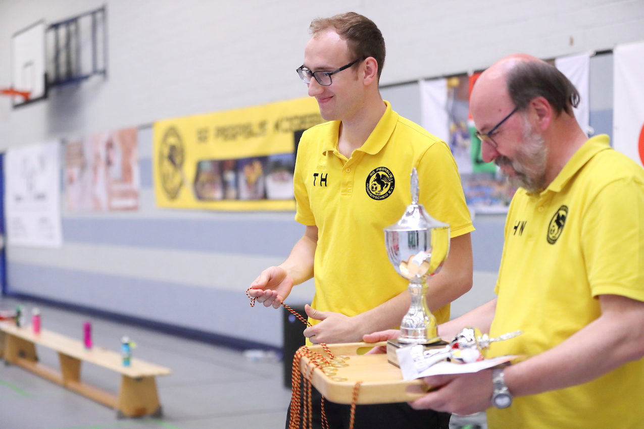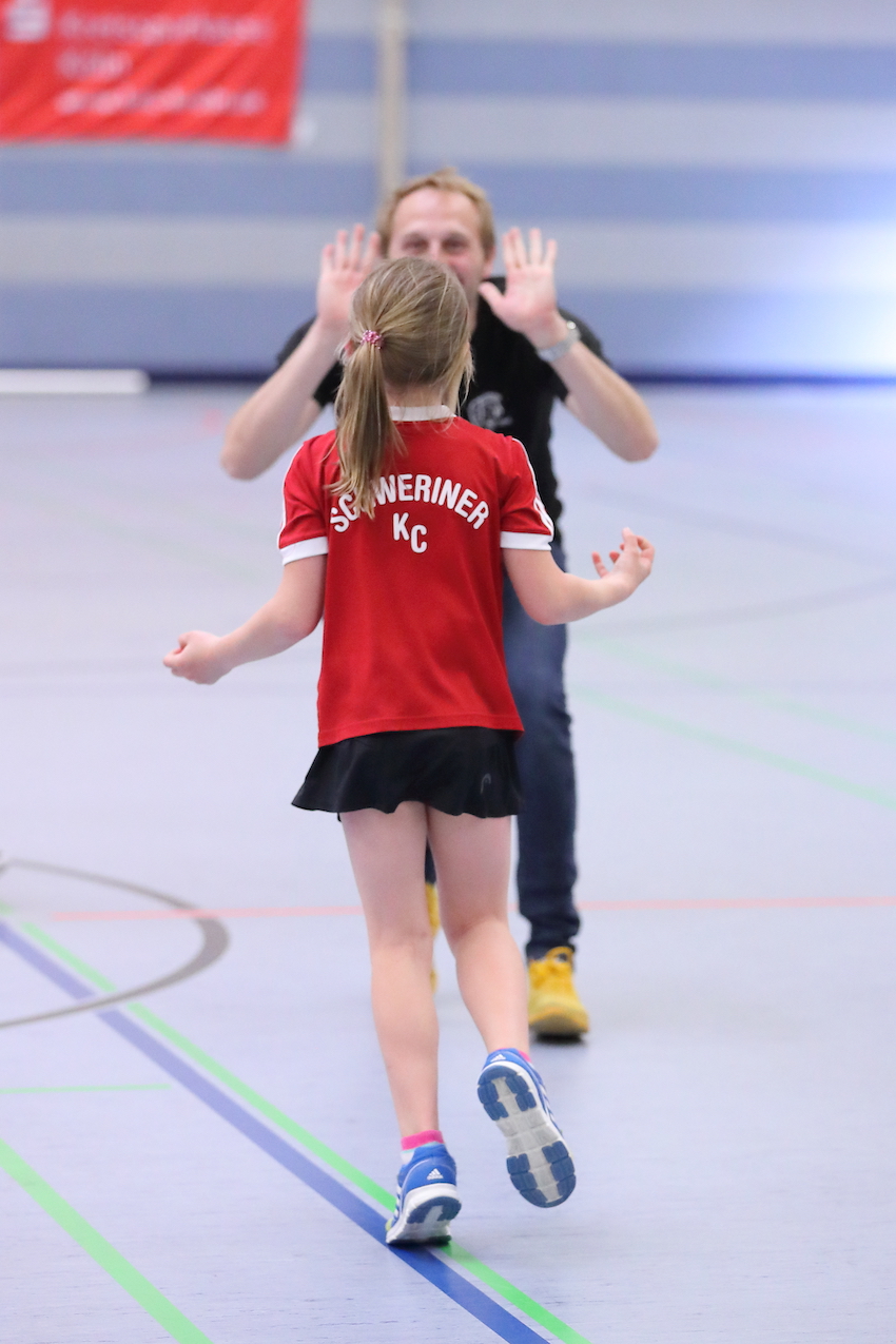 Am 18.05.2019 fand der Deutsche Jugend Cup 2019 statt. Vom Schweriner KC war unter anderem die F-Jugend dabei und kämpfte als WTB-Meister um die deutsche Meisterschaft. In der F-Jugend wird zunächst ein Halbfinale zwischen dem WTB-Meister und dem RTB-Vizemeister und umgekehrt ausgetragen bevor es zum Finale um die deutsche Meisterschaft geht. Der erste Gegner unserer F-Jugend war mit dem RTB-Vizemeister die zweite F-Jugend Mannschaft vom TUS Schildgen. Im ersten Spiel zeigte unsere F-Jugend eine deutliche Dominanz und sieht hoch mit 12:1 aus Schweriner Sicht. Im Finale um die deutsche Meisterschaft gegen die erste F-Jugend Mannschaft des TUS Schildgen entstand ein spannendes und ausgeglichenes Spiel, das durch eine hohe Nervosität auf beiden Seiten geprägt war. Zum Ende der regulären Spielzeit stand mit 5:5 ein Unentschieden auf der Anzeigetafel. Es folgte ein Strafwurfwerfen, das die Schweriner für sich entscheiden konnten. Der Endstand ist 5:6 nach Strafwurfwerfen. Damit ist unsere F-Jugend verdient Deutscher Meister 2019 geworden. (Fotos Gertrude de Vries/Marco Spelten, korfballfoto.de)