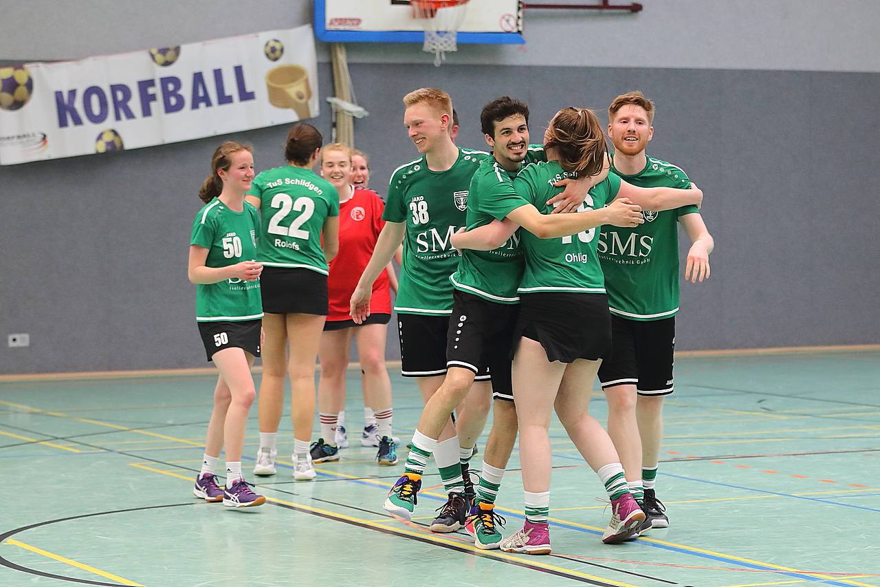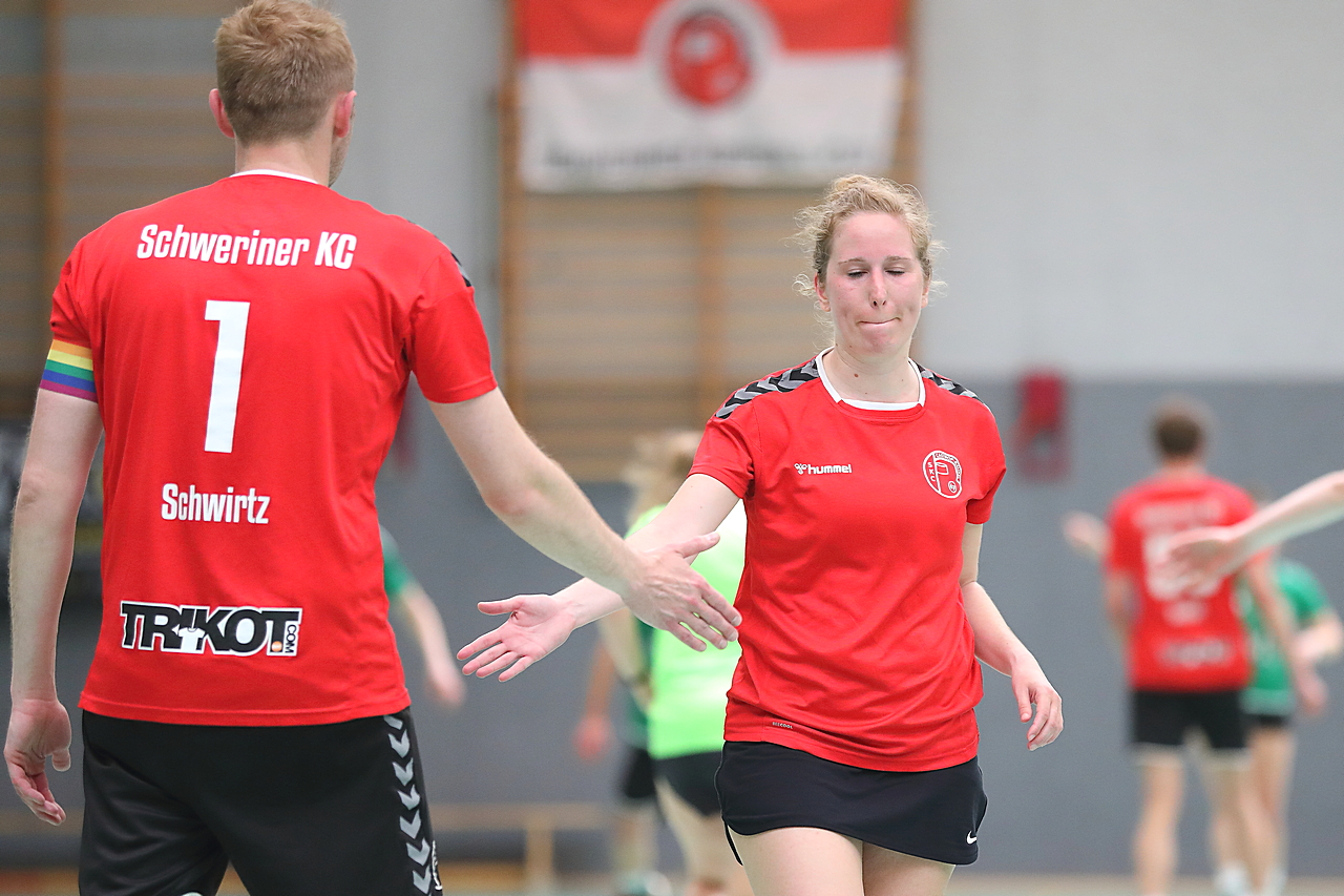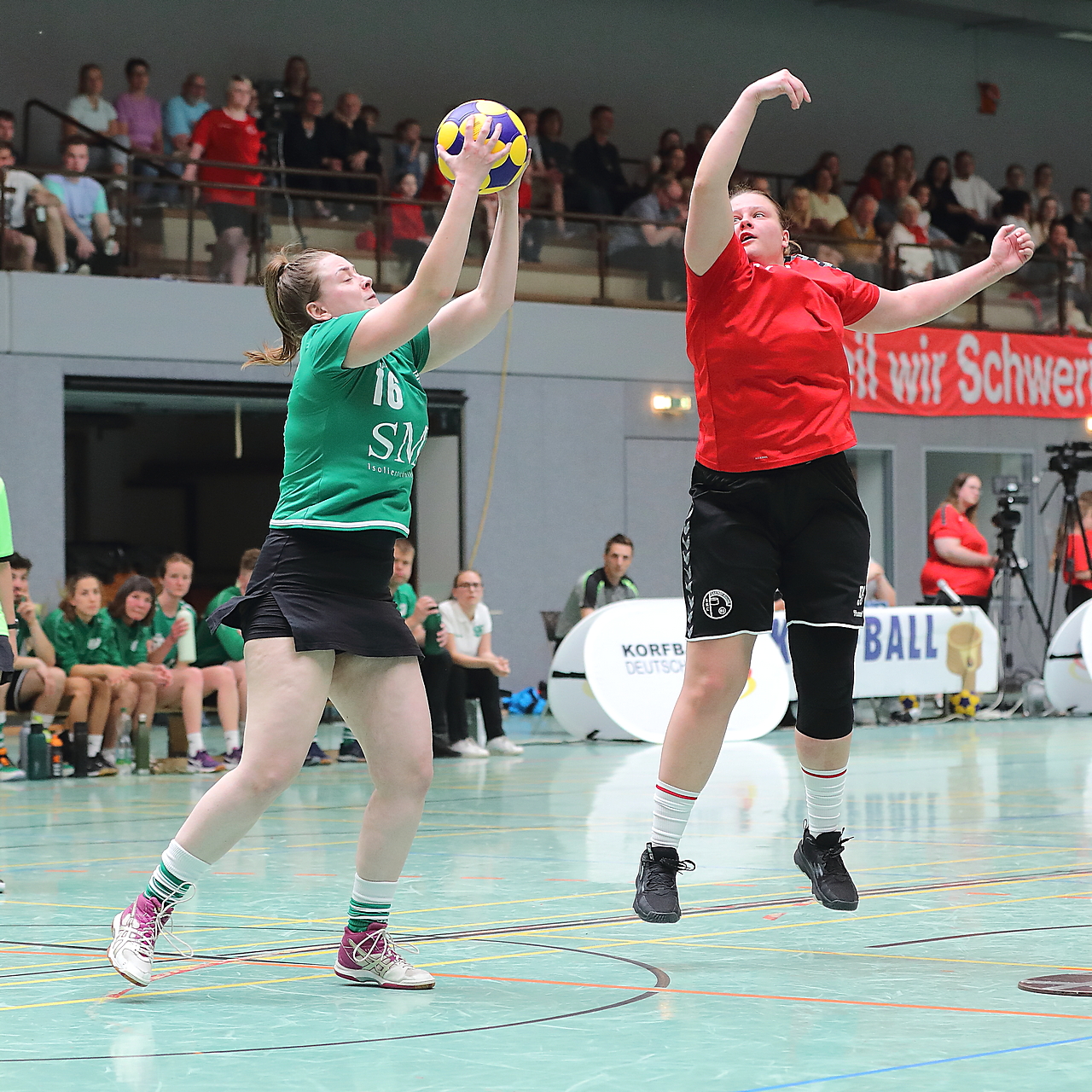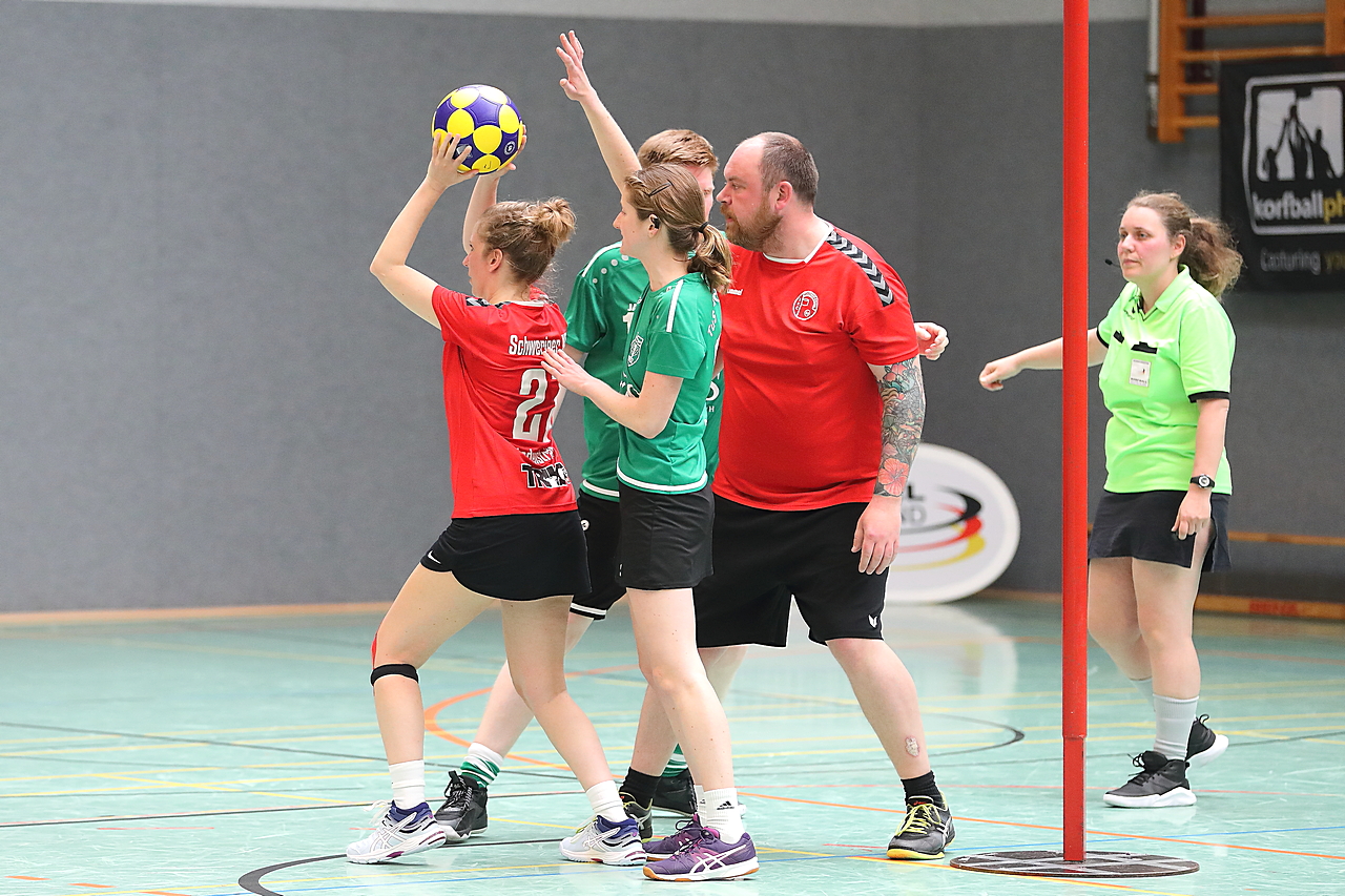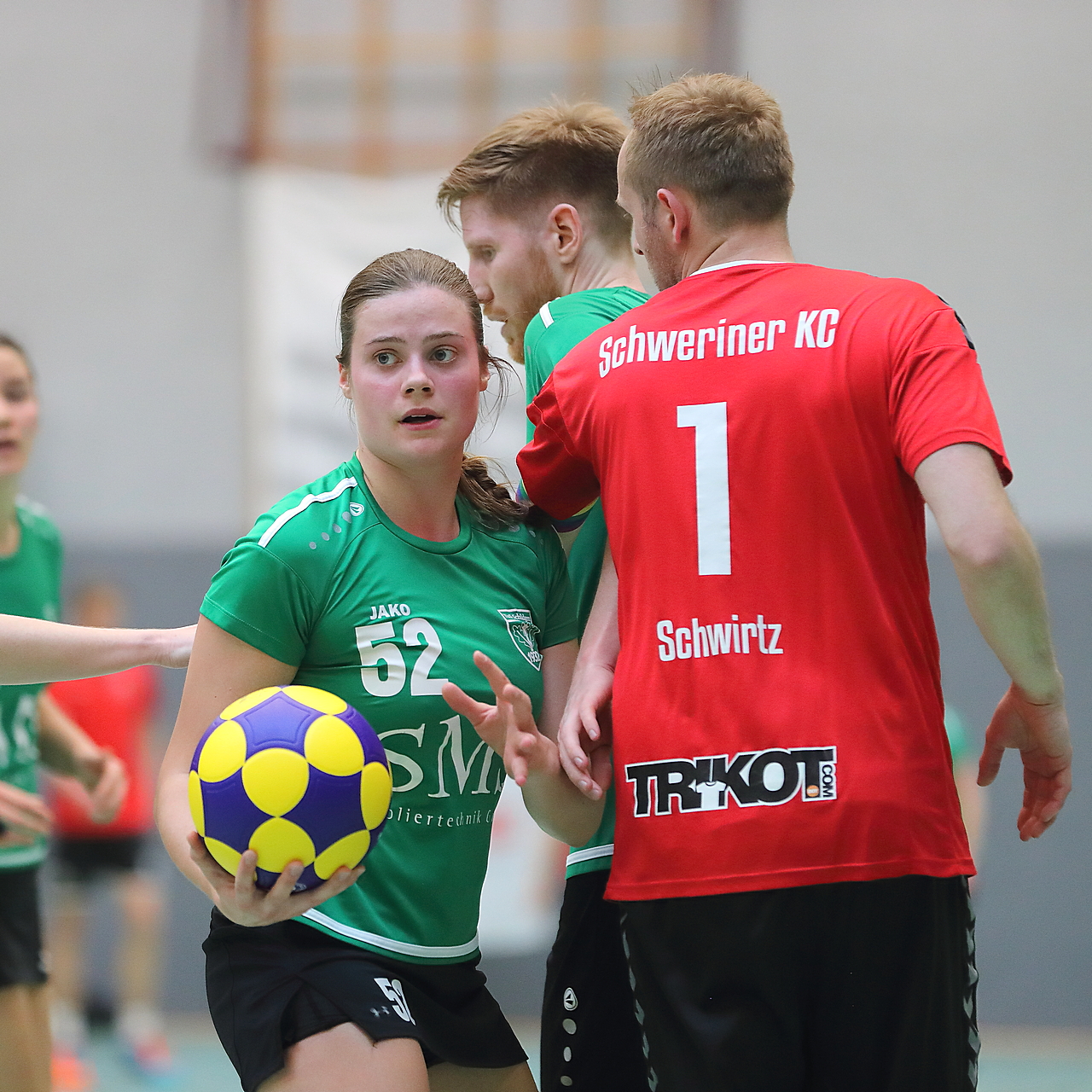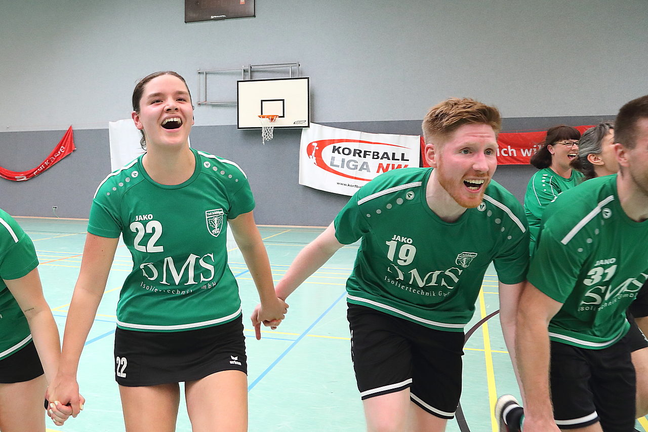 Am 13.05.2023 fanden die Finalspiele der Seniorenklasse statt. Vom Schweriner KC waren die erste und die dritte Mannschaft vertreten. In dieser Galerie werden die Fotos des Oberliga Finales Schildgen 3 gegen SKC 3 gezeigt. Das Spiel endete aus Schweriner Sicht mit einer unglücklichen Niederlage von 22:21 (Fotos Gertrude de Vries, korfballfoto.de)