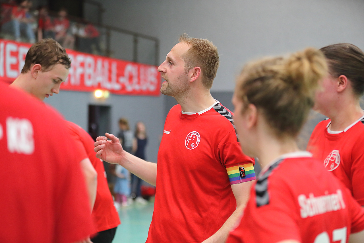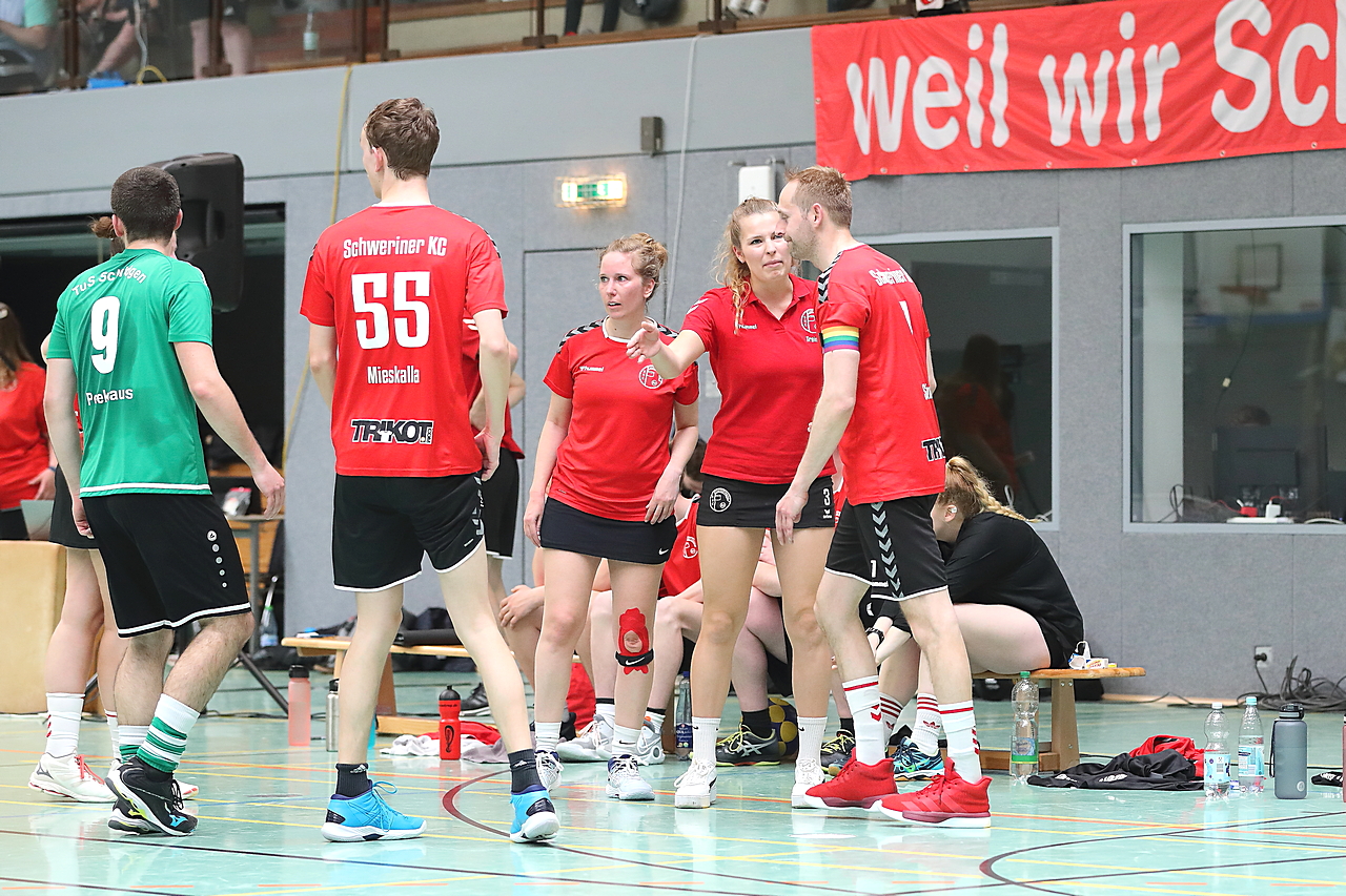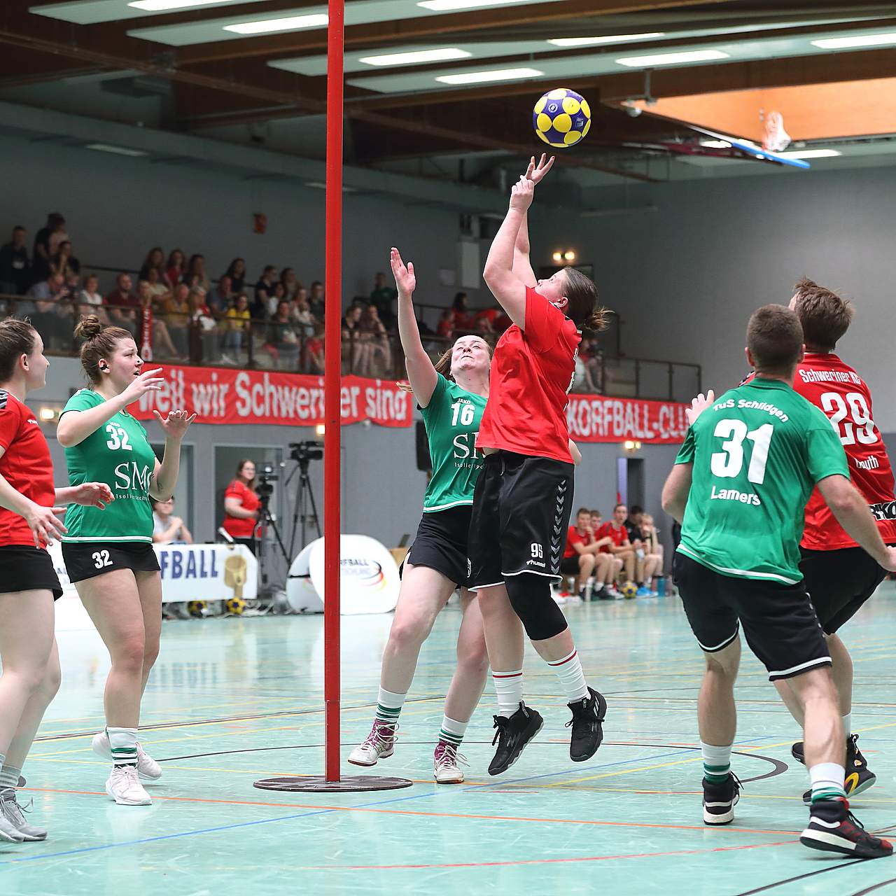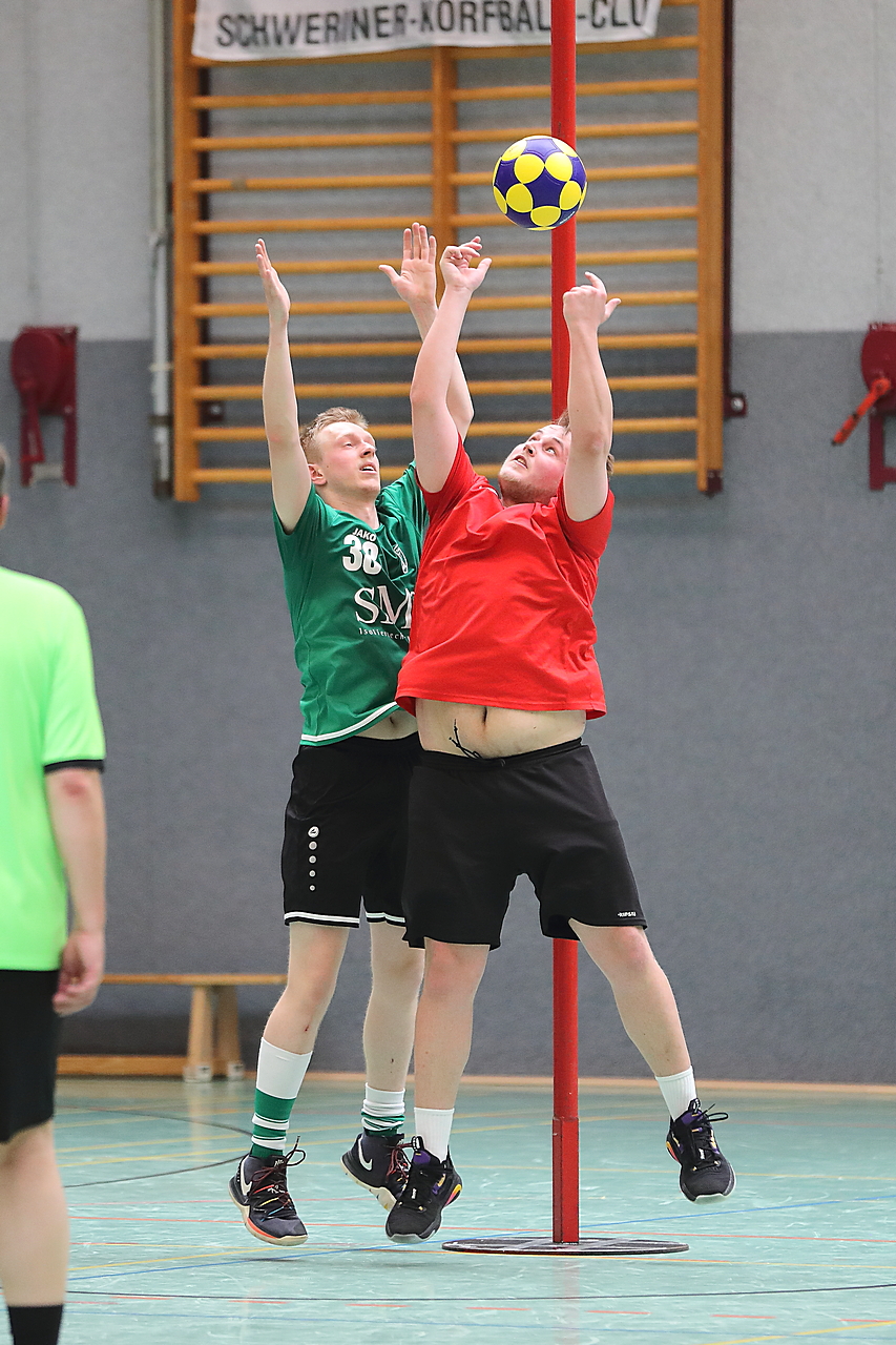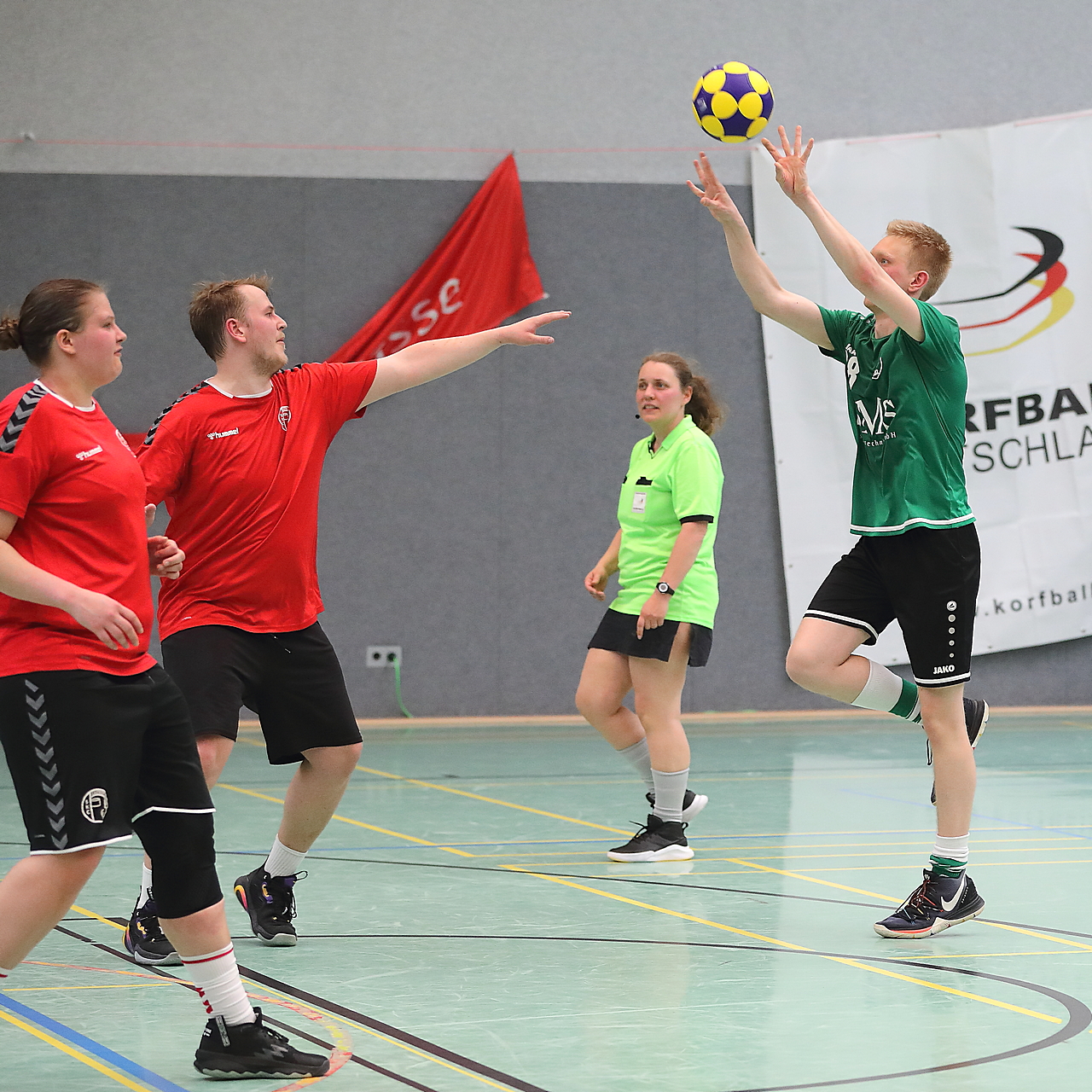 Am 13.05.2023 fanden die Finalspiele der Seniorenklasse statt. Vom Schweriner KC waren die erste und die dritte Mannschaft vertreten. In dieser Galerie werden die Fotos des Oberliga Finales Schildgen 3 gegen SKC 3 gezeigt. Das Spiel endete aus Schweriner Sicht mit einer unglücklichen Niederlage von 22:21 (Fotos Gertrude de Vries, korfballfoto.de)