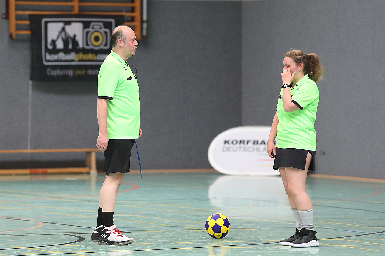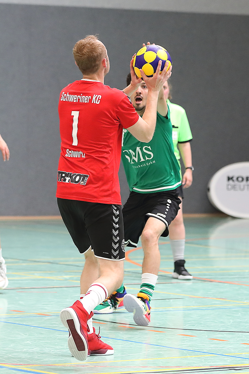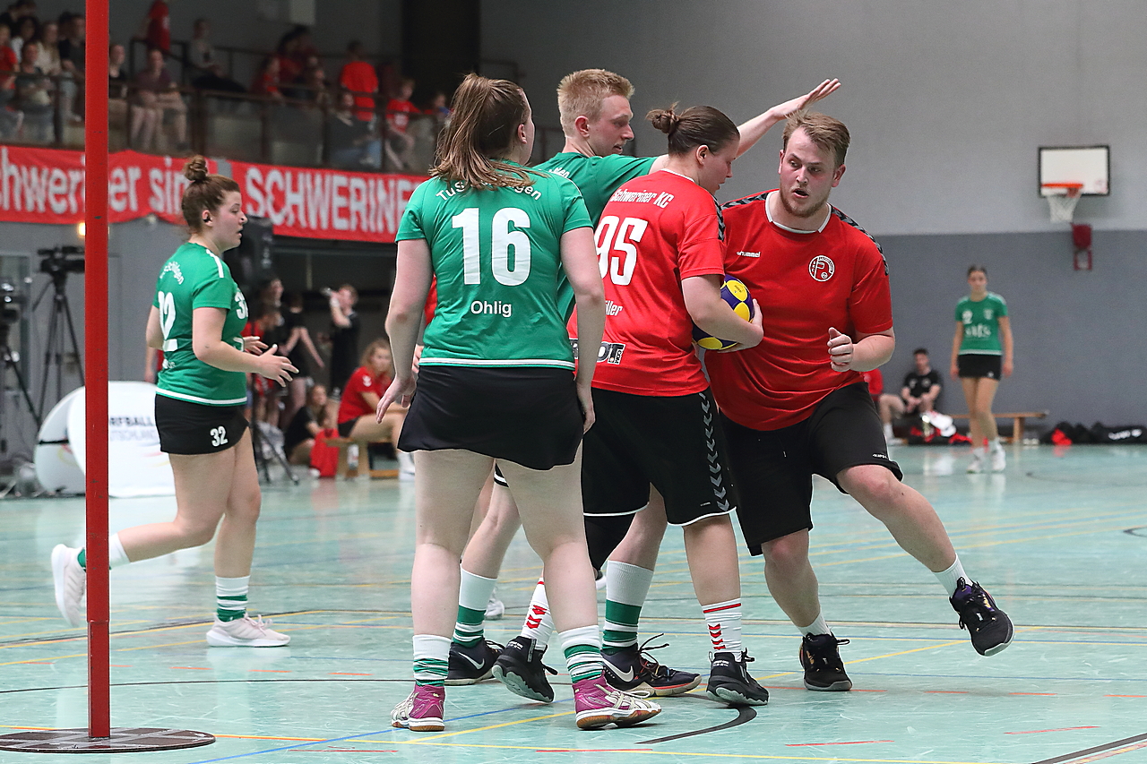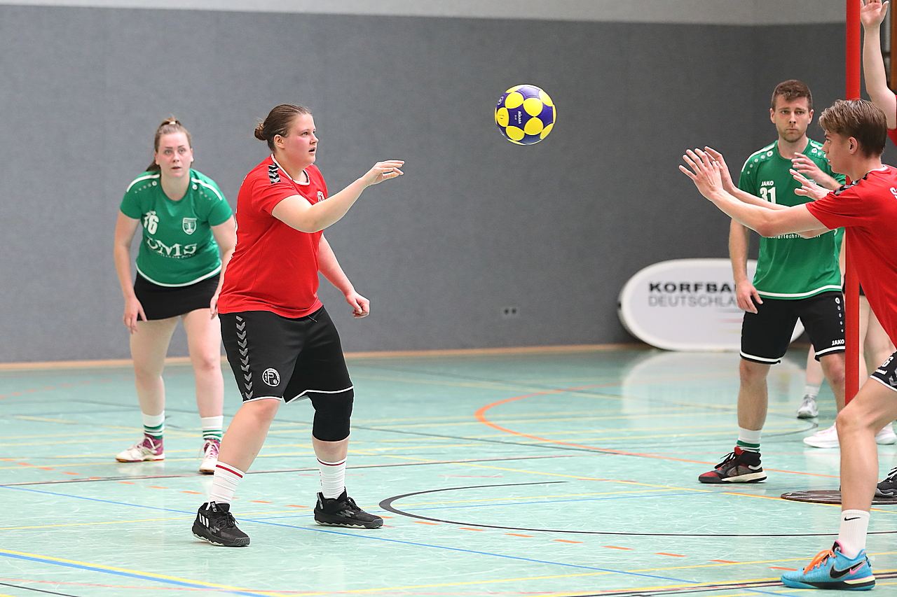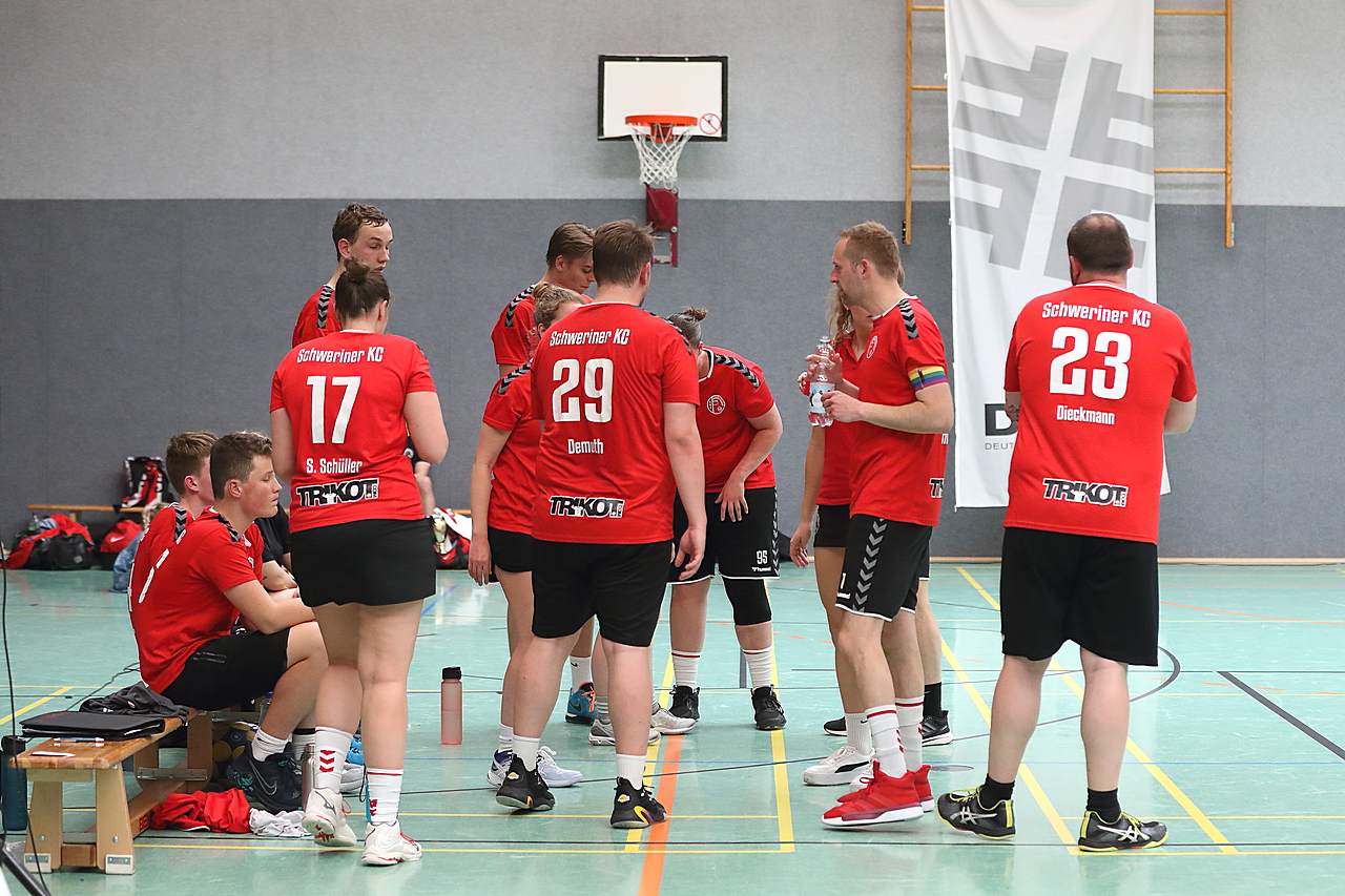 Am 13.05.2023 fanden die Finalspiele der Seniorenklasse statt. Vom Schweriner KC waren die erste und die dritte Mannschaft vertreten. In dieser Galerie werden die Fotos des Oberliga Finales Schildgen 3 gegen SKC 3 gezeigt. Das Spiel endete aus Schweriner Sicht mit einer unglücklichen Niederlage von 22:21 (Fotos Gertrude de Vries, korfballfoto.de)