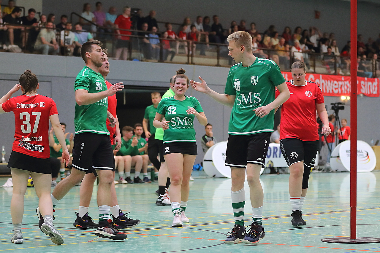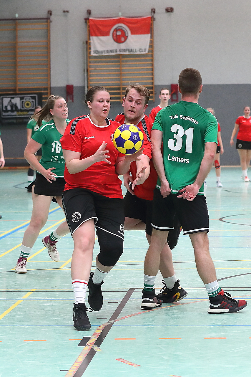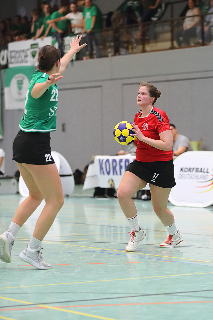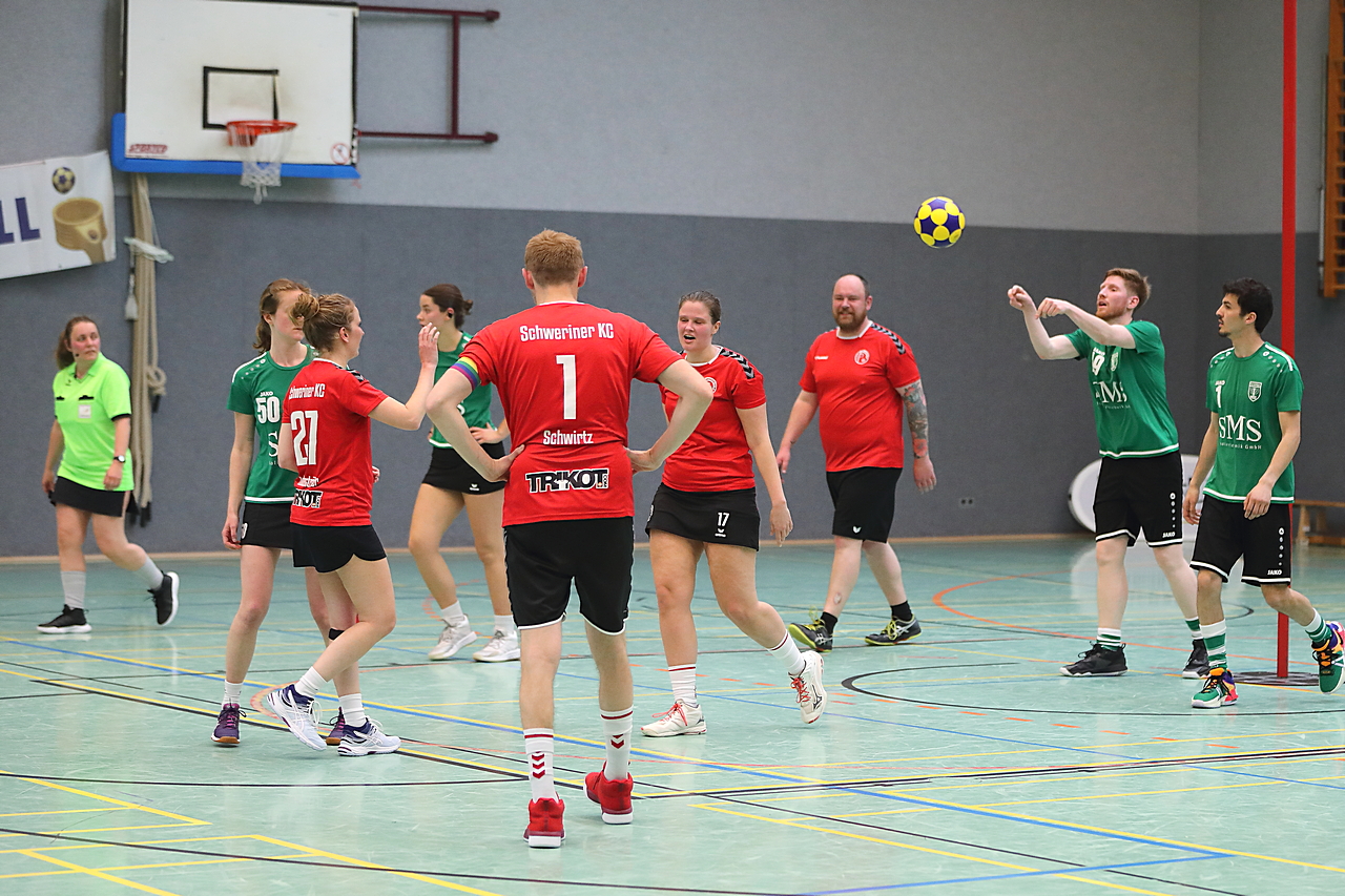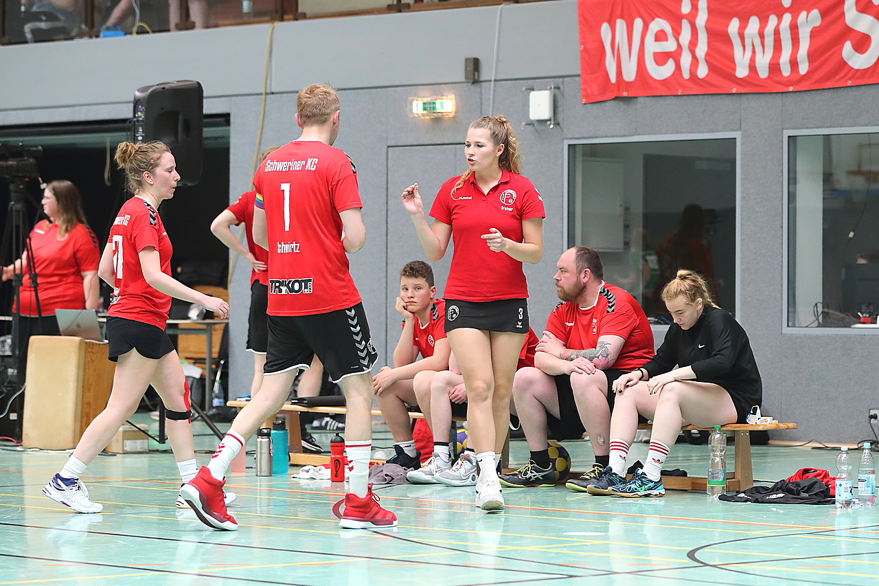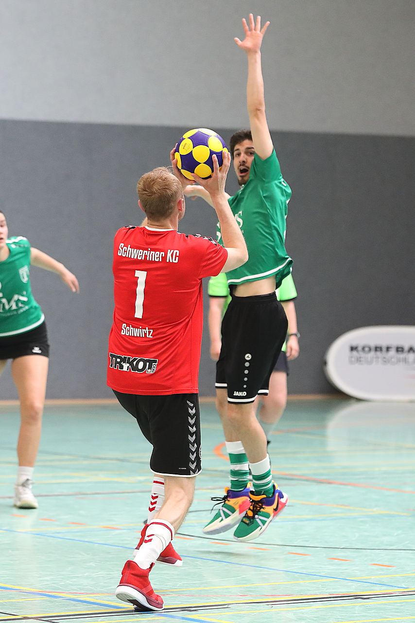 Am 13.05.2023 fanden die Finalspiele der Seniorenklasse statt. Vom Schweriner KC waren die erste und die dritte Mannschaft vertreten. In dieser Galerie werden die Fotos des Oberliga Finales Schildgen 3 gegen SKC 3 gezeigt. Das Spiel endete aus Schweriner Sicht mit einer unglücklichen Niederlage von 22:21 (Fotos Gertrude de Vries, korfballfoto.de)