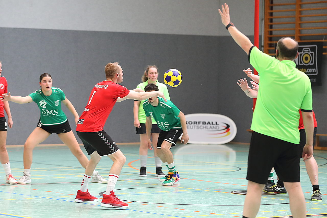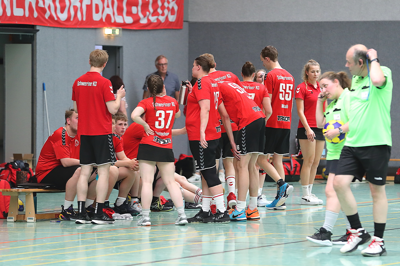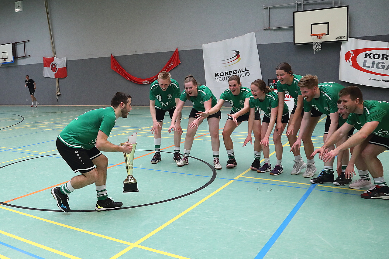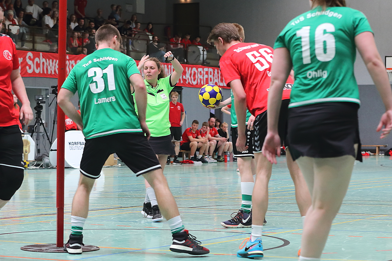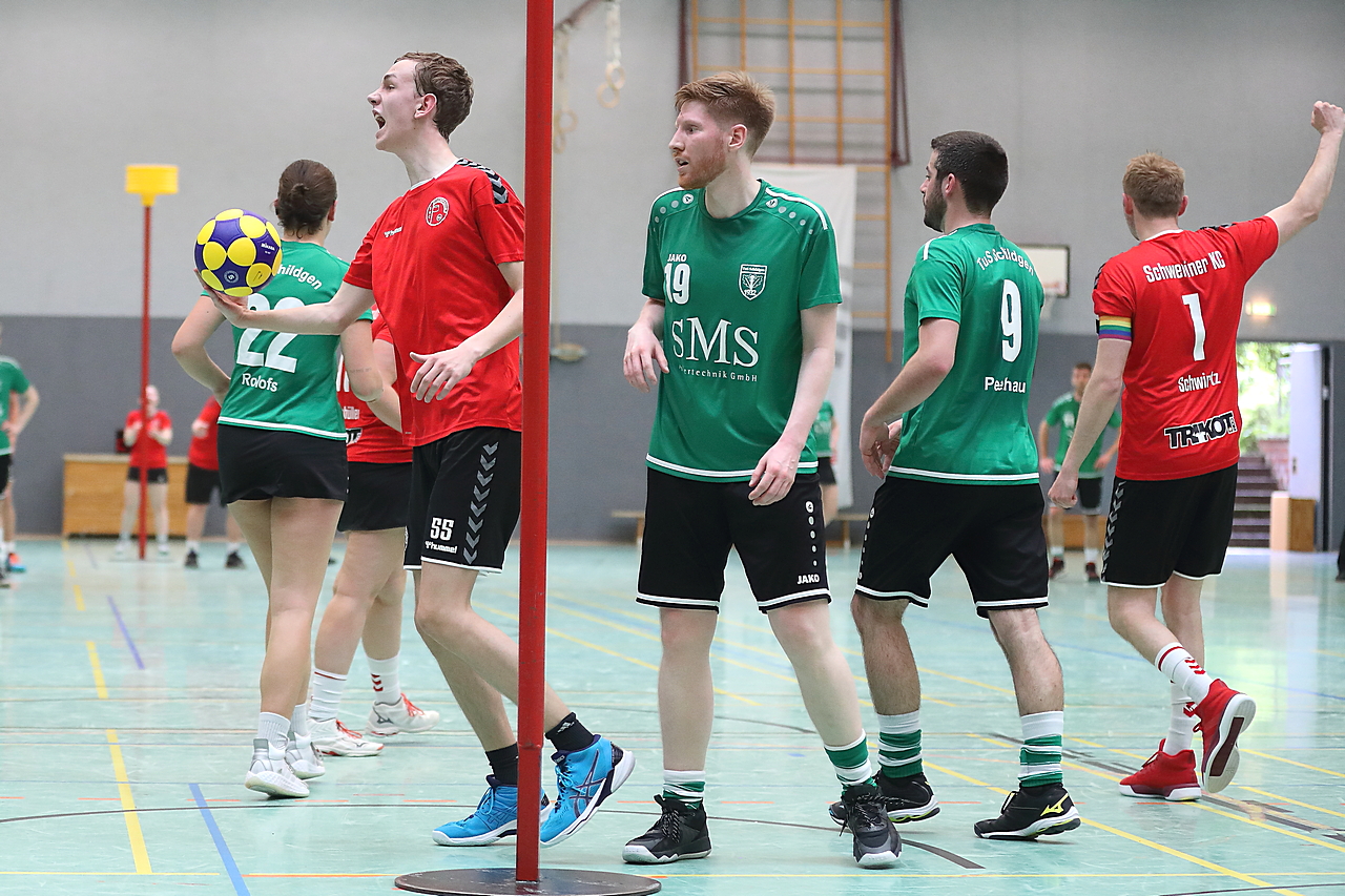 Am 13.05.2023 fanden die Finalspiele der Seniorenklasse statt. Vom Schweriner KC waren die erste und die dritte Mannschaft vertreten. In dieser Galerie werden die Fotos des Oberliga Finales Schildgen 3 gegen SKC 3 gezeigt. Das Spiel endete aus Schweriner Sicht mit einer unglücklichen Niederlage von 22:21 (Fotos Gertrude de Vries, korfballfoto.de)
