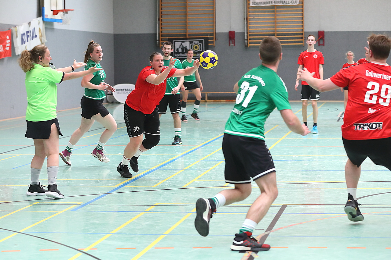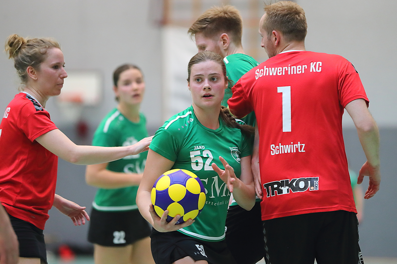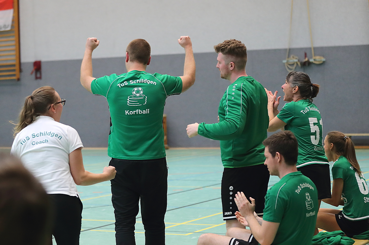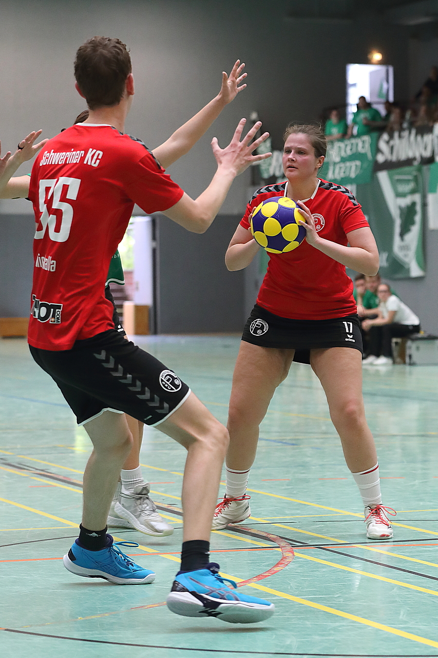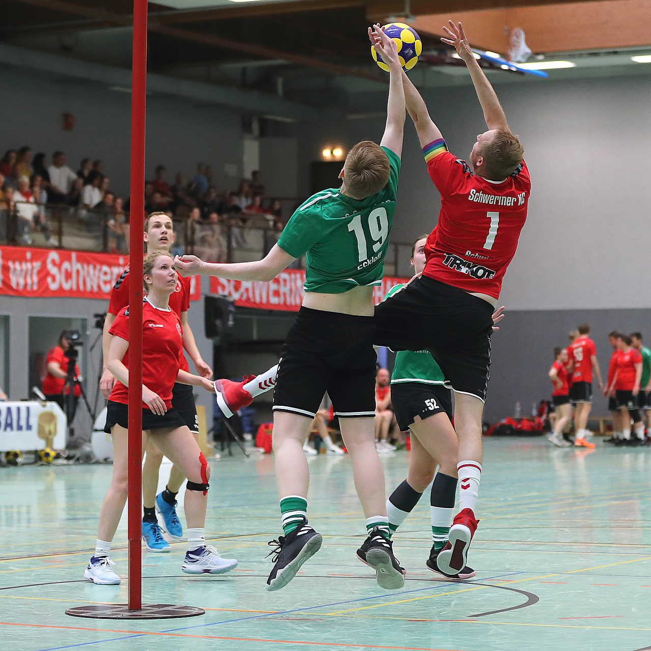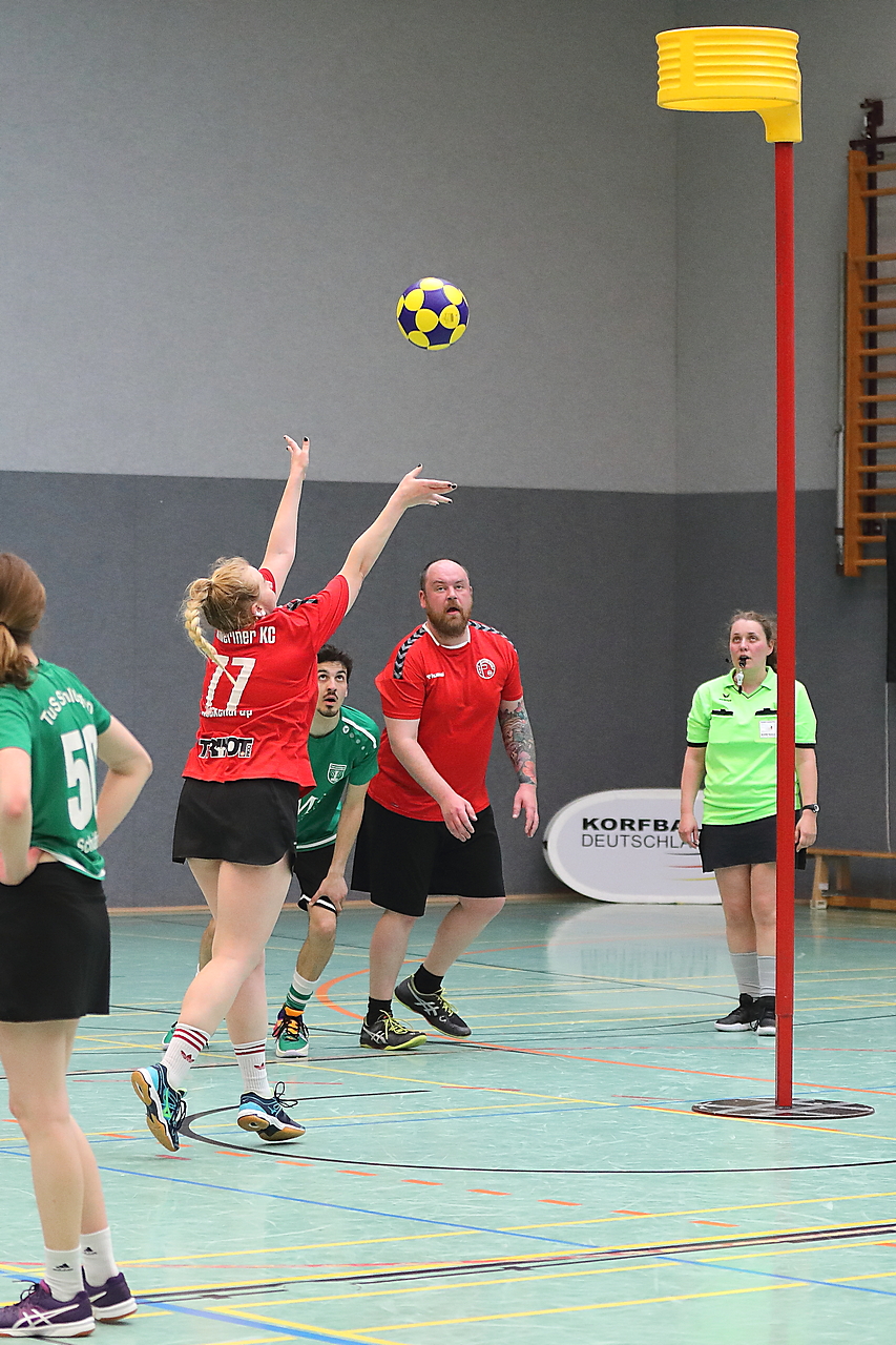 Am 13.05.2023 fanden die Finalspiele der Seniorenklasse statt. Vom Schweriner KC waren die erste und die dritte Mannschaft vertreten. In dieser Galerie werden die Fotos des Oberliga Finales Schildgen 3 gegen SKC 3 gezeigt. Das Spiel endete aus Schweriner Sicht mit einer unglücklichen Niederlage von 22:21 (Fotos Gertrude de Vries, korfballfoto.de)