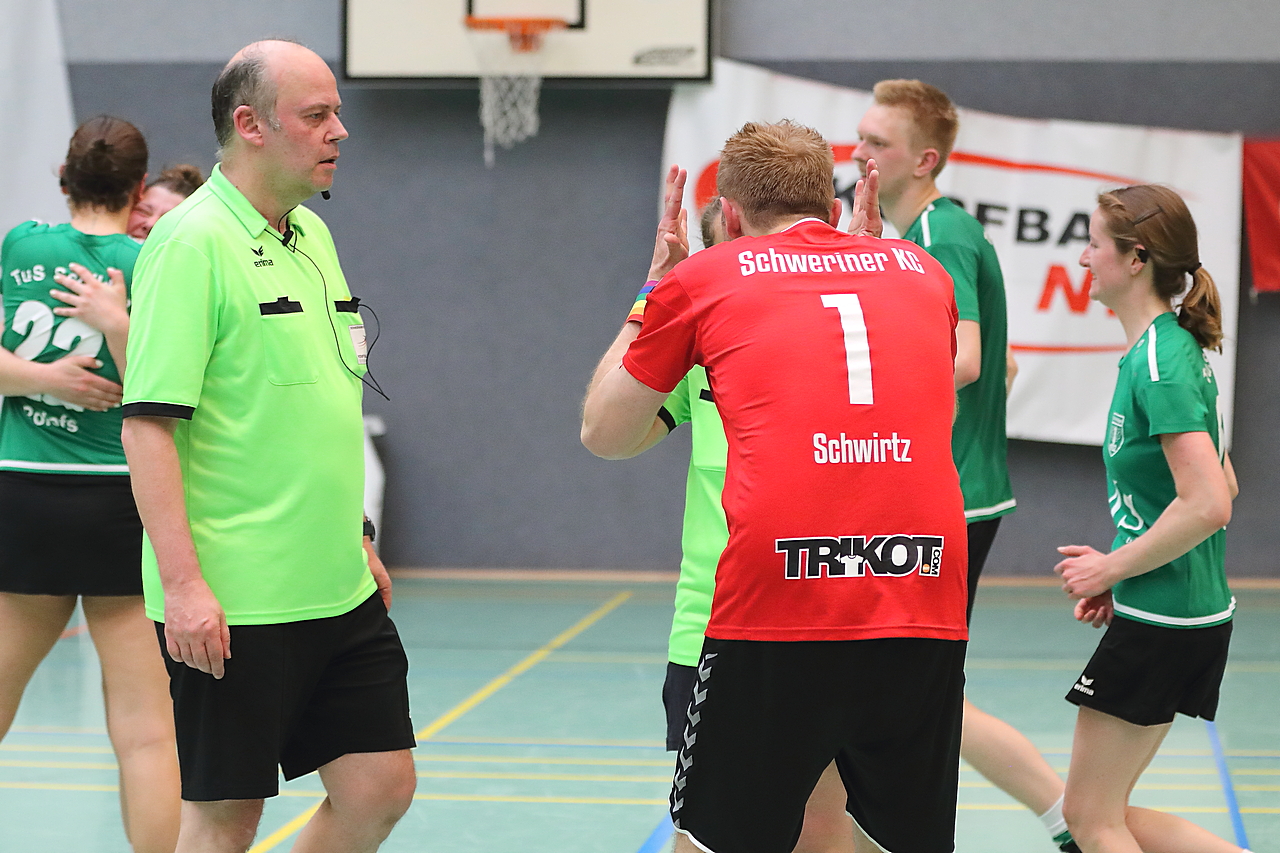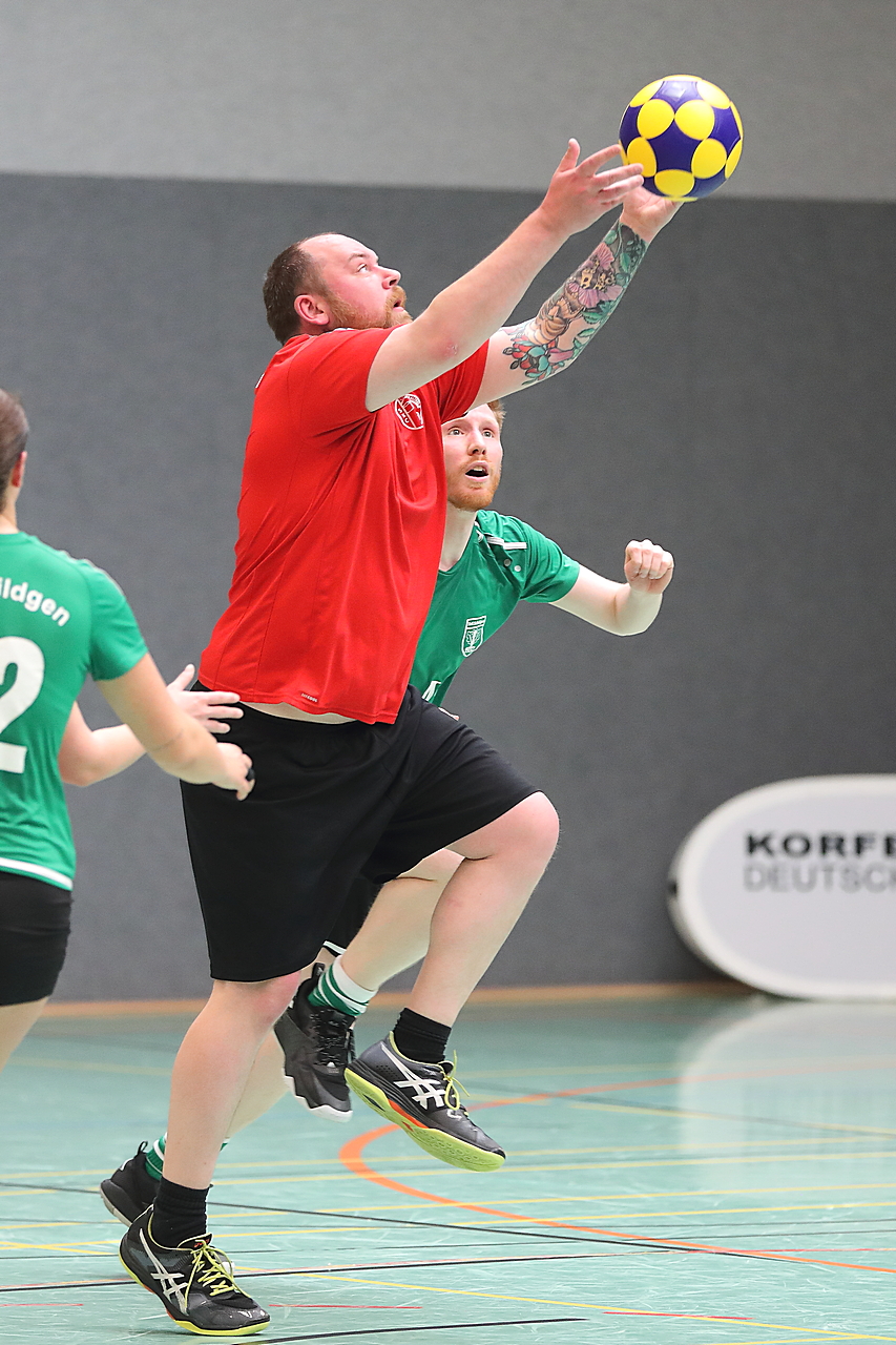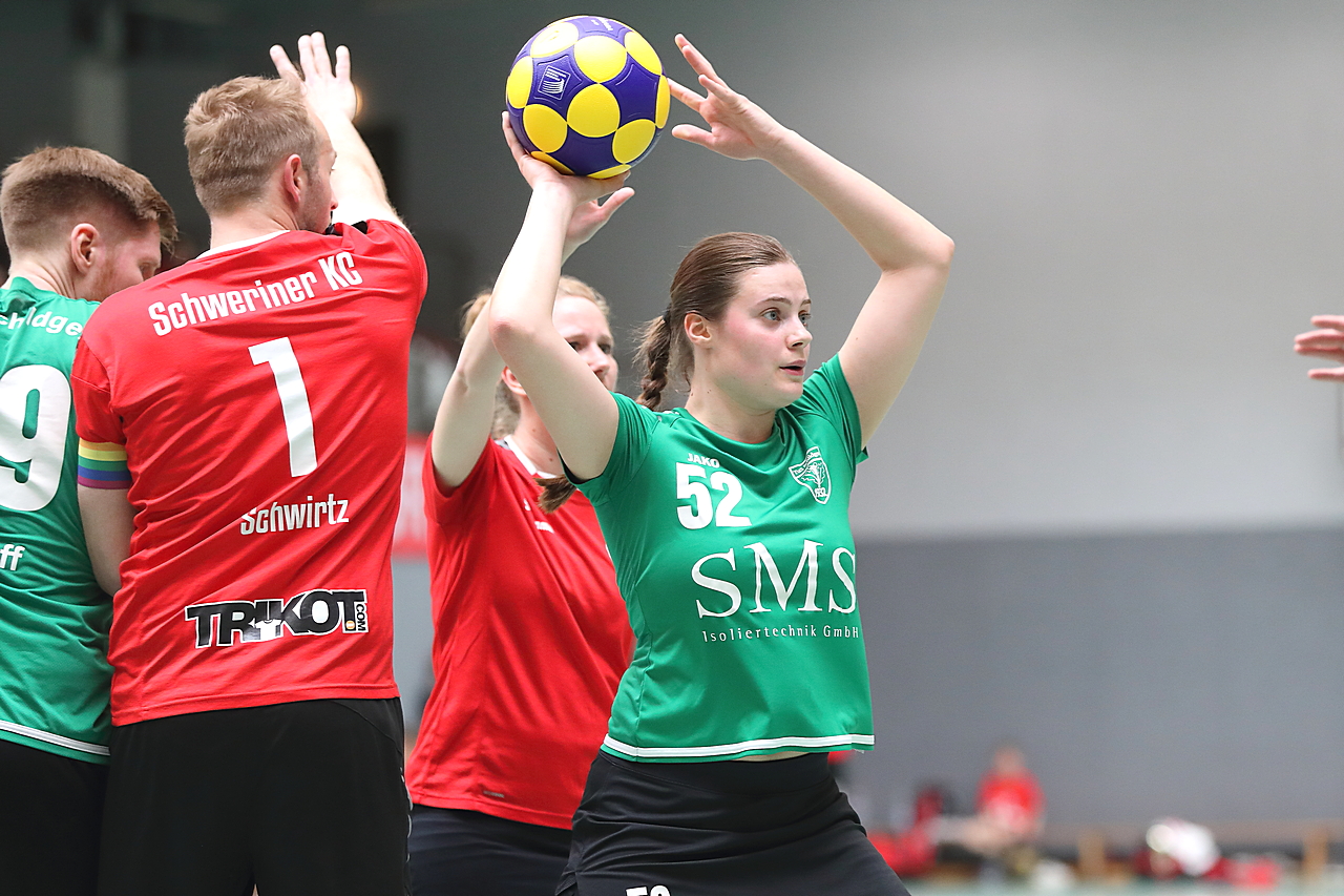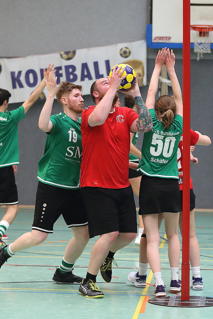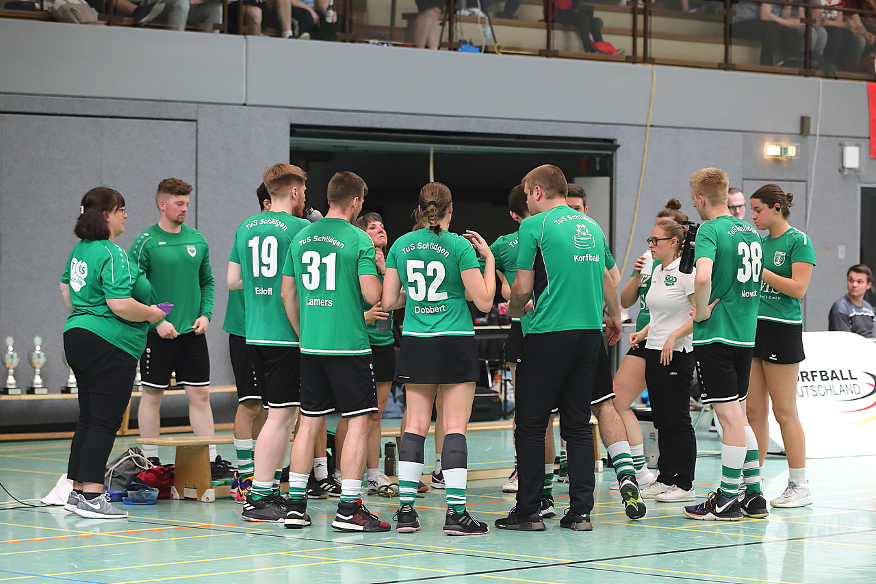 Am 13.05.2023 fanden die Finalspiele der Seniorenklasse statt. Vom Schweriner KC waren die erste und die dritte Mannschaft vertreten. In dieser Galerie werden die Fotos des Oberliga Finales Schildgen 3 gegen SKC 3 gezeigt. Das Spiel endete aus Schweriner Sicht mit einer unglücklichen Niederlage von 22:21 (Fotos Gertrude de Vries, korfballfoto.de)