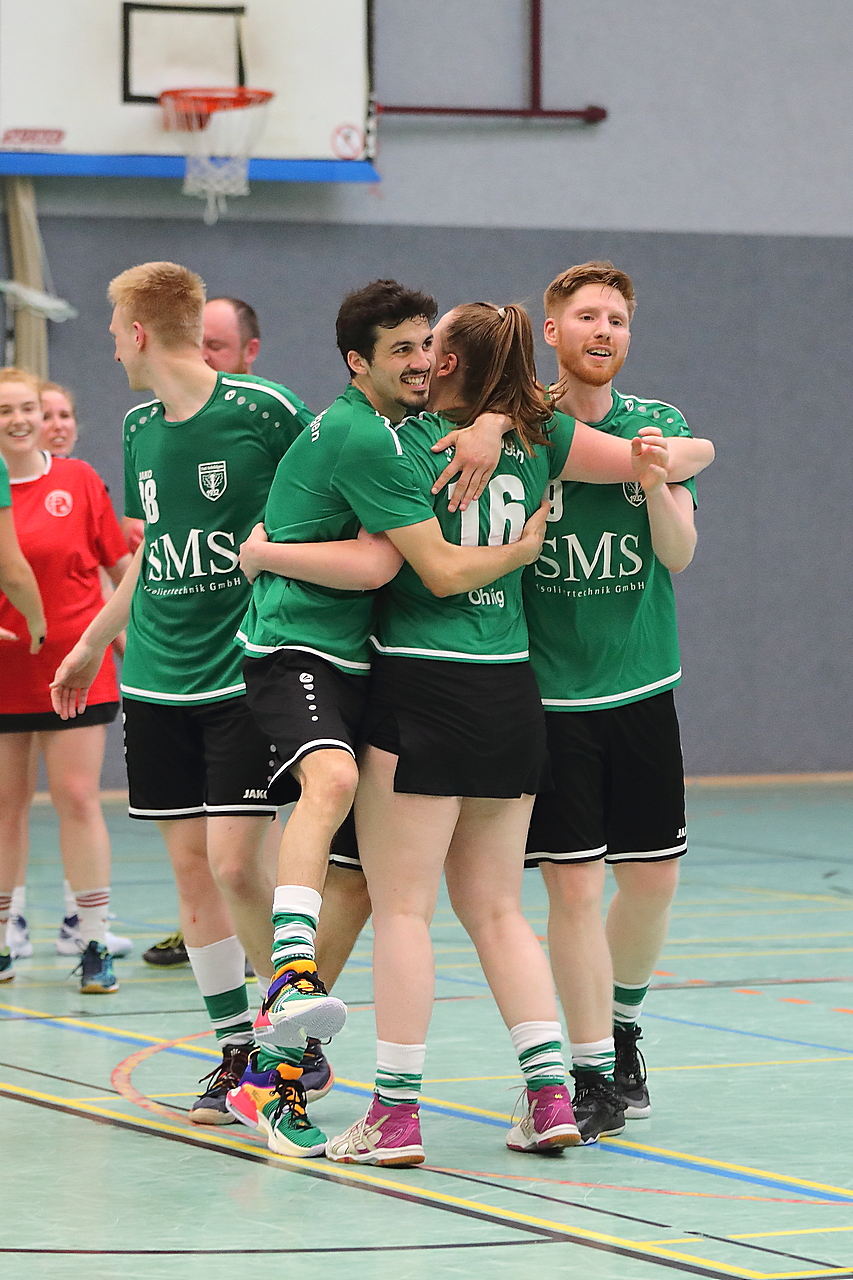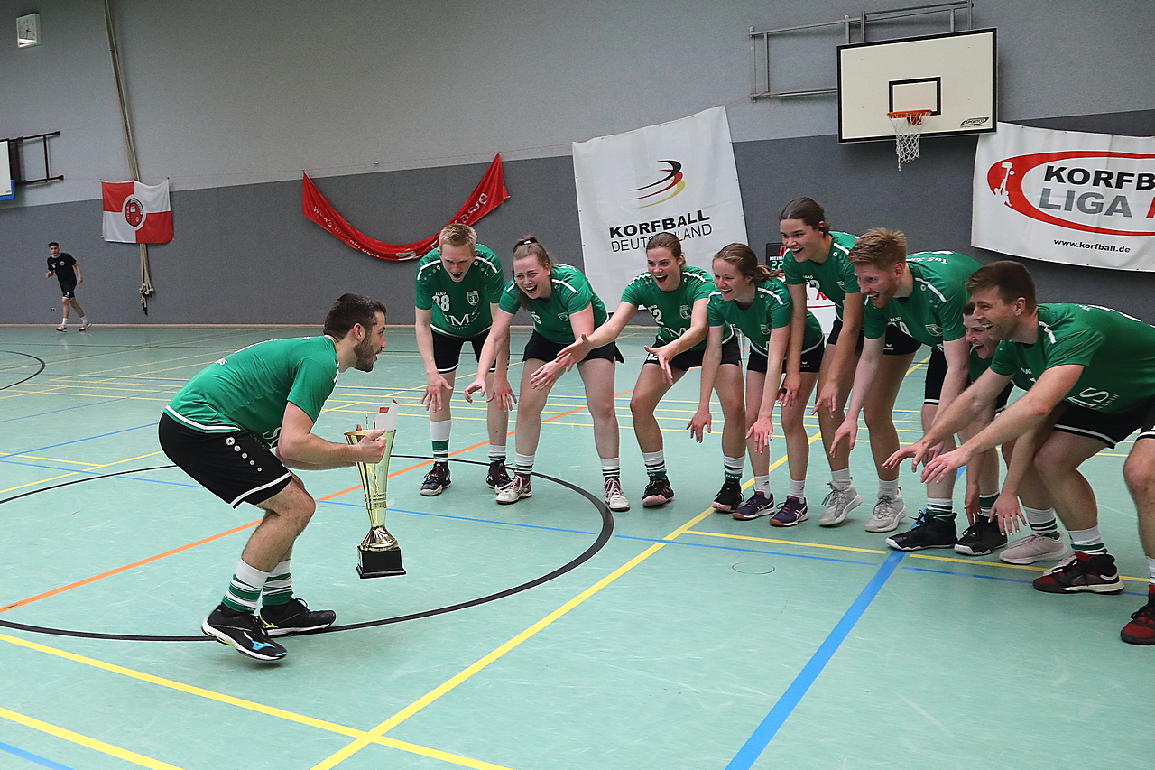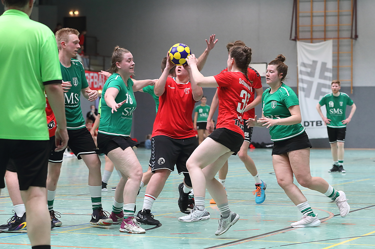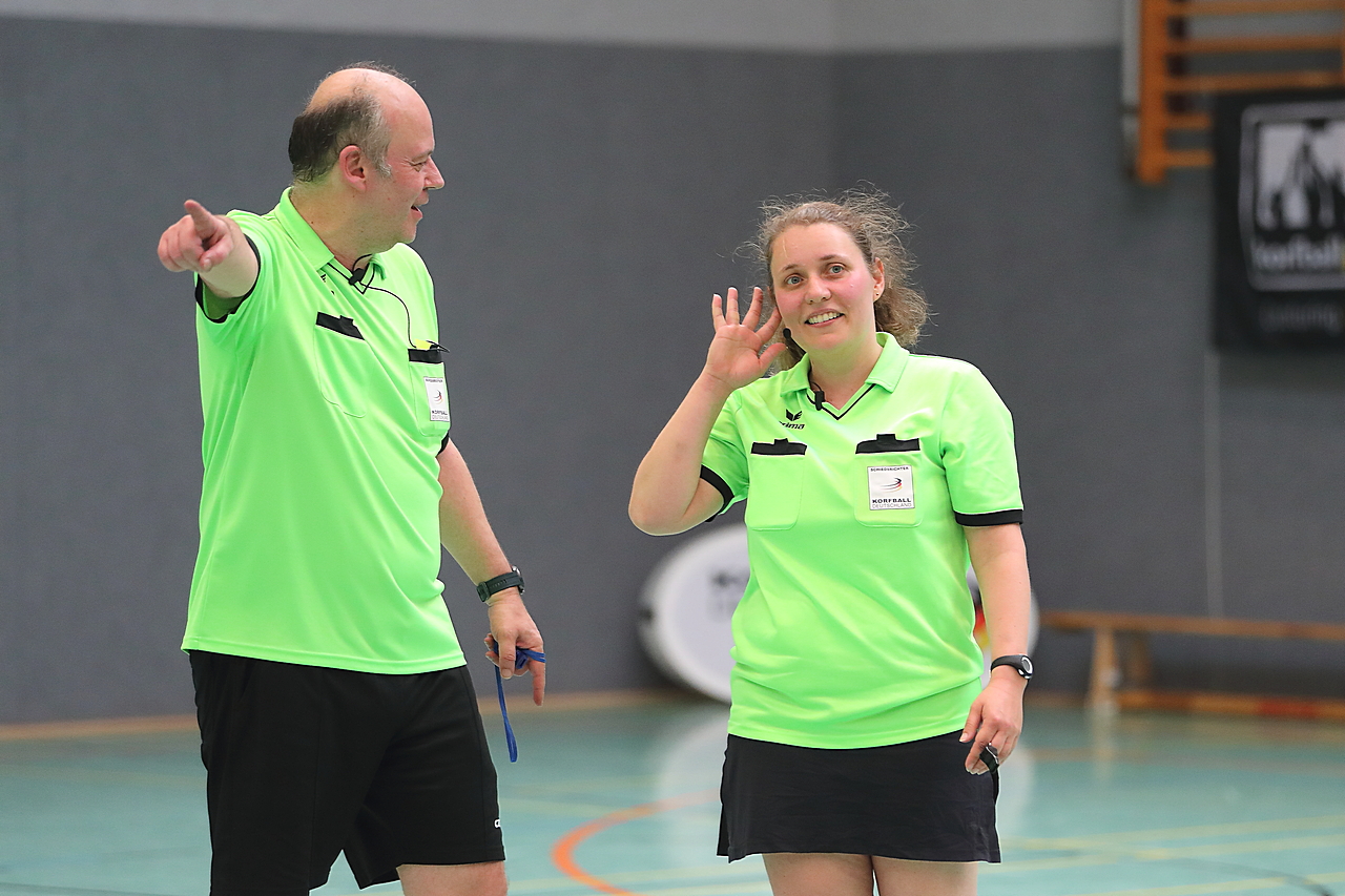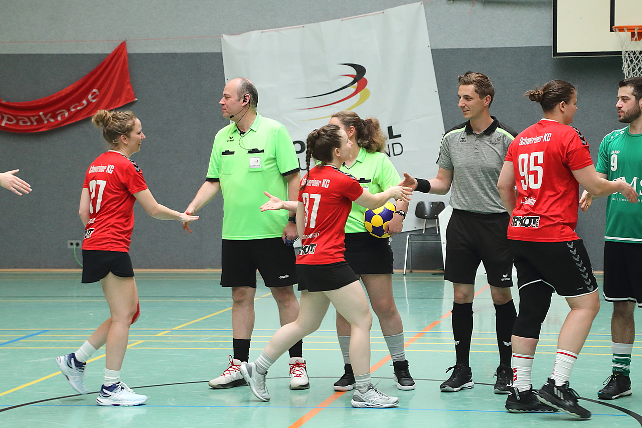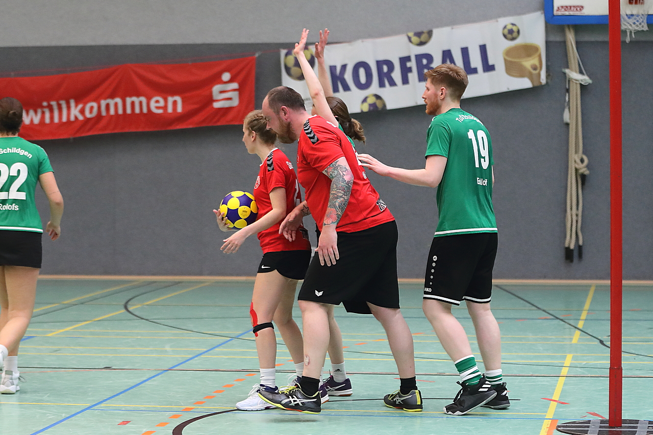 Am 13.05.2023 fanden die Finalspiele der Seniorenklasse statt. Vom Schweriner KC waren die erste und die dritte Mannschaft vertreten. In dieser Galerie werden die Fotos des Oberliga Finales Schildgen 3 gegen SKC 3 gezeigt. Das Spiel endete aus Schweriner Sicht mit einer unglücklichen Niederlage von 22:21 (Fotos Gertrude de Vries, korfballfoto.de)