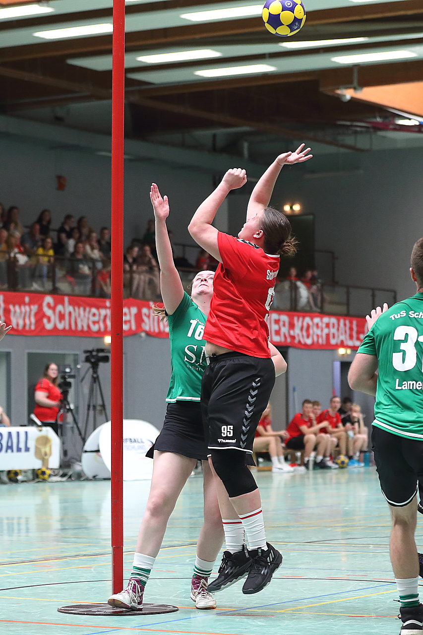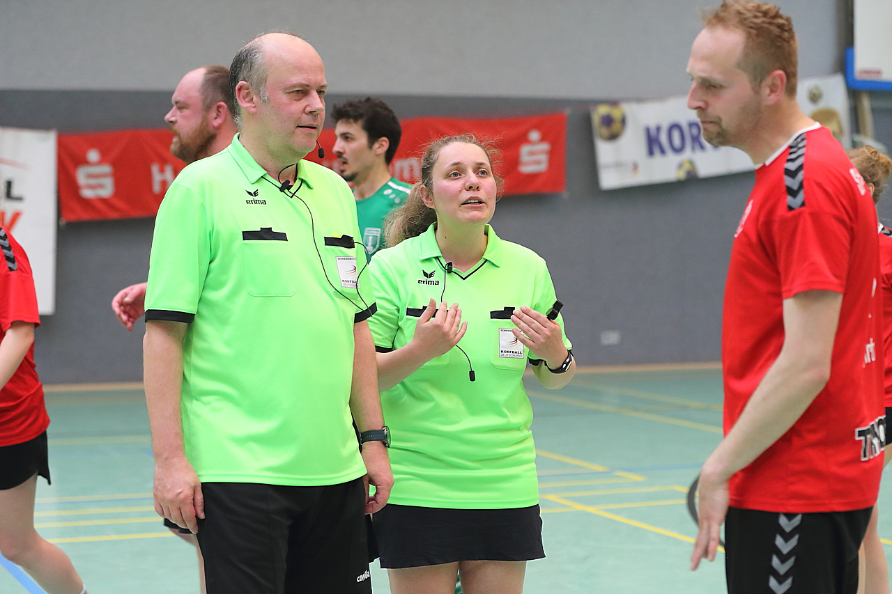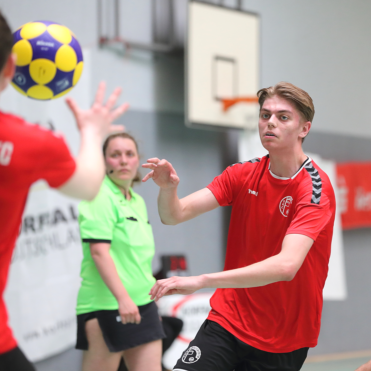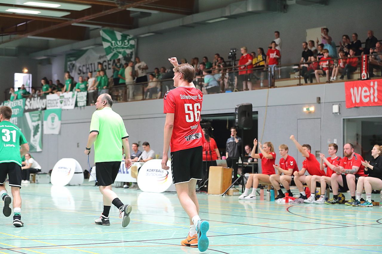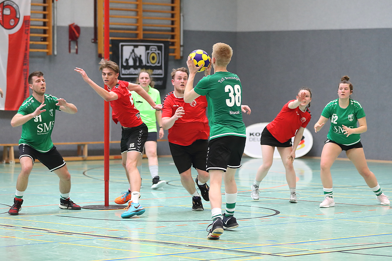 Am 13.05.2023 fanden die Finalspiele der Seniorenklasse statt. Vom Schweriner KC waren die erste und die dritte Mannschaft vertreten. In dieser Galerie werden die Fotos des Oberliga Finales Schildgen 3 gegen SKC 3 gezeigt. Das Spiel endete aus Schweriner Sicht mit einer unglücklichen Niederlage von 22:21 (Fotos Gertrude de Vries, korfballfoto.de)