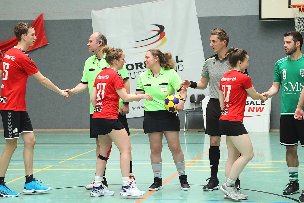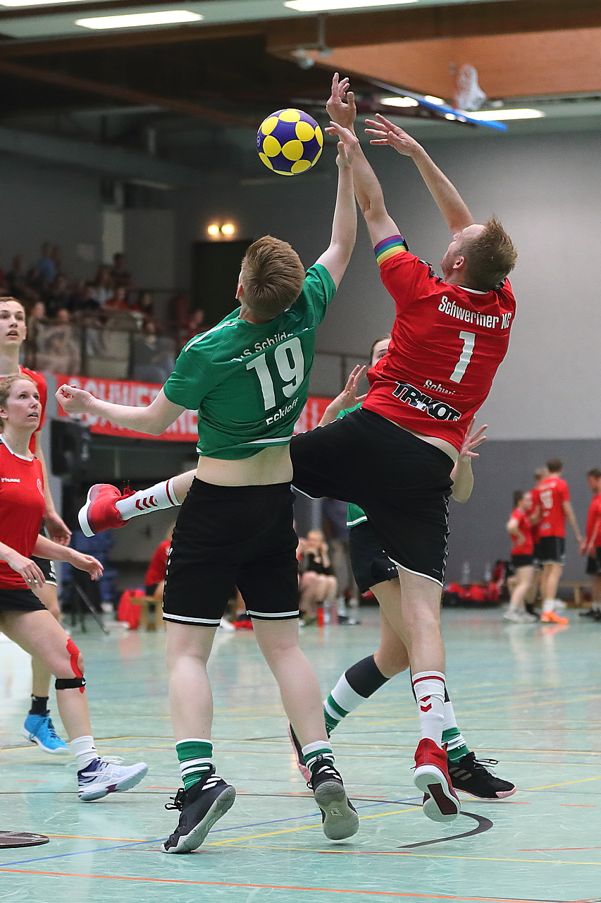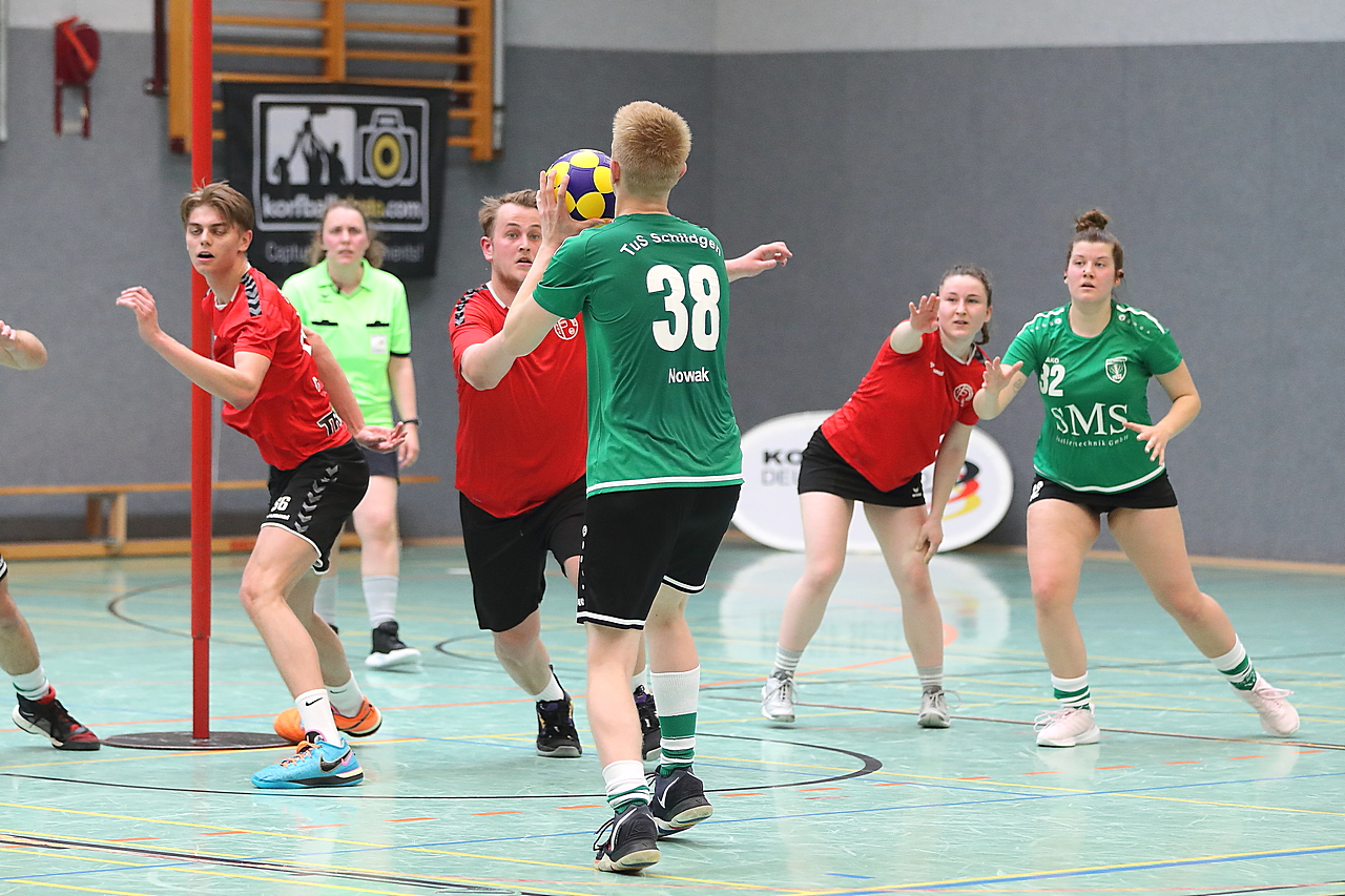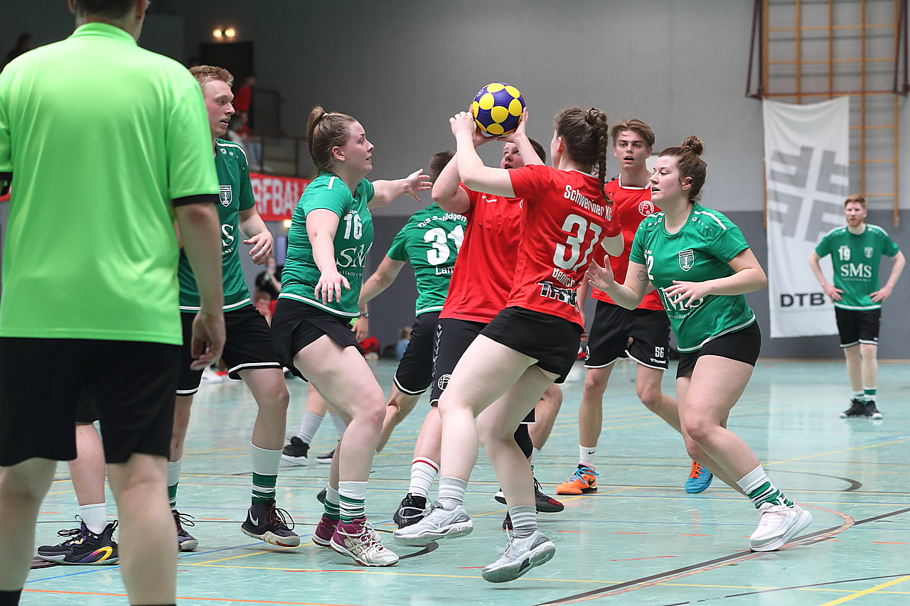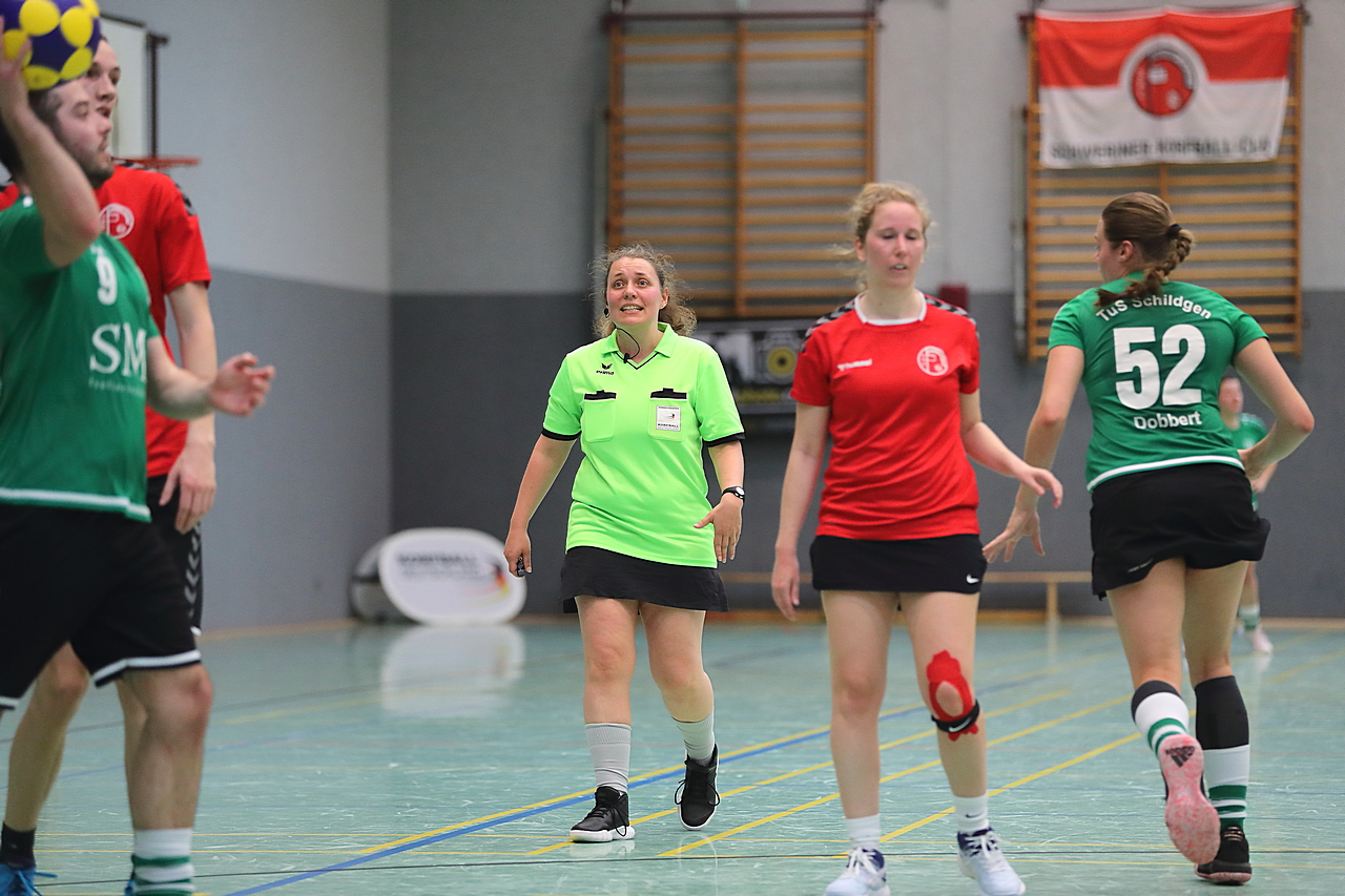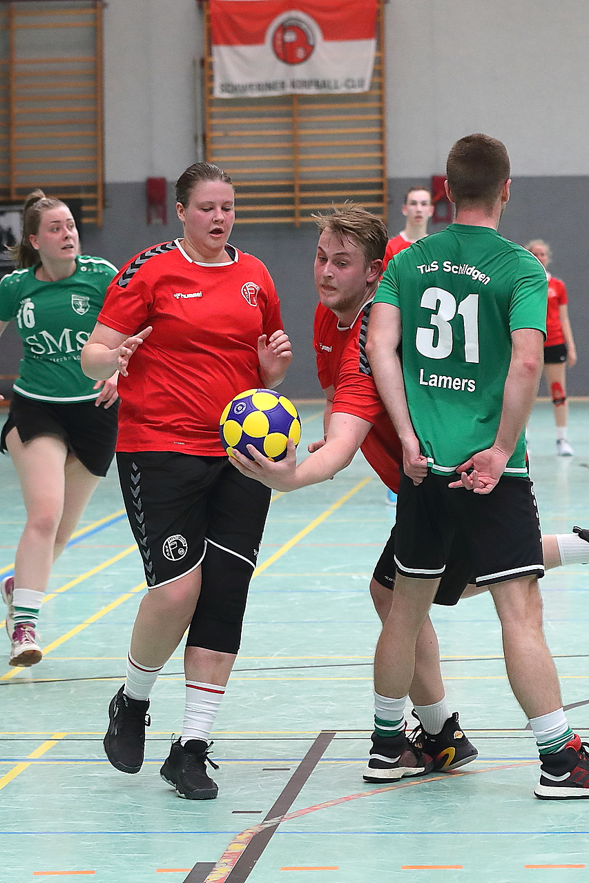 Am 13.05.2023 fanden die Finalspiele der Seniorenklasse statt. Vom Schweriner KC waren die erste und die dritte Mannschaft vertreten. In dieser Galerie werden die Fotos des Oberliga Finales Schildgen 3 gegen SKC 3 gezeigt. Das Spiel endete aus Schweriner Sicht mit einer unglücklichen Niederlage von 22:21 (Fotos Gertrude de Vries, korfballfoto.de)