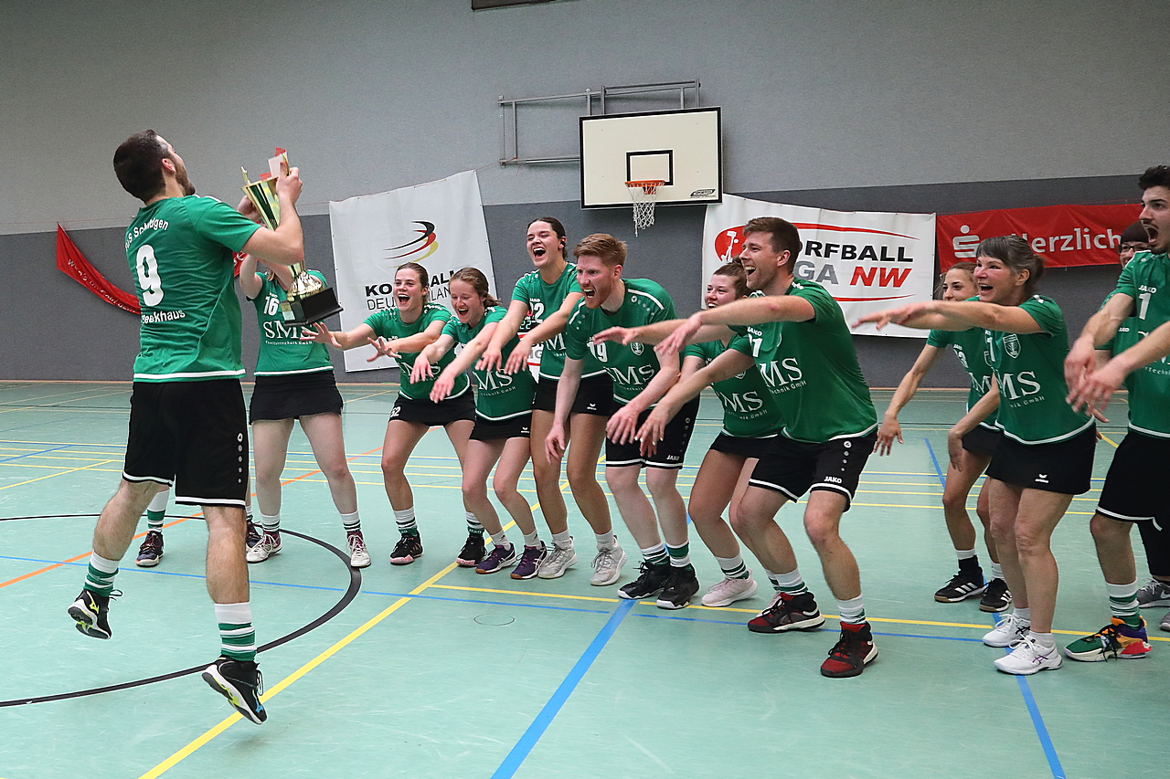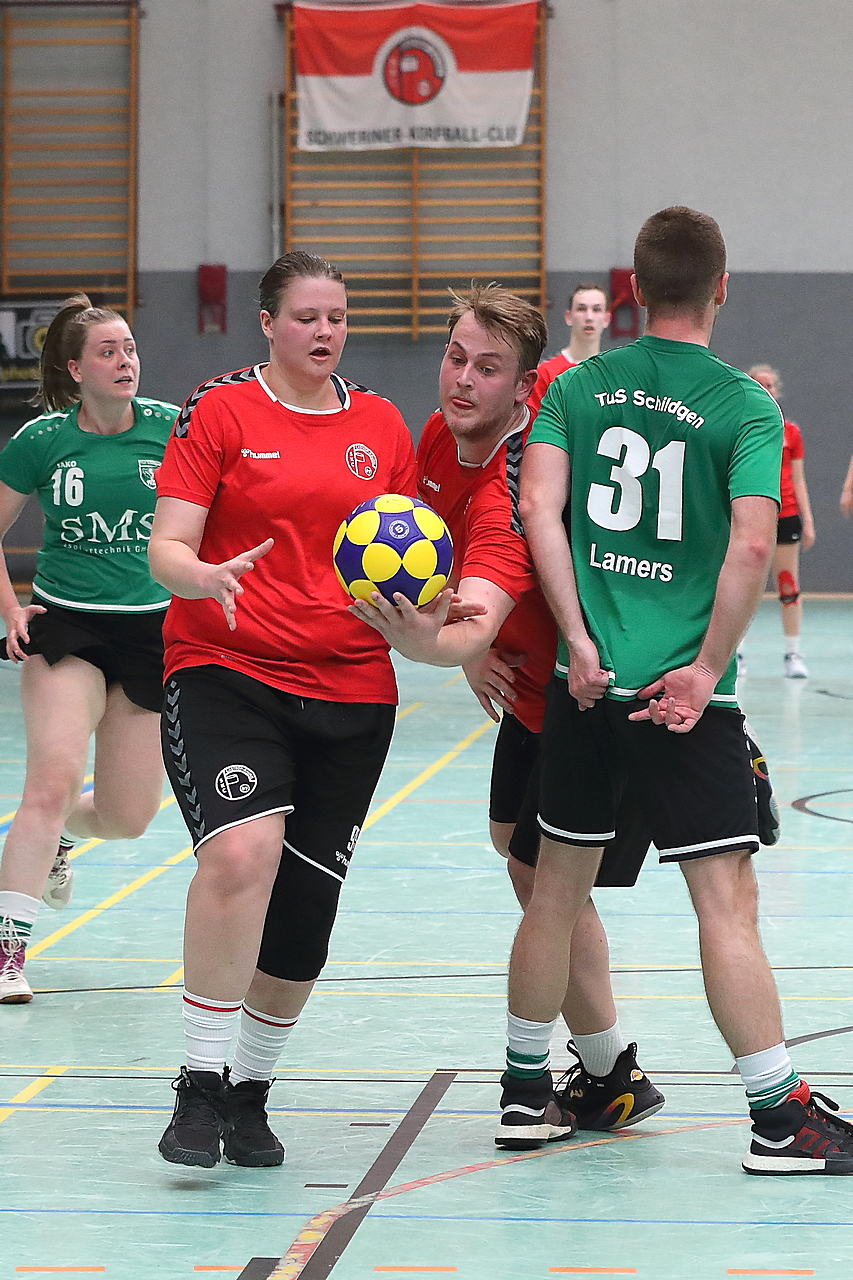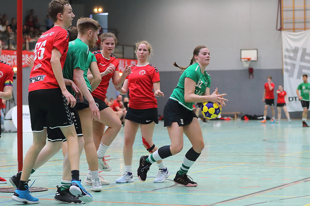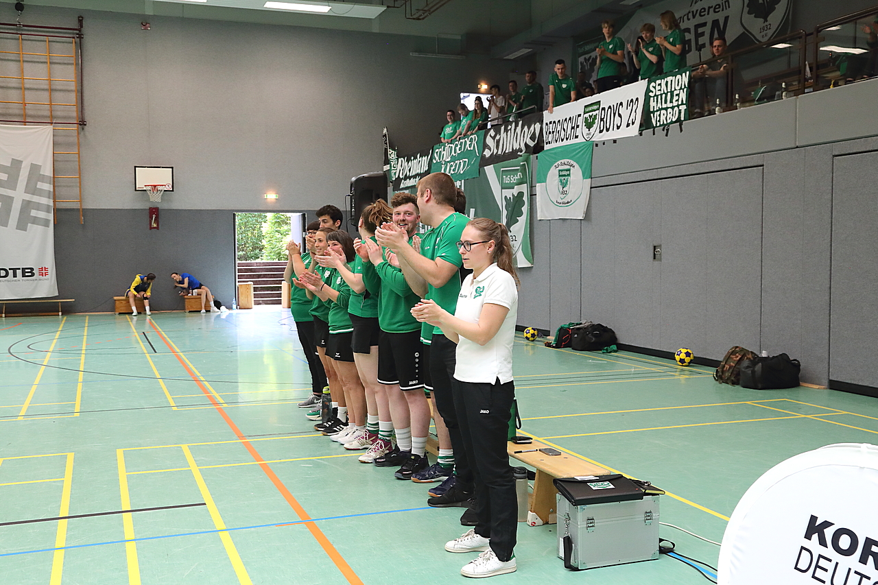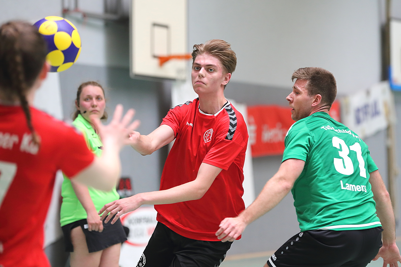 Am 13.05.2023 fanden die Finalspiele der Seniorenklasse statt. Vom Schweriner KC waren die erste und die dritte Mannschaft vertreten. In dieser Galerie werden die Fotos des Oberliga Finales Schildgen 3 gegen SKC 3 gezeigt. Das Spiel endete aus Schweriner Sicht mit einer unglücklichen Niederlage von 22:21 (Fotos Gertrude de Vries, korfballfoto.de)