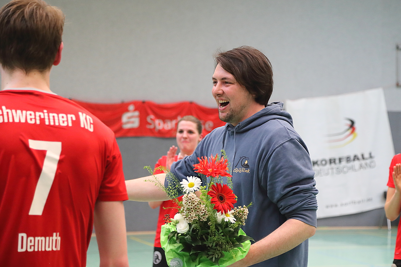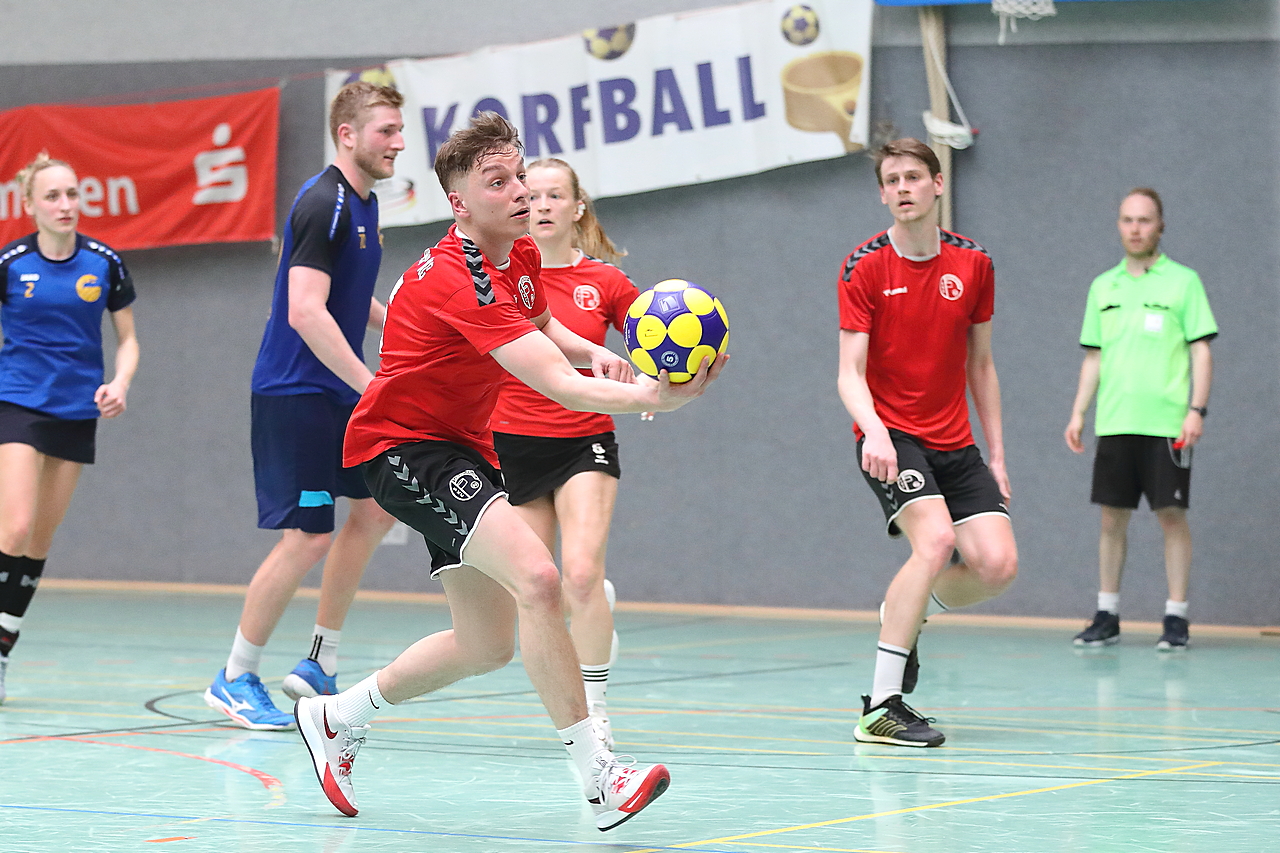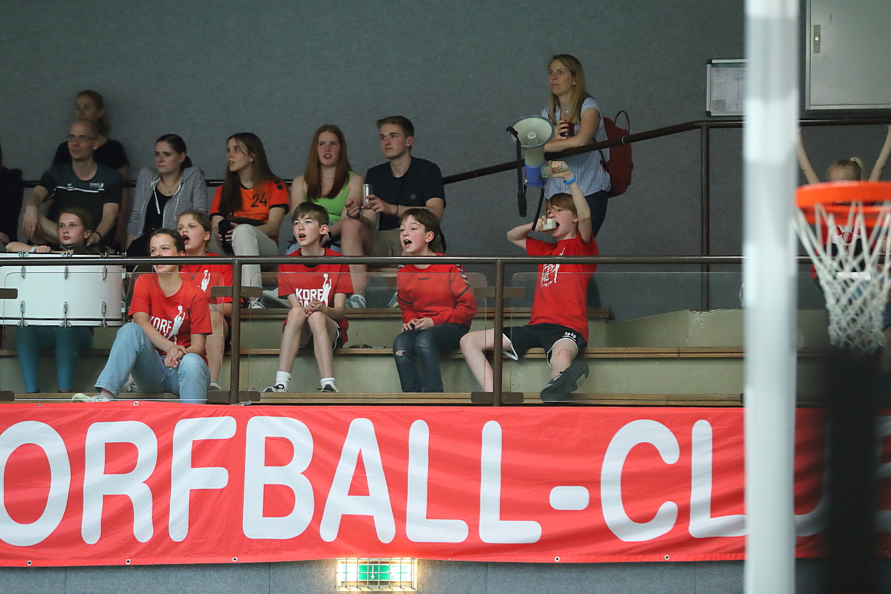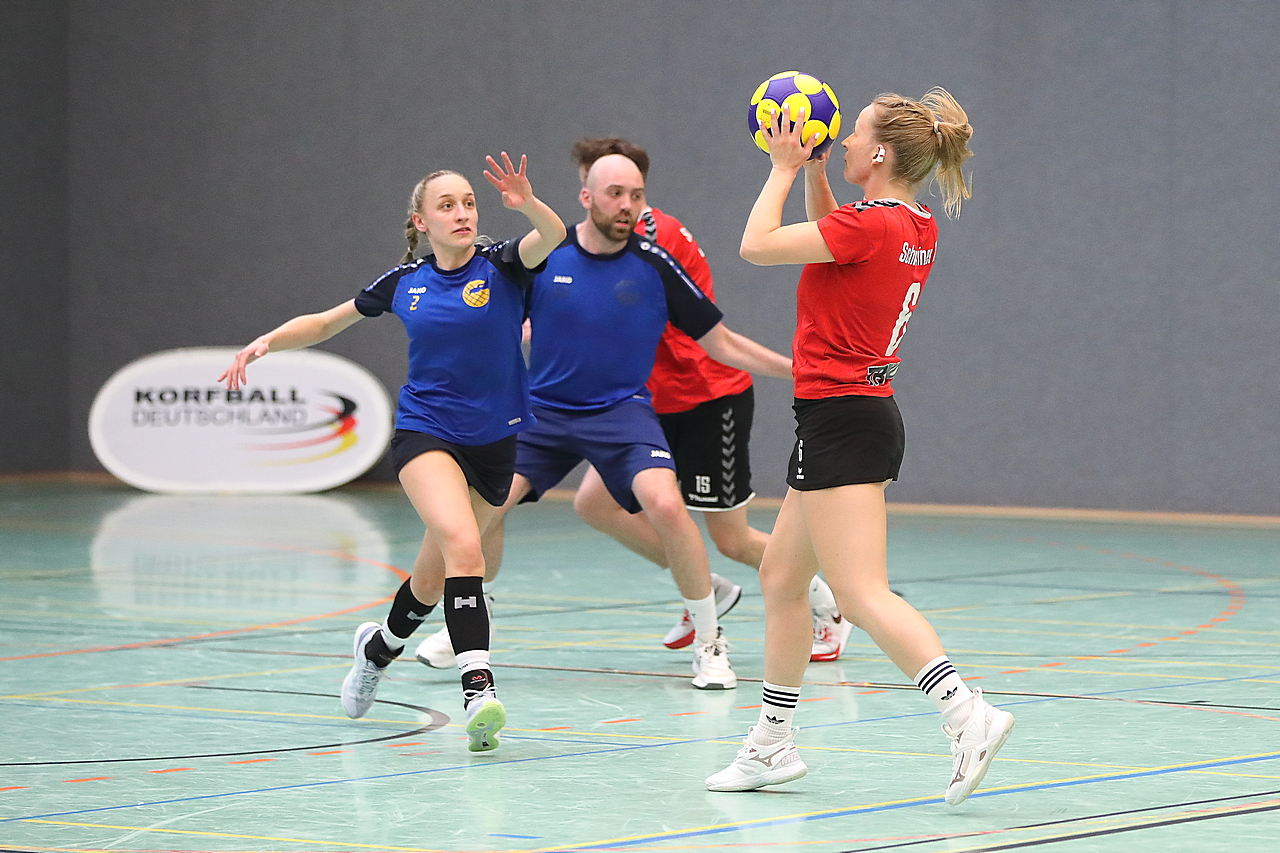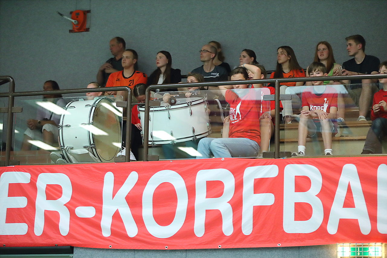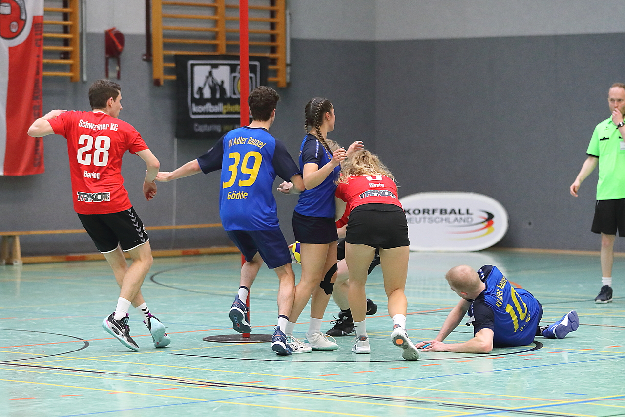 Am 13.05.2023 fanden die Finalspiele der Seniorenklasse statt. Vom Schweriner KC waren die erste und die dritte Mannschaft vertreten. In dieser Galerie werden die Fotos des Regionalliga Finalspiels um Platz 3 Adler 1 gegen SKC 1 gezeigt. Das Spiel endete mit einem Schweriner Sieg von 17:18 (Fotos Gertrude de Vries, korfballfoto.de)