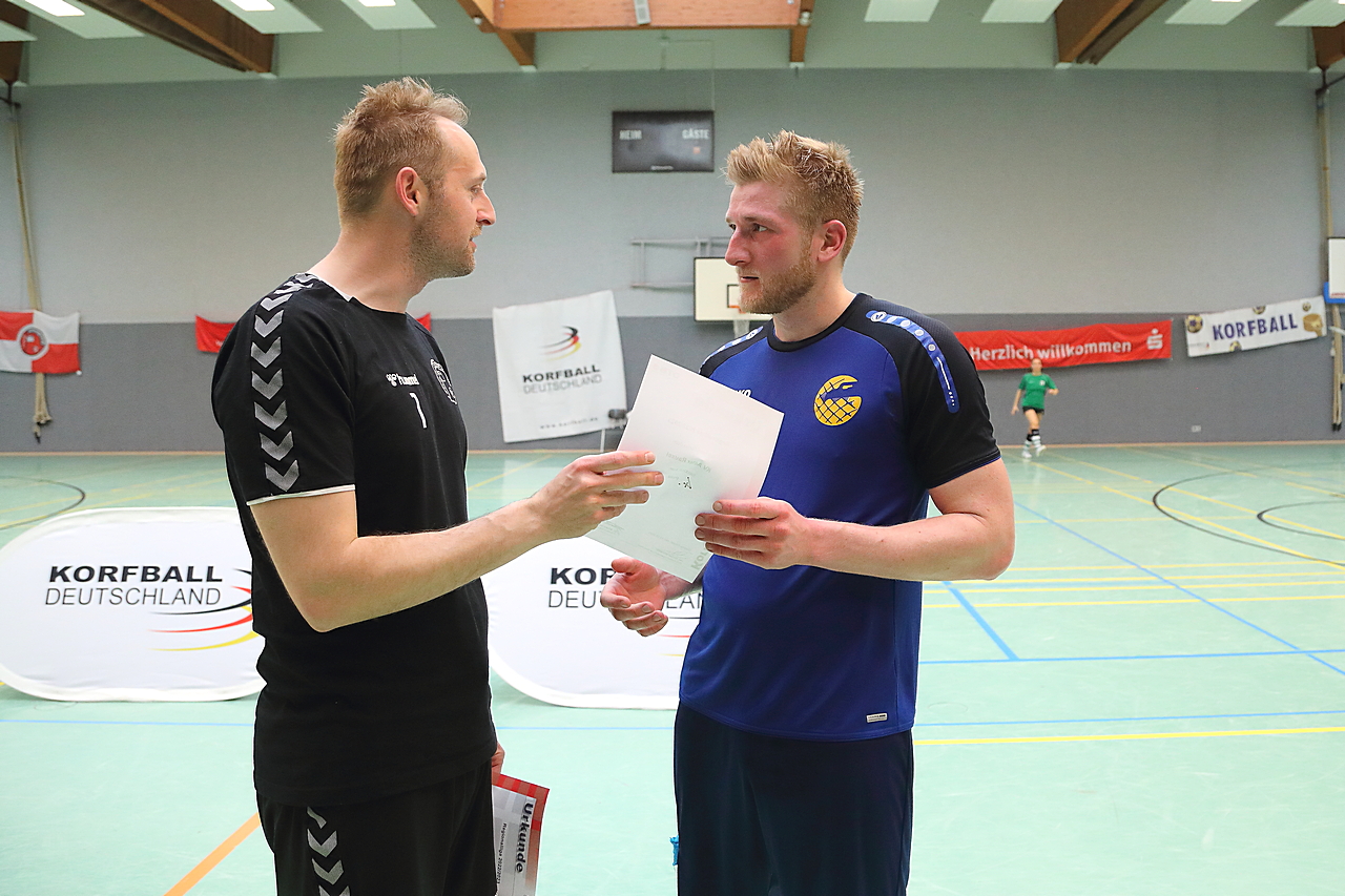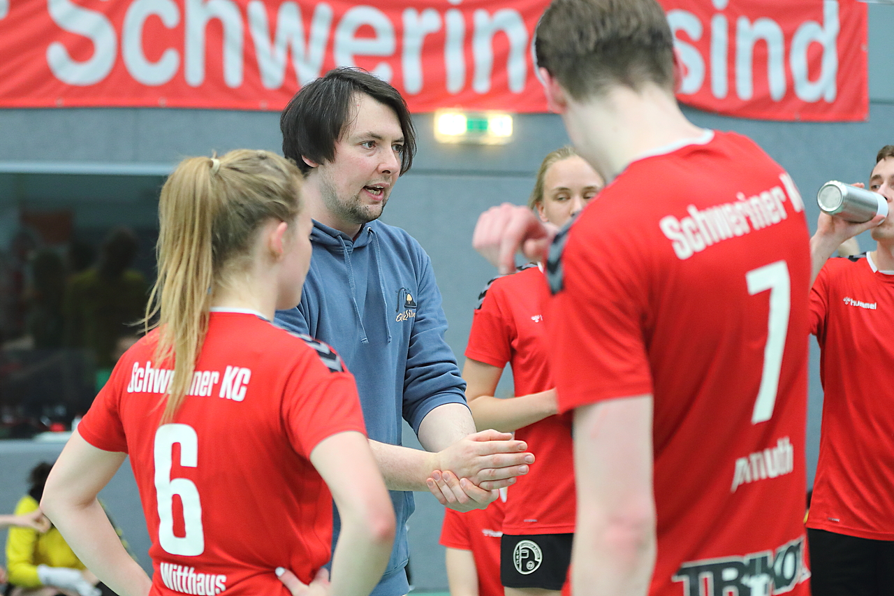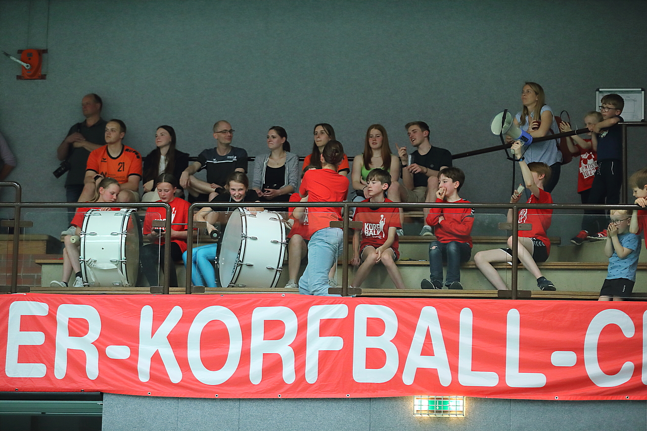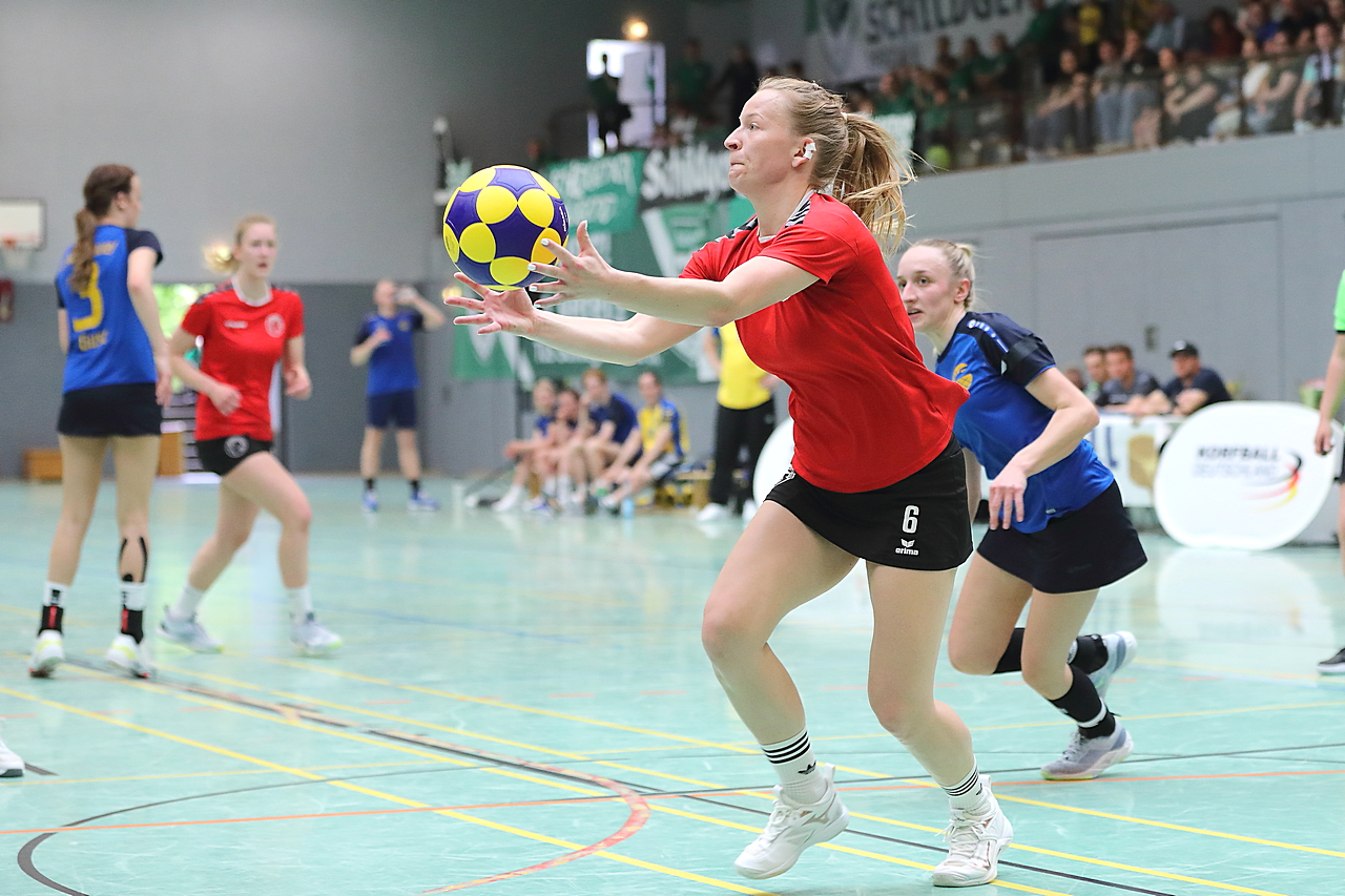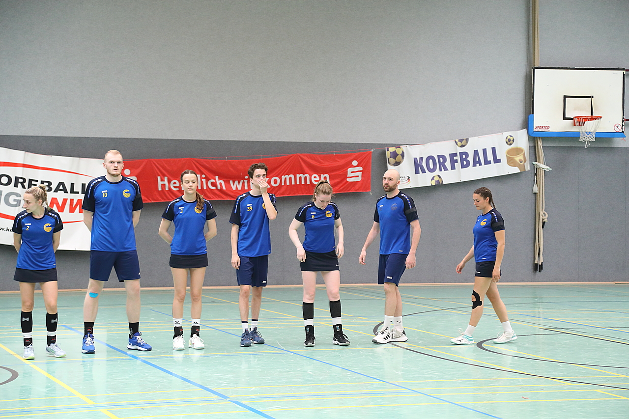 Am 13.05.2023 fanden die Finalspiele der Seniorenklasse statt. Vom Schweriner KC waren die erste und die dritte Mannschaft vertreten. In dieser Galerie werden die Fotos des Regionalliga Finalspiels um Platz 3 Adler 1 gegen SKC 1 gezeigt. Das Spiel endete mit einem Schweriner Sieg von 17:18 (Fotos Gertrude de Vries, korfballfoto.de)