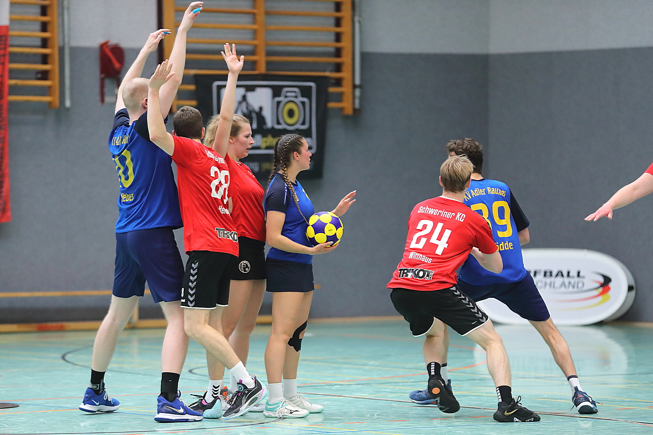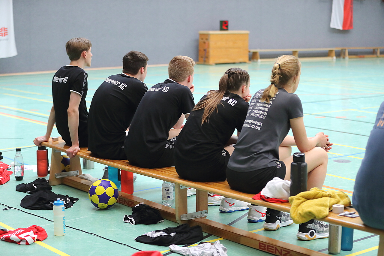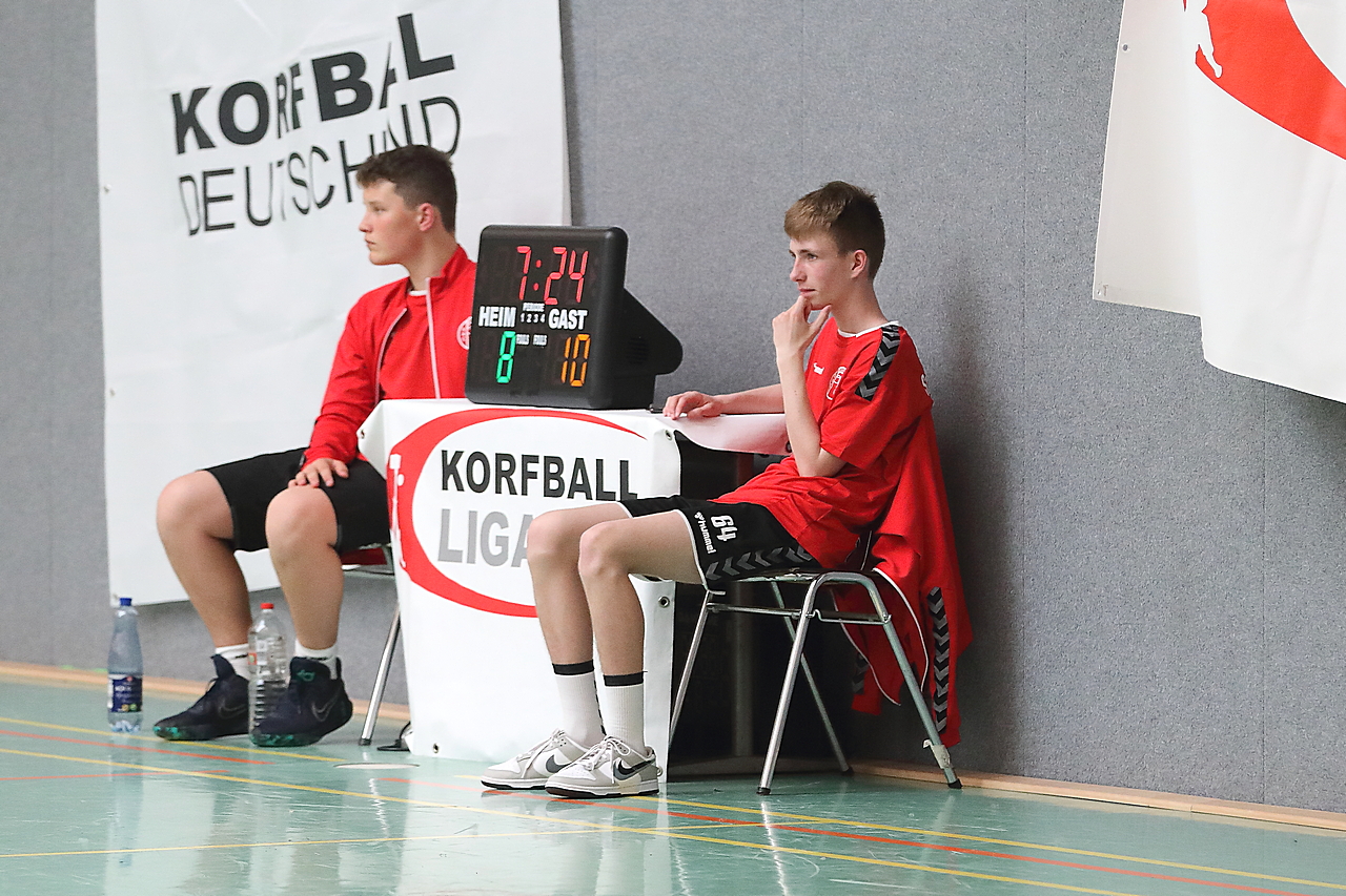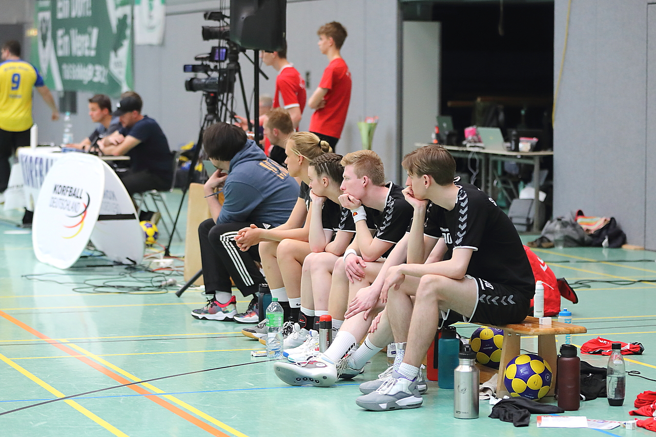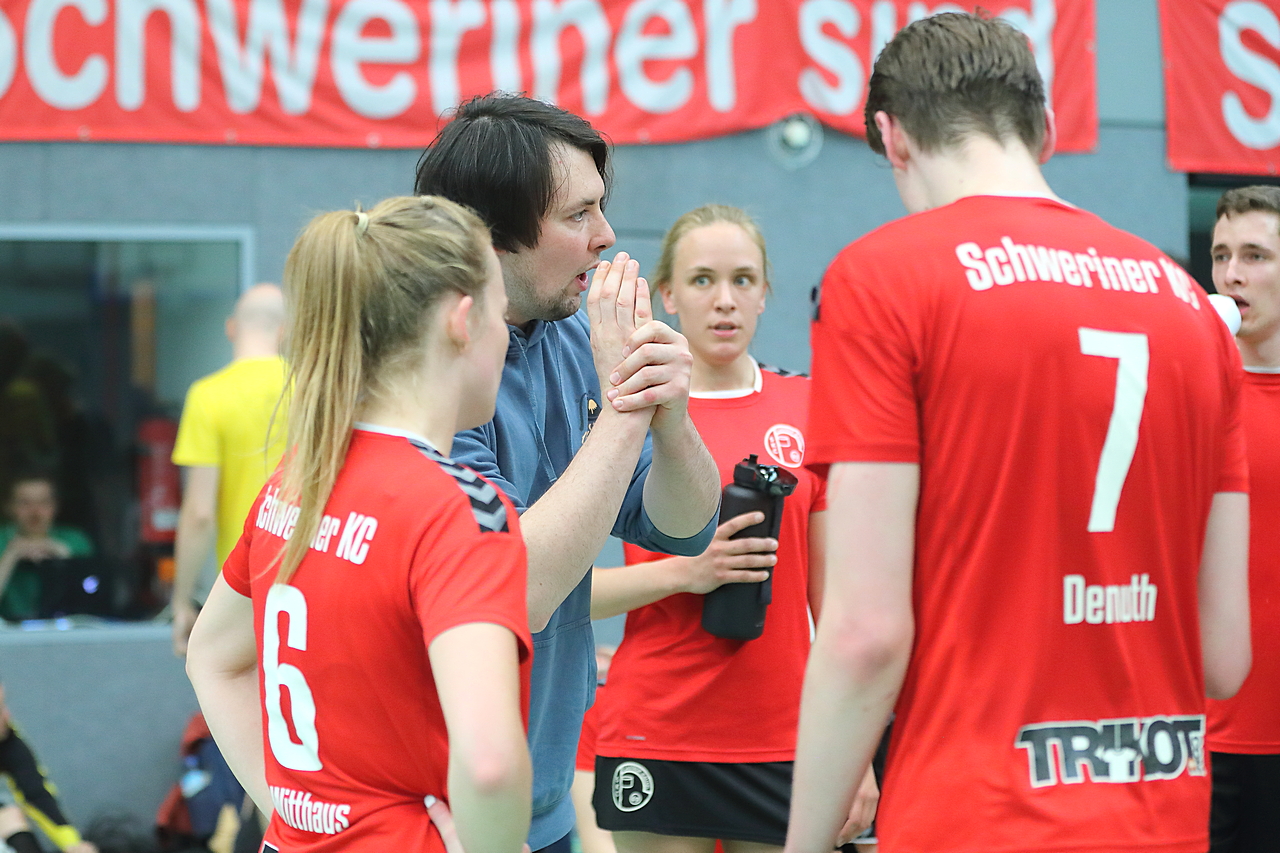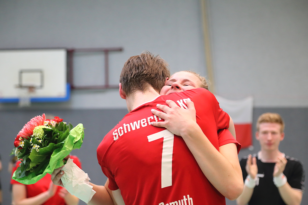 Am 13.05.2023 fanden die Finalspiele der Seniorenklasse statt. Vom Schweriner KC waren die erste und die dritte Mannschaft vertreten. In dieser Galerie werden die Fotos des Regionalliga Finalspiels um Platz 3 Adler 1 gegen SKC 1 gezeigt. Das Spiel endete mit einem Schweriner Sieg von 17:18 (Fotos Gertrude de Vries, korfballfoto.de)