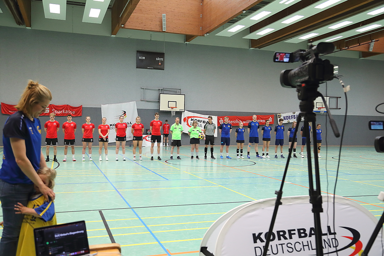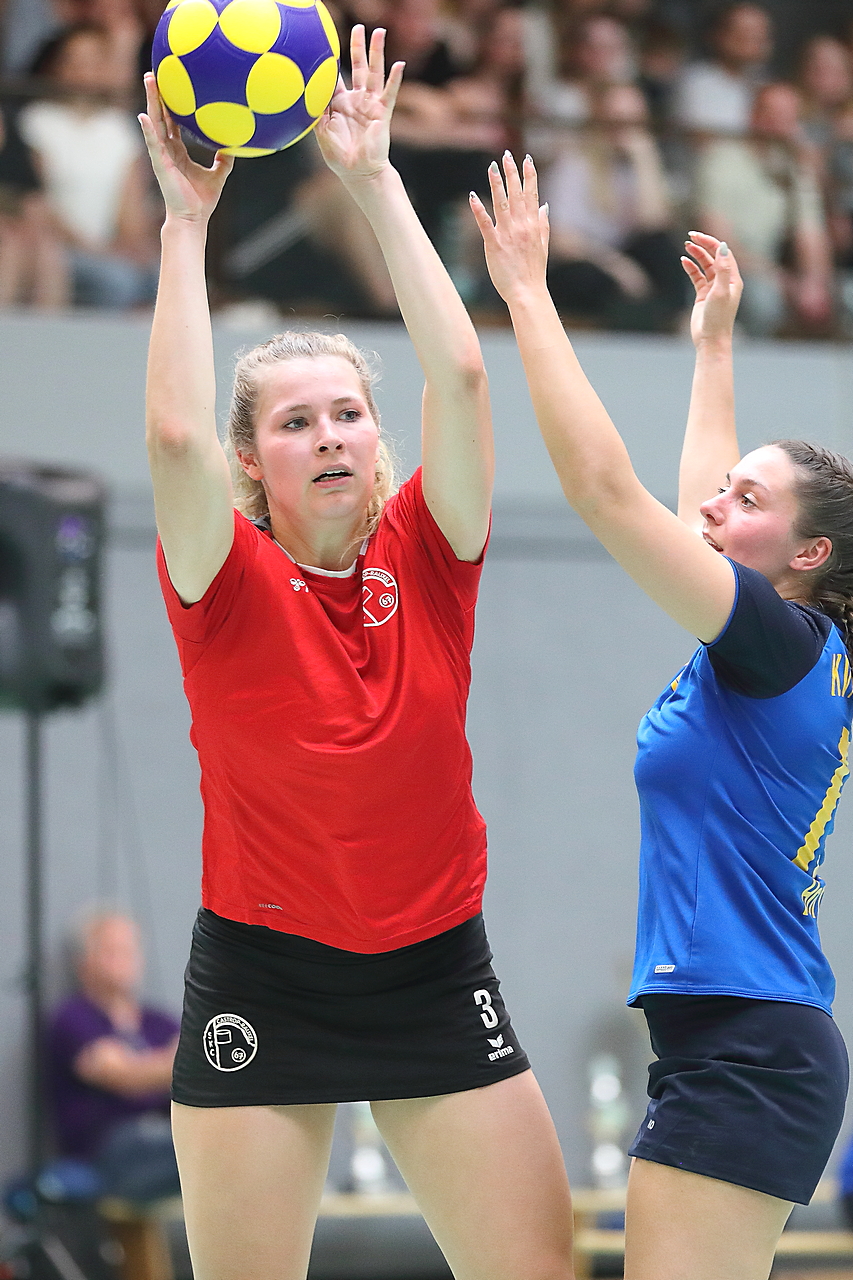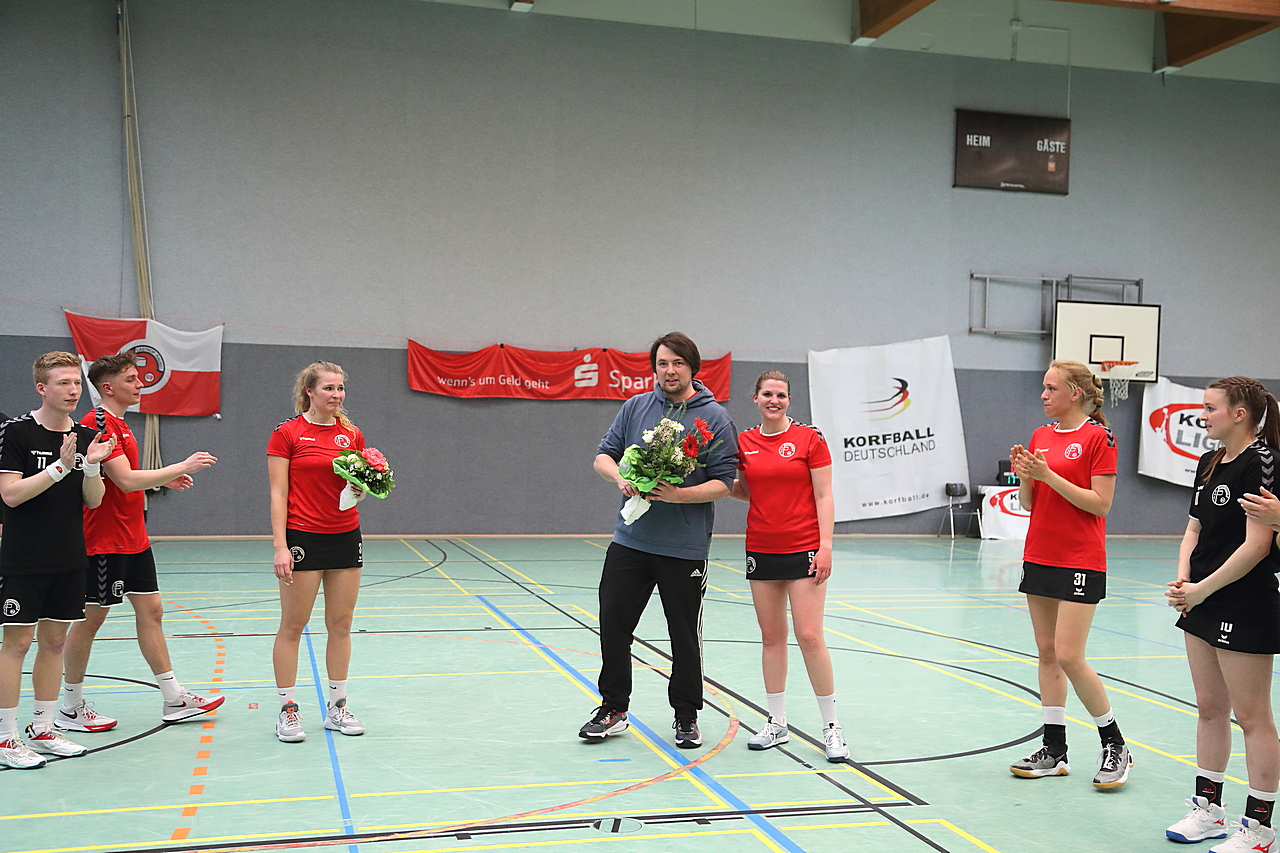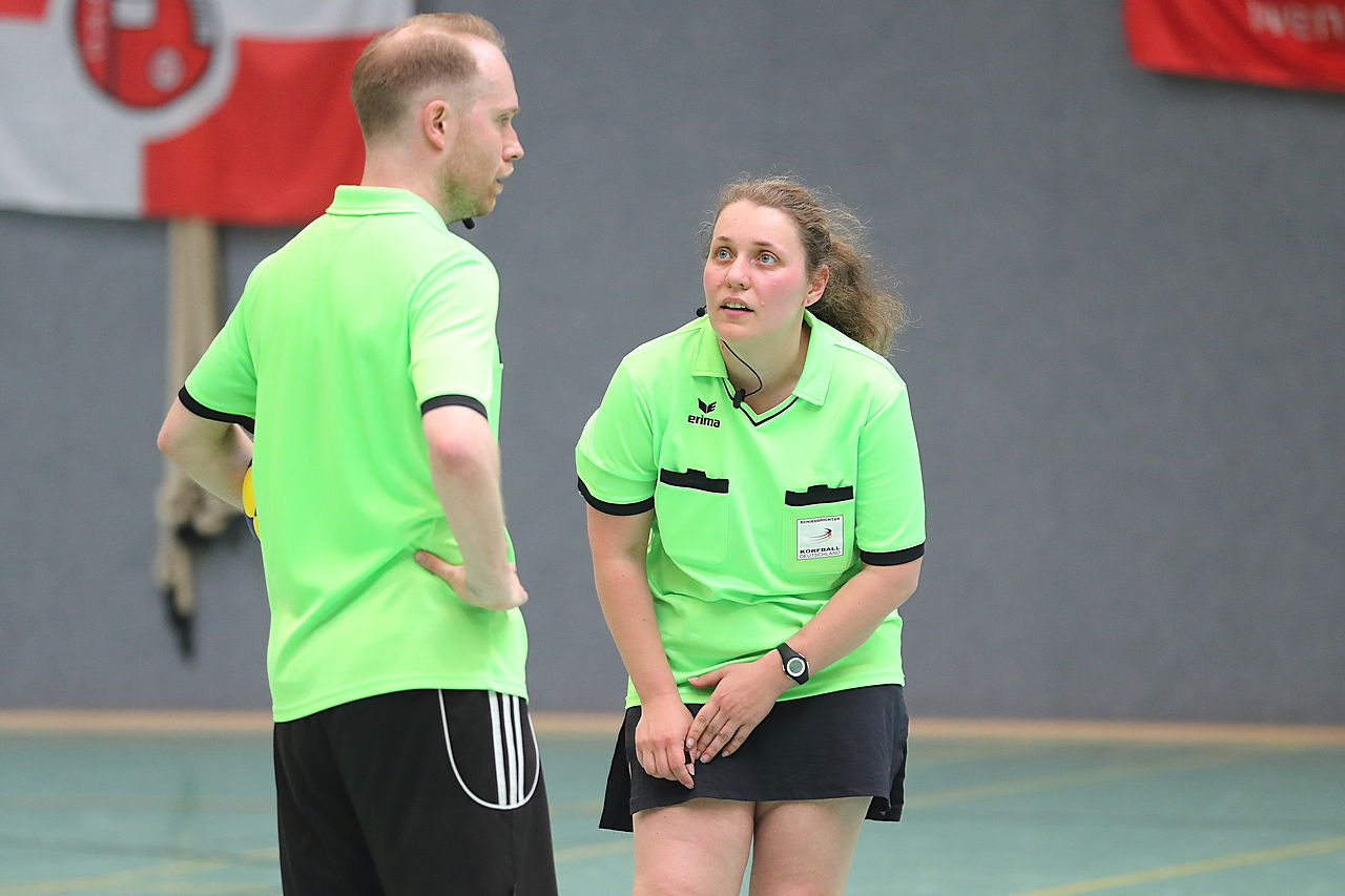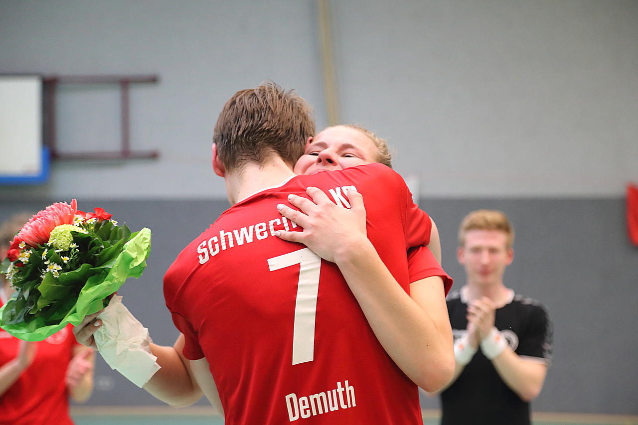 Am 13.05.2023 fanden die Finalspiele der Seniorenklasse statt. Vom Schweriner KC waren die erste und die dritte Mannschaft vertreten. In dieser Galerie werden die Fotos des Regionalliga Finalspiels um Platz 3 Adler 1 gegen SKC 1 gezeigt. Das Spiel endete mit einem Schweriner Sieg von 17:18 (Fotos Gertrude de Vries, korfballfoto.de)
