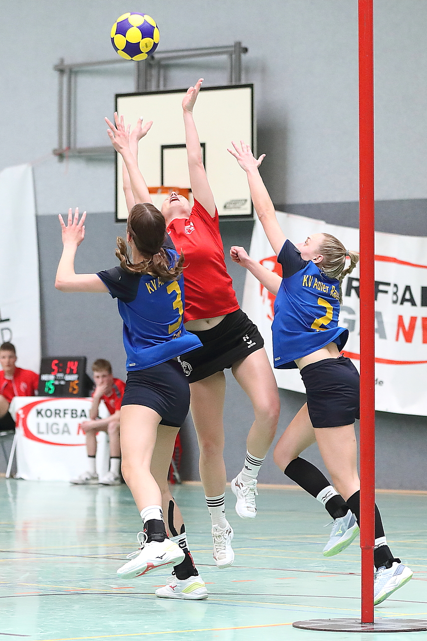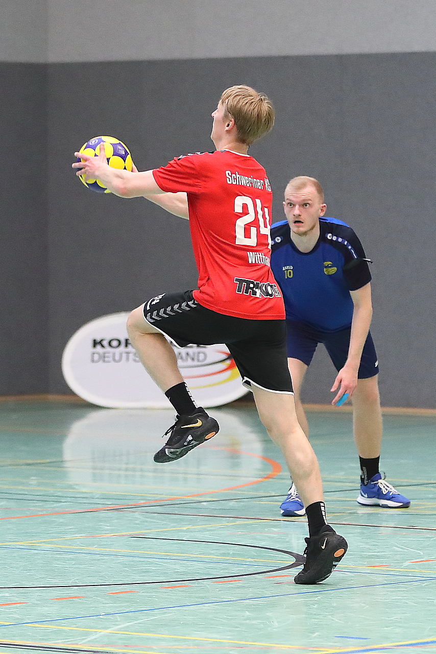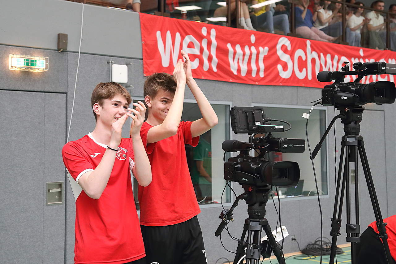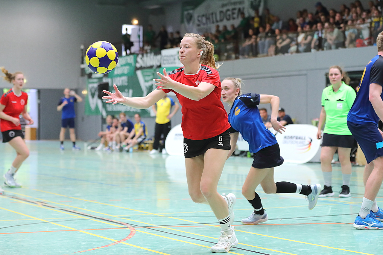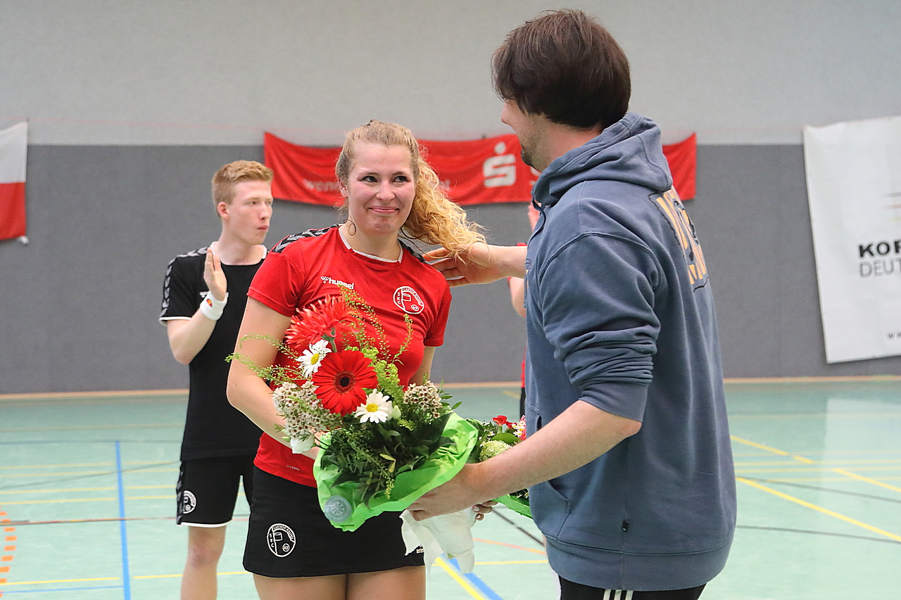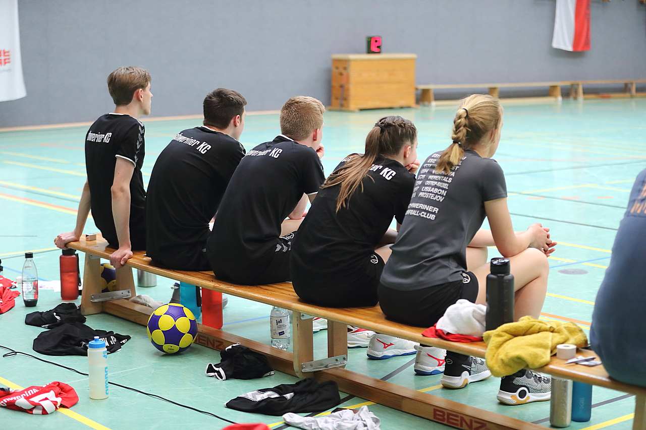 Am 13.05.2023 fanden die Finalspiele der Seniorenklasse statt. Vom Schweriner KC waren die erste und die dritte Mannschaft vertreten. In dieser Galerie werden die Fotos des Regionalliga Finalspiels um Platz 3 Adler 1 gegen SKC 1 gezeigt. Das Spiel endete mit einem Schweriner Sieg von 17:18 (Fotos Gertrude de Vries, korfballfoto.de)