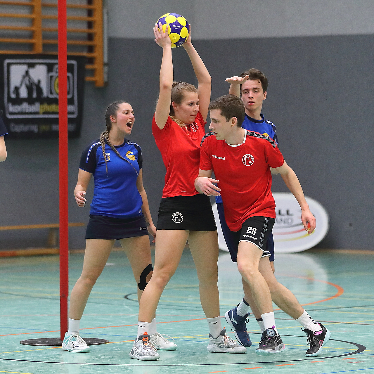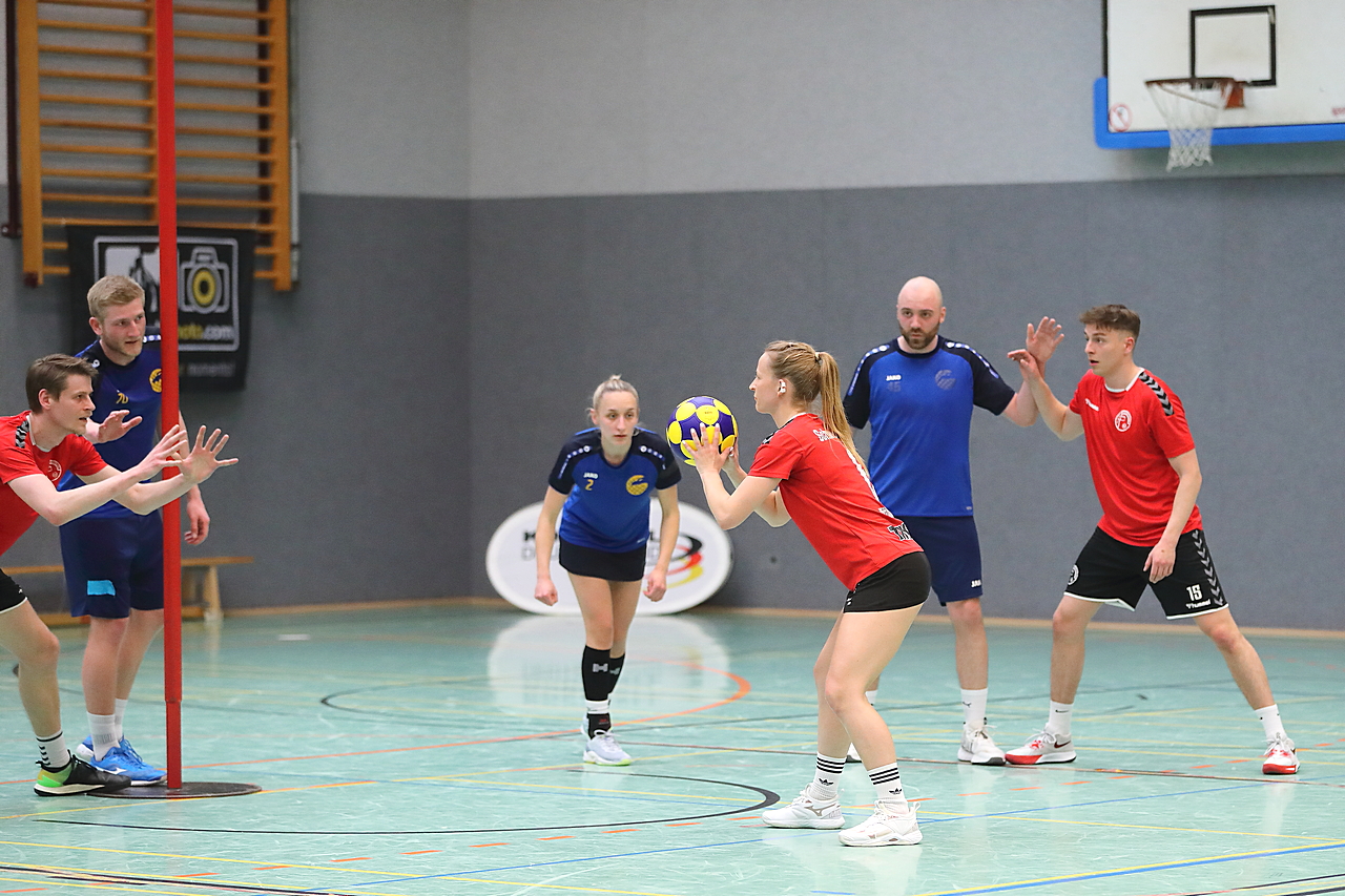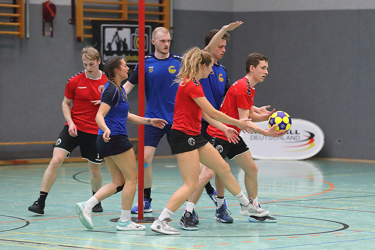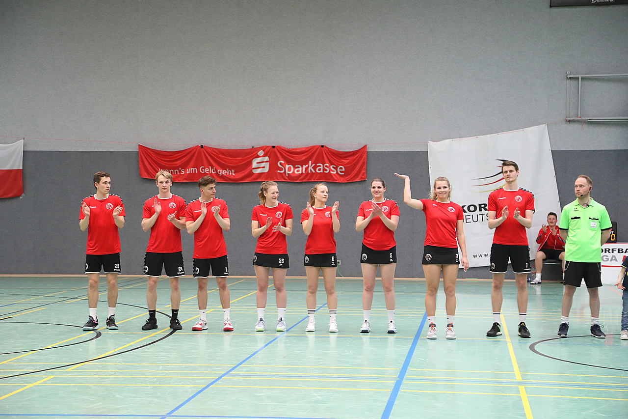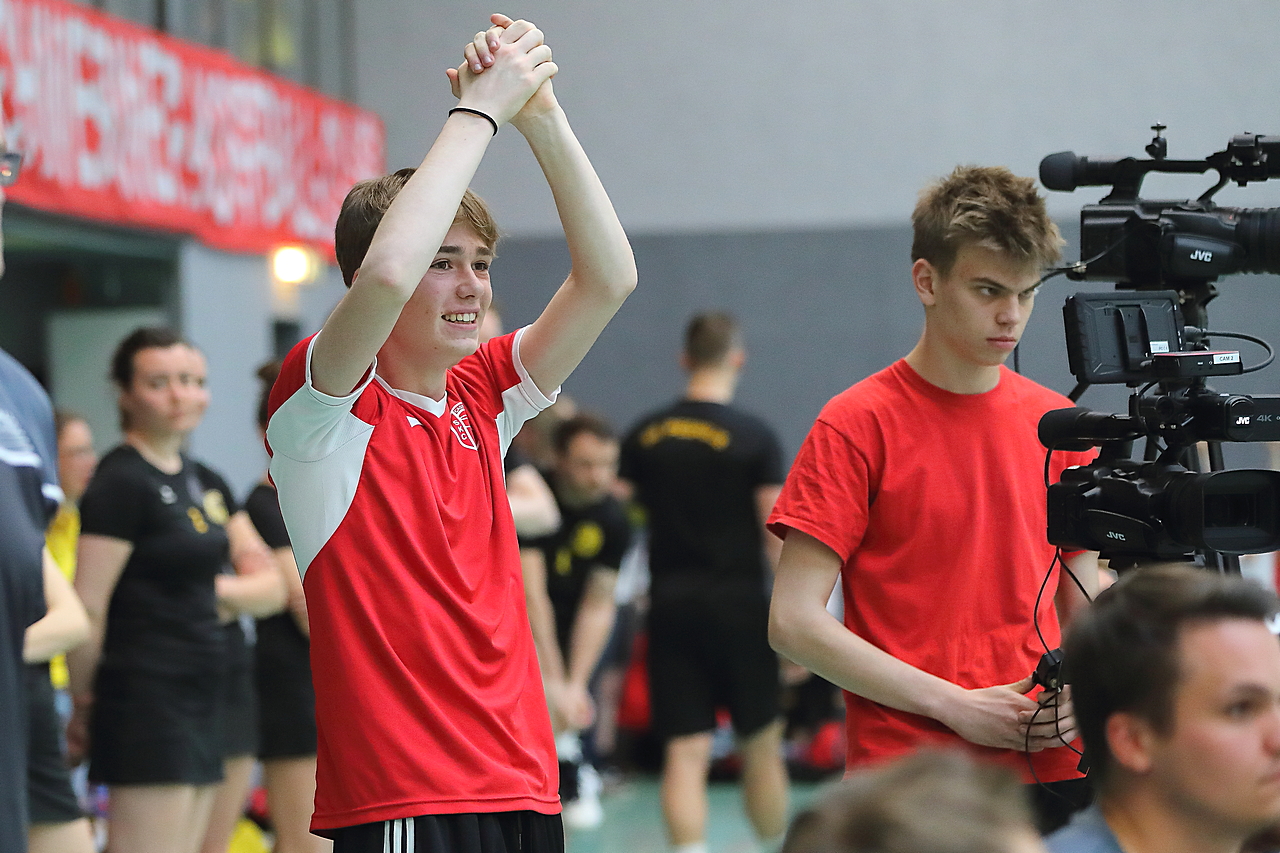 Am 13.05.2023 fanden die Finalspiele der Seniorenklasse statt. Vom Schweriner KC waren die erste und die dritte Mannschaft vertreten. In dieser Galerie werden die Fotos des Regionalliga Finalspiels um Platz 3 Adler 1 gegen SKC 1 gezeigt. Das Spiel endete mit einem Schweriner Sieg von 17:18 (Fotos Gertrude de Vries, korfballfoto.de)
