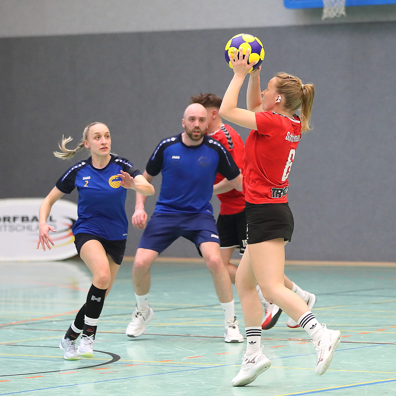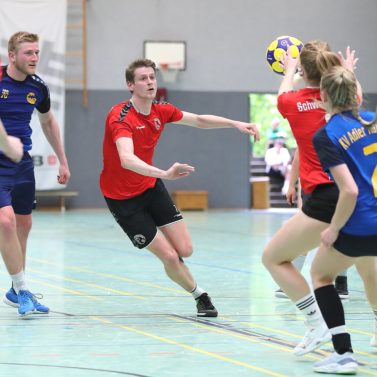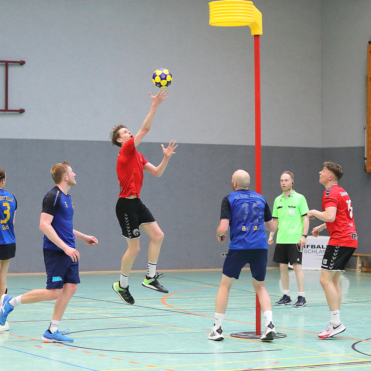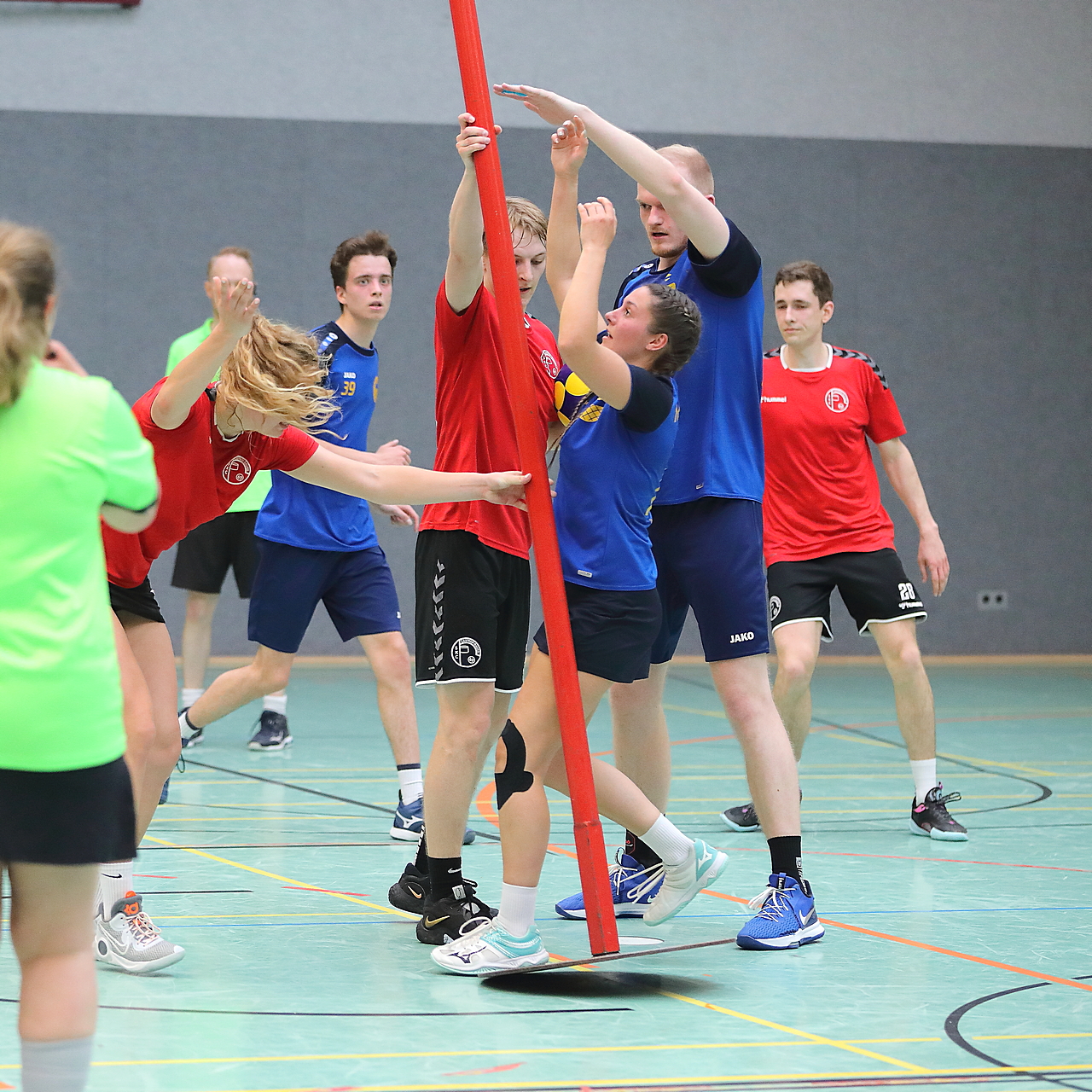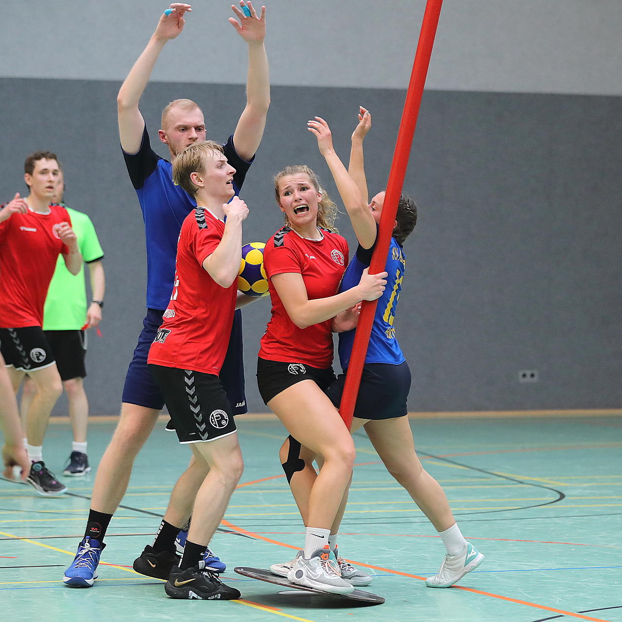 Am 13.05.2023 fanden die Finalspiele der Seniorenklasse statt. Vom Schweriner KC waren die erste und die dritte Mannschaft vertreten. In dieser Galerie werden die Fotos des Regionalliga Finalspiels um Platz 3 Adler 1 gegen SKC 1 gezeigt. Das Spiel endete mit einem Schweriner Sieg von 17:18 (Fotos Gertrude de Vries, korfballfoto.de)