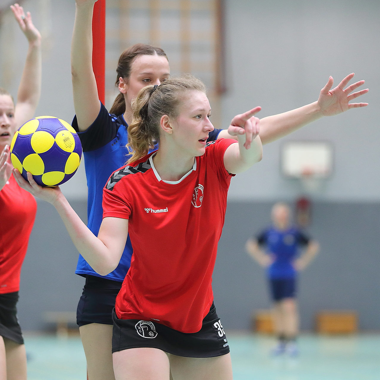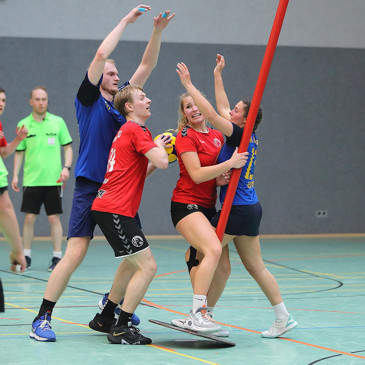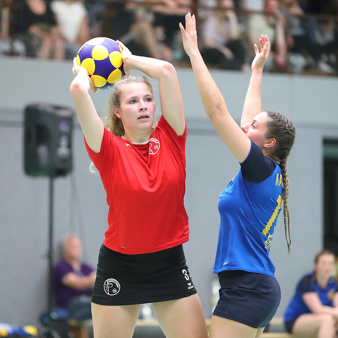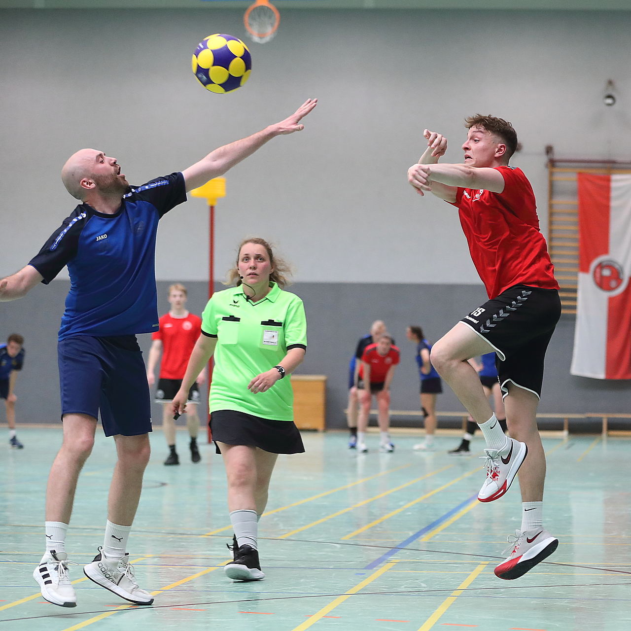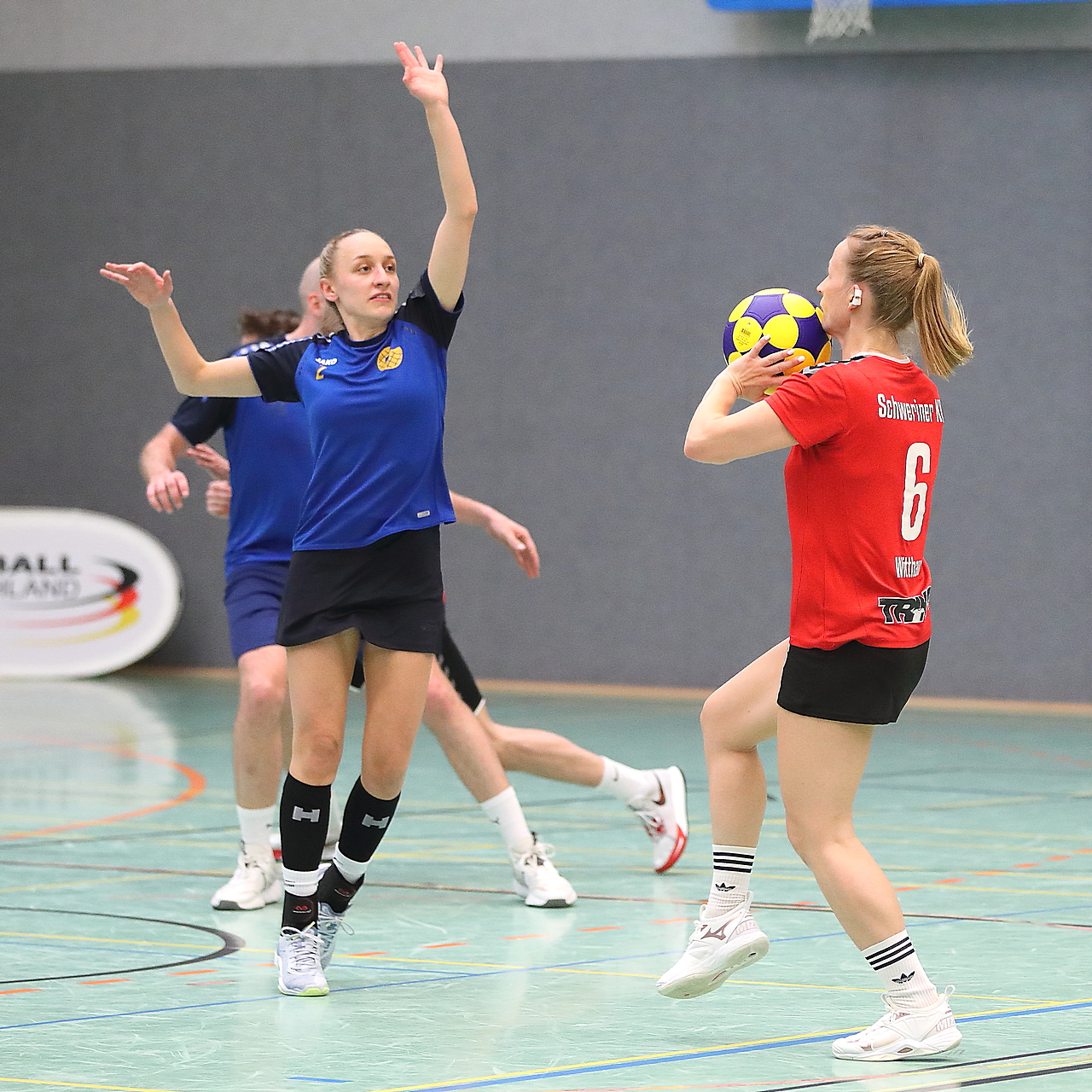 Am 13.05.2023 fanden die Finalspiele der Seniorenklasse statt. Vom Schweriner KC waren die erste und die dritte Mannschaft vertreten. In dieser Galerie werden die Fotos des Regionalliga Finalspiels um Platz 3 Adler 1 gegen SKC 1 gezeigt. Das Spiel endete mit einem Schweriner Sieg von 17:18 (Fotos Gertrude de Vries, korfballfoto.de)